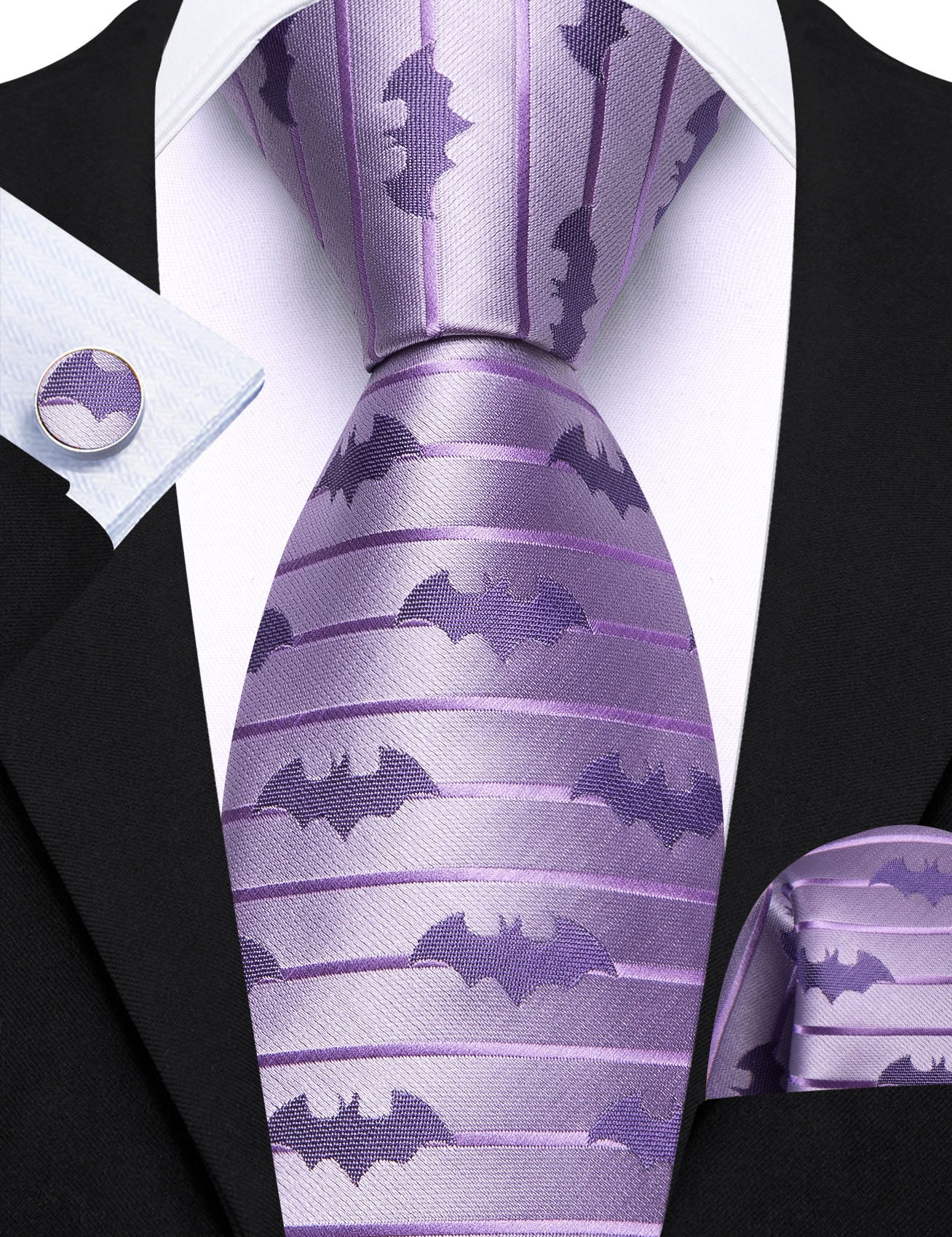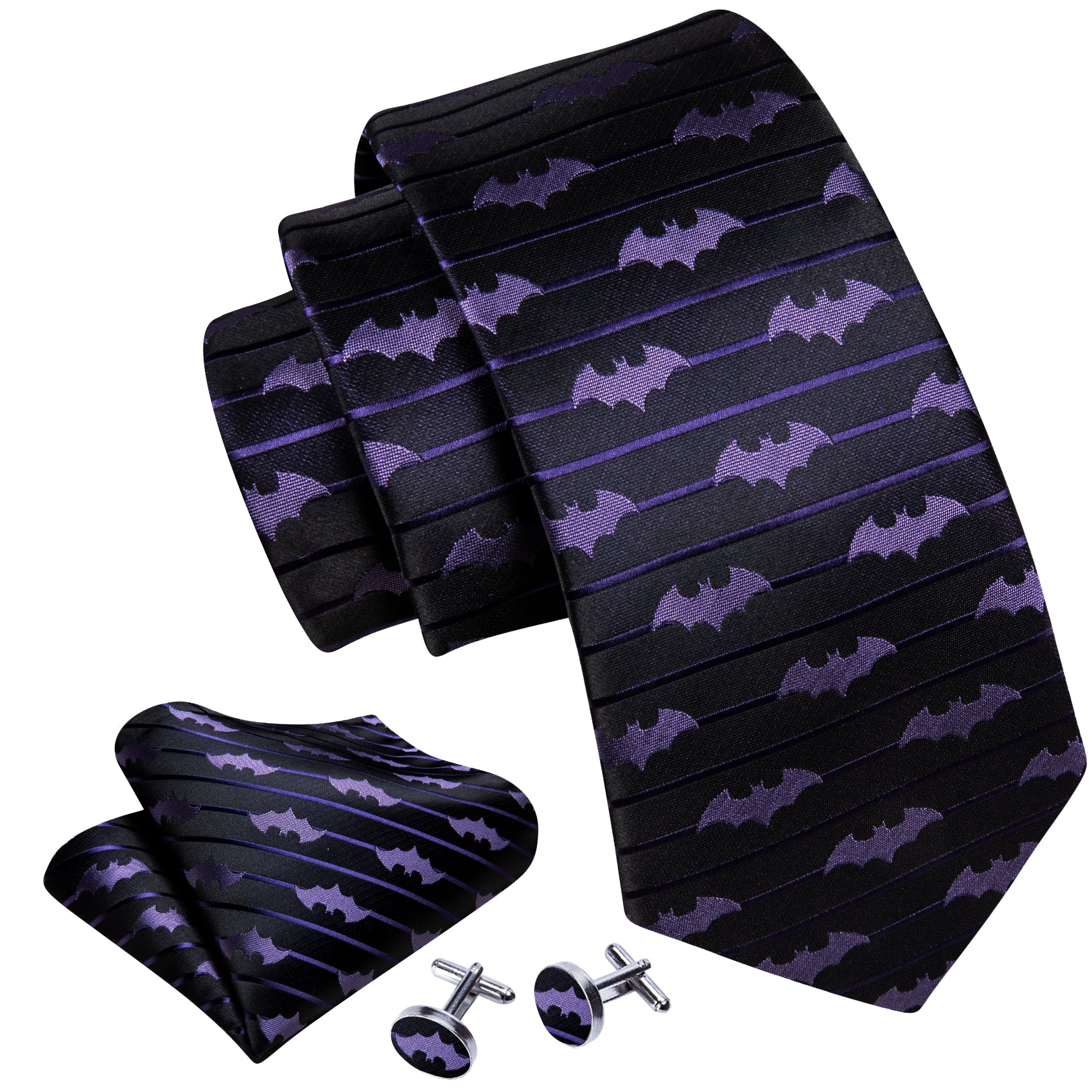 Barry. Wang Purple Bat Necktie Mens Silk Tie Pocket Square Cufflinks Set