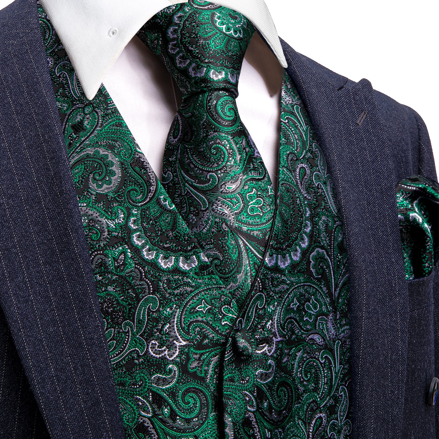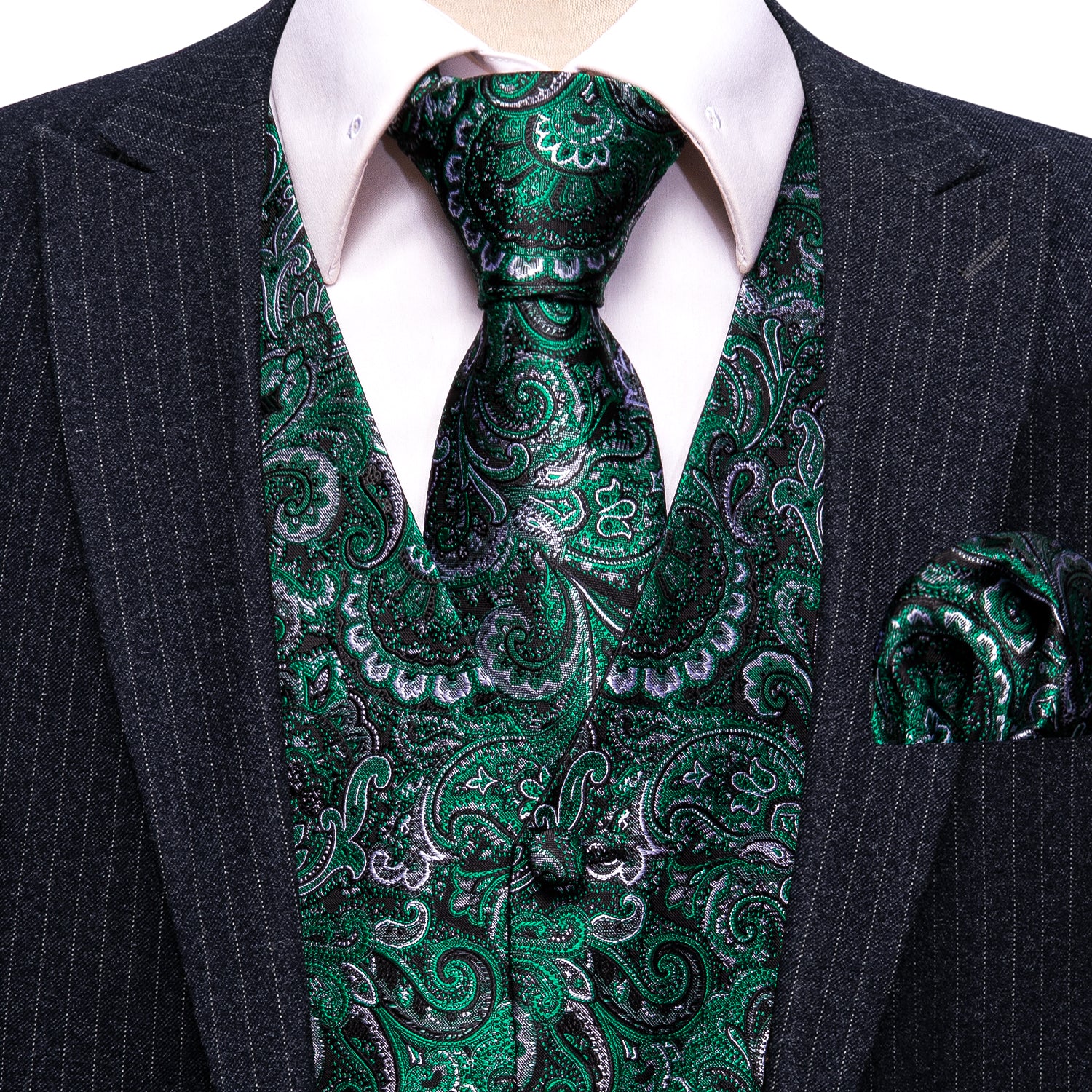Barry. Wang Hunter Green suit Vest Paisley Jacquard Formal Vest Tie Hanky Cufflinks Set