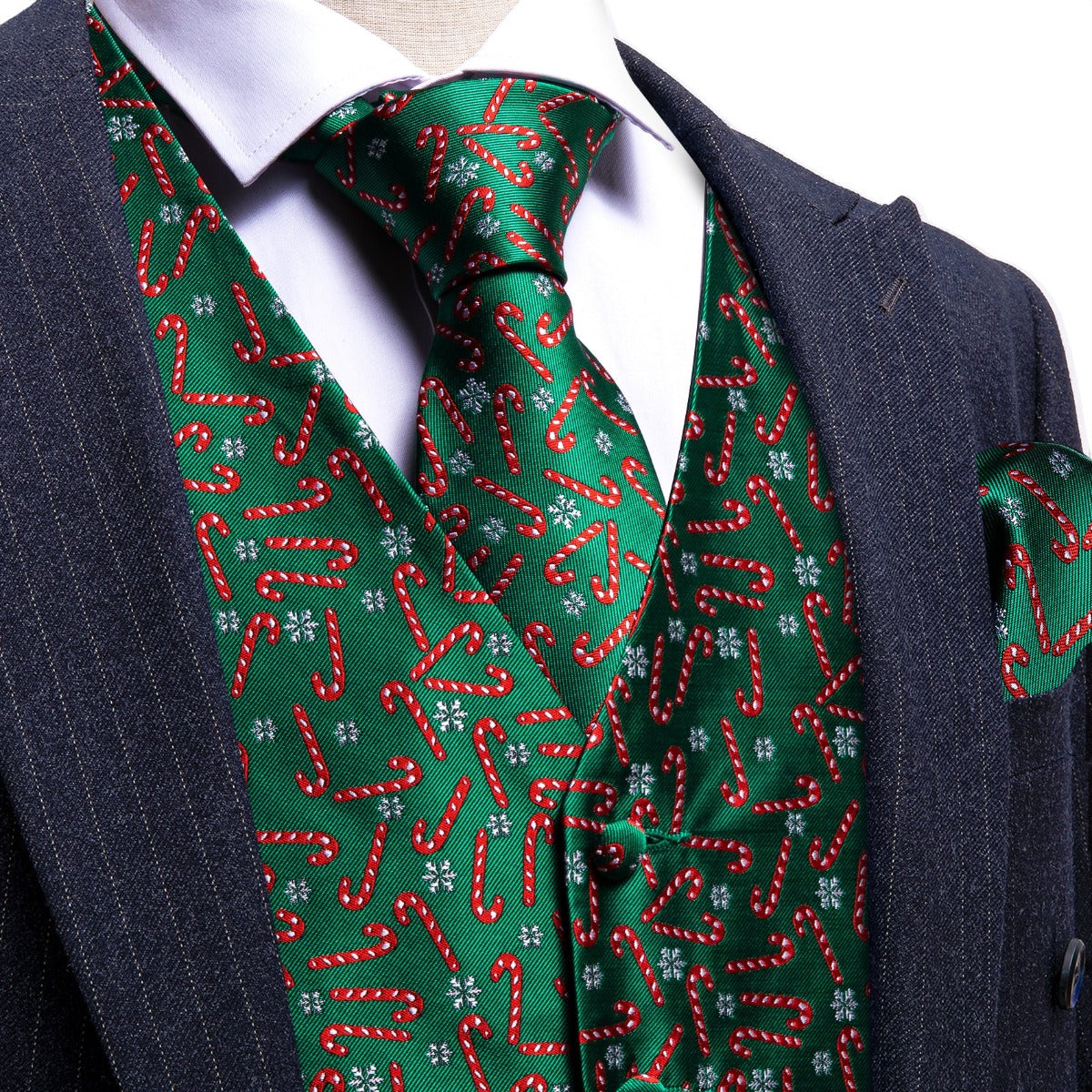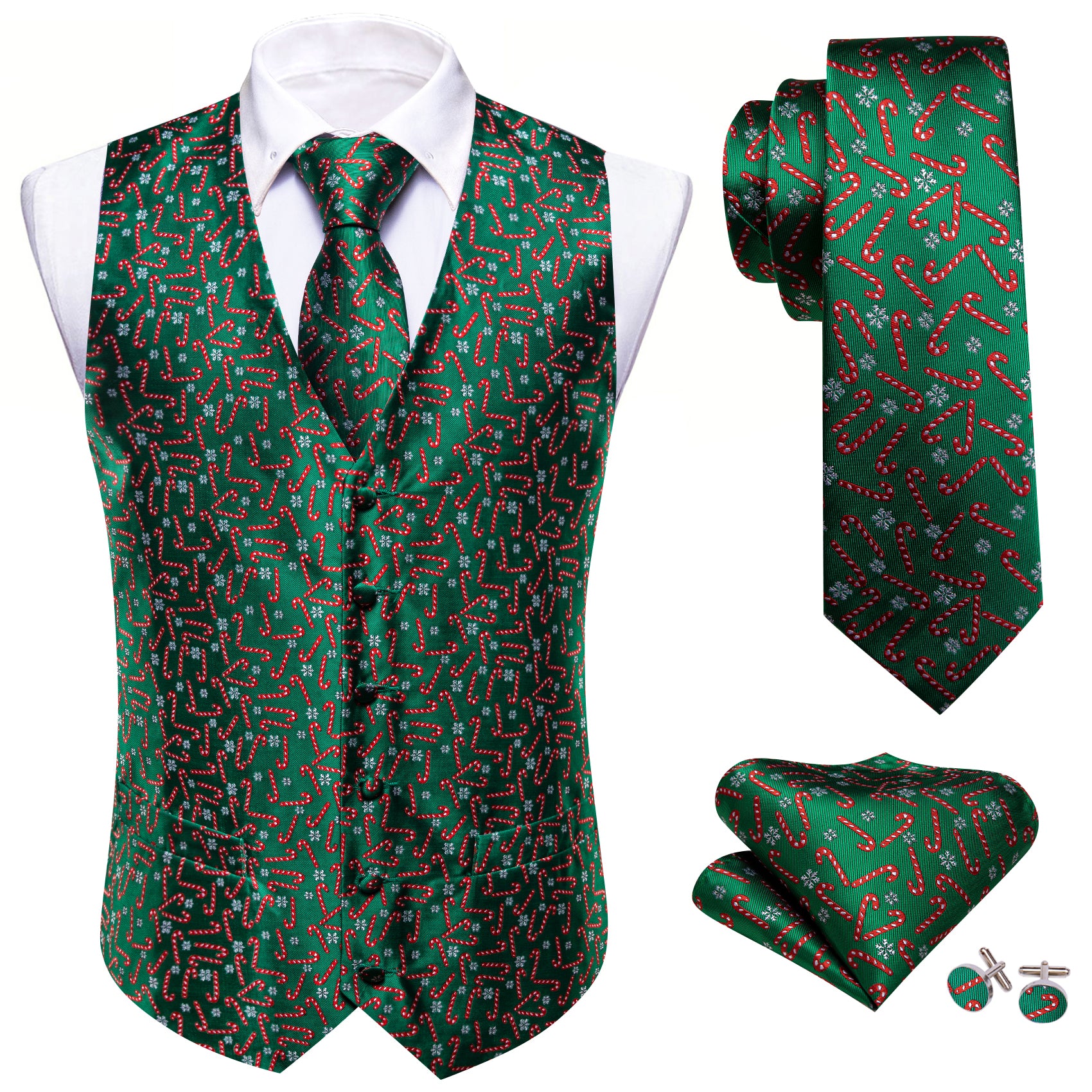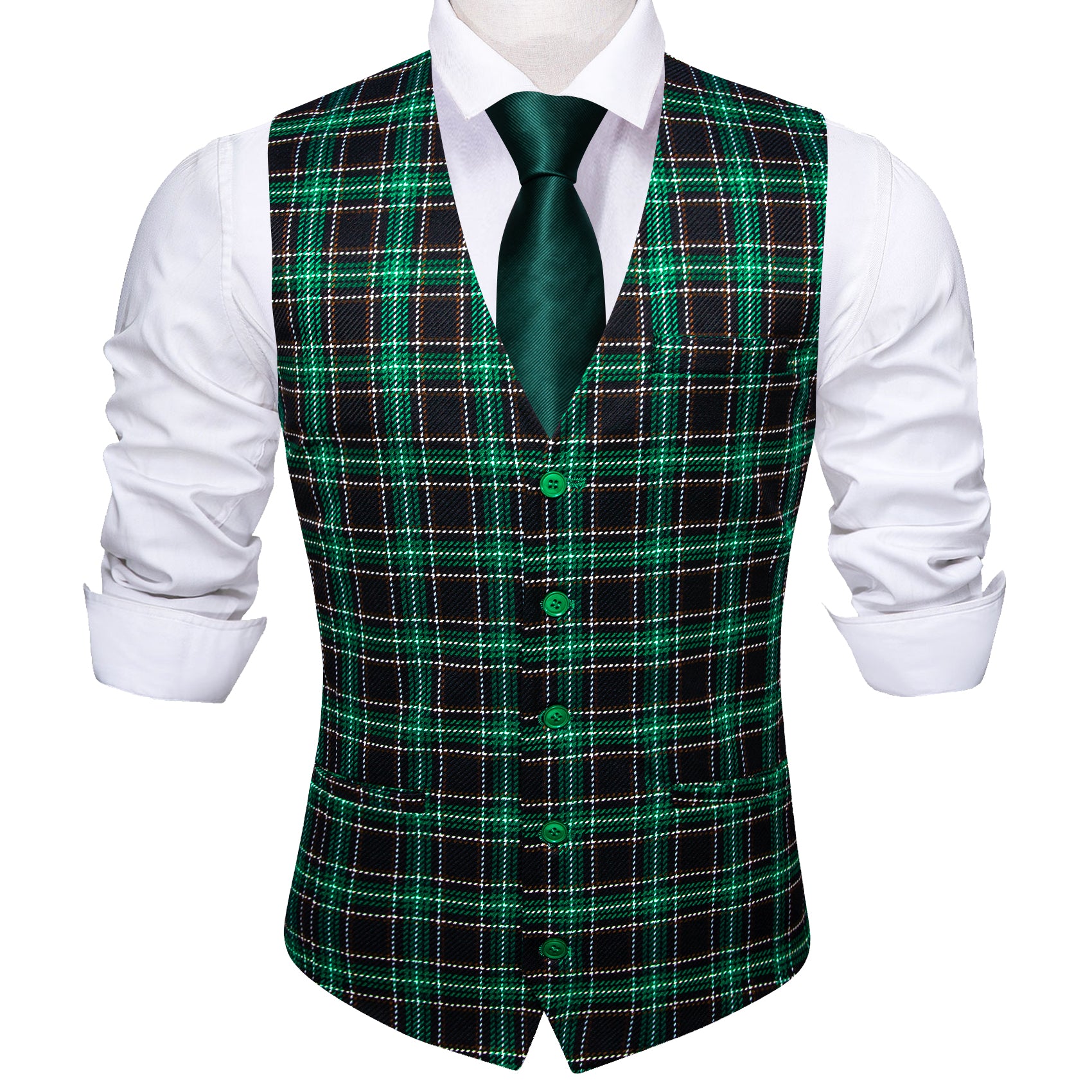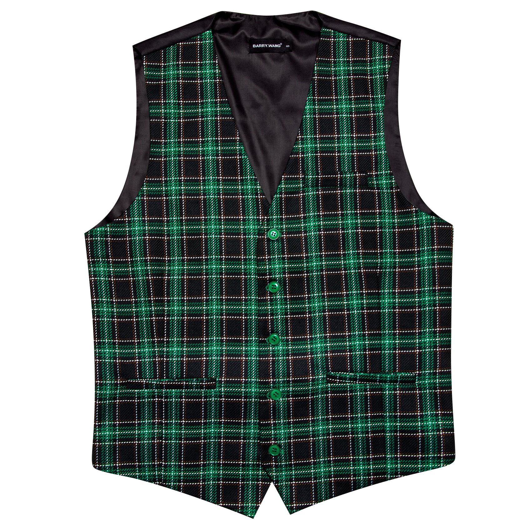 Barry. Wang Emerald Green Suit Vest Plaid Silk Dress Vest Tie Handkerchief Cufflinks Set