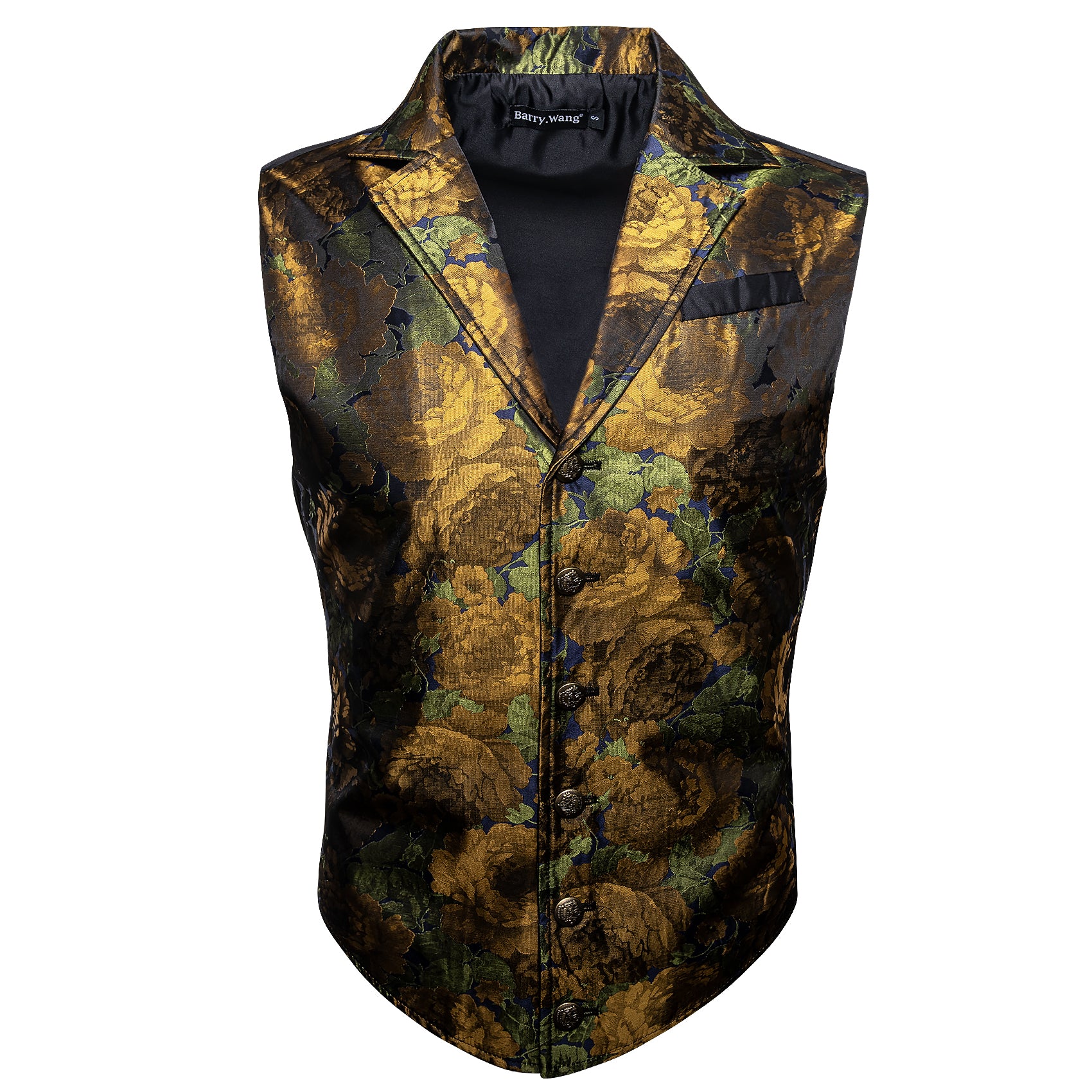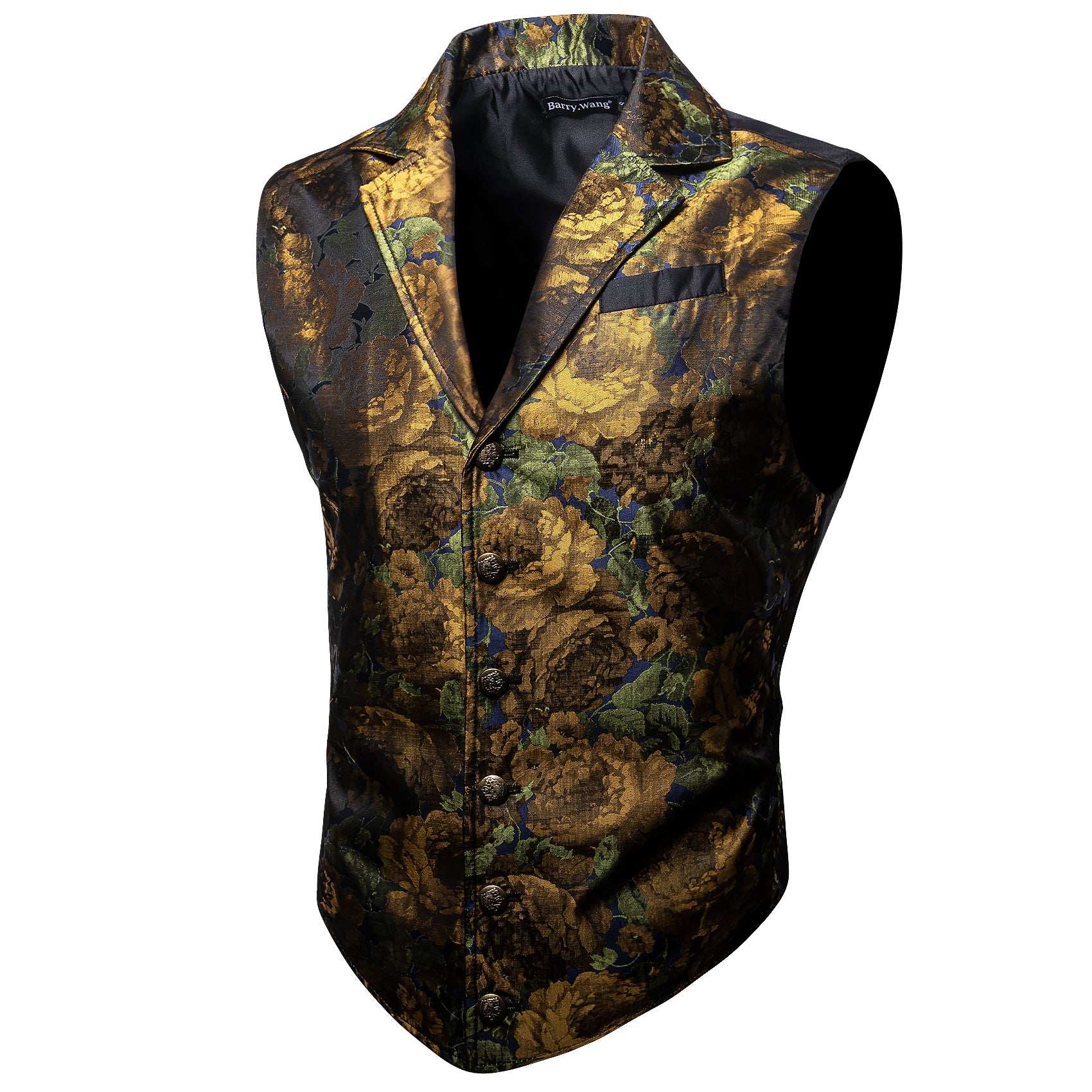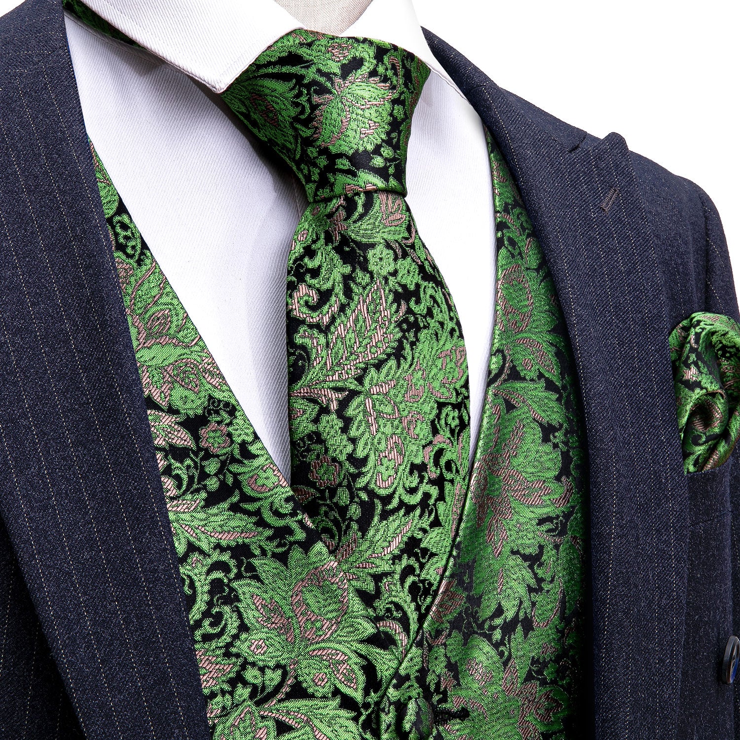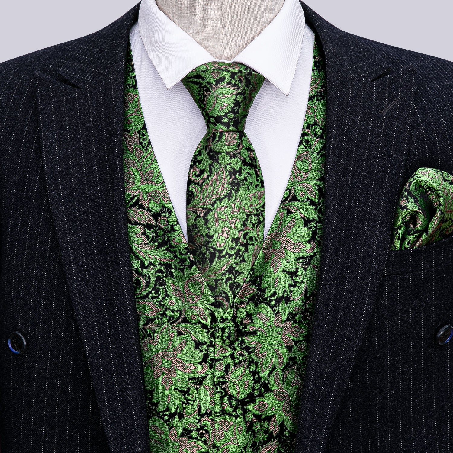 Barry. Wang Hunter Green Floral Suit Waistcoat Black Dress Vest Necktie Pocket Square Set