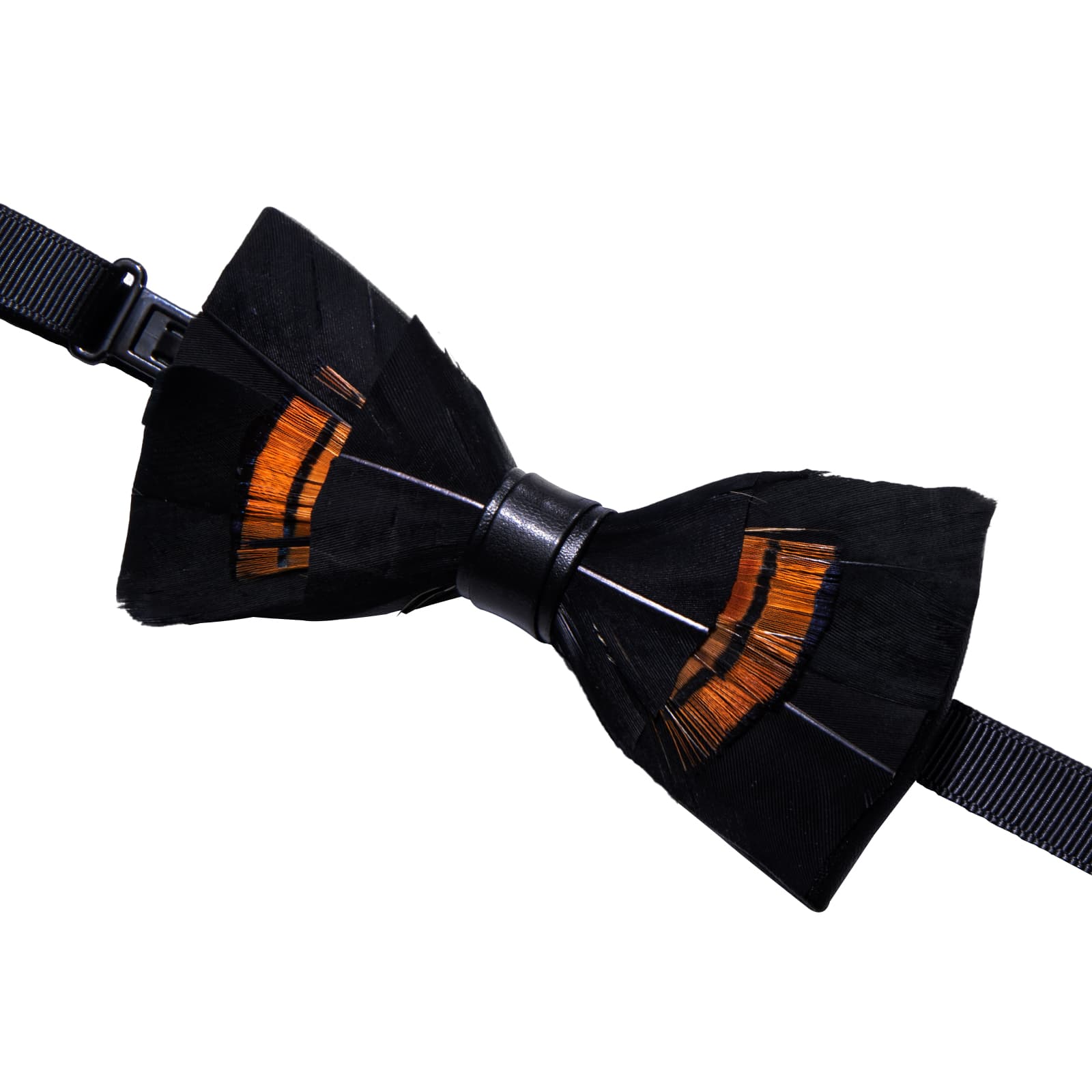Barry. Wang Black Feather Bowtie Novelty Mens Pre-tied Bowtie Brooch Set