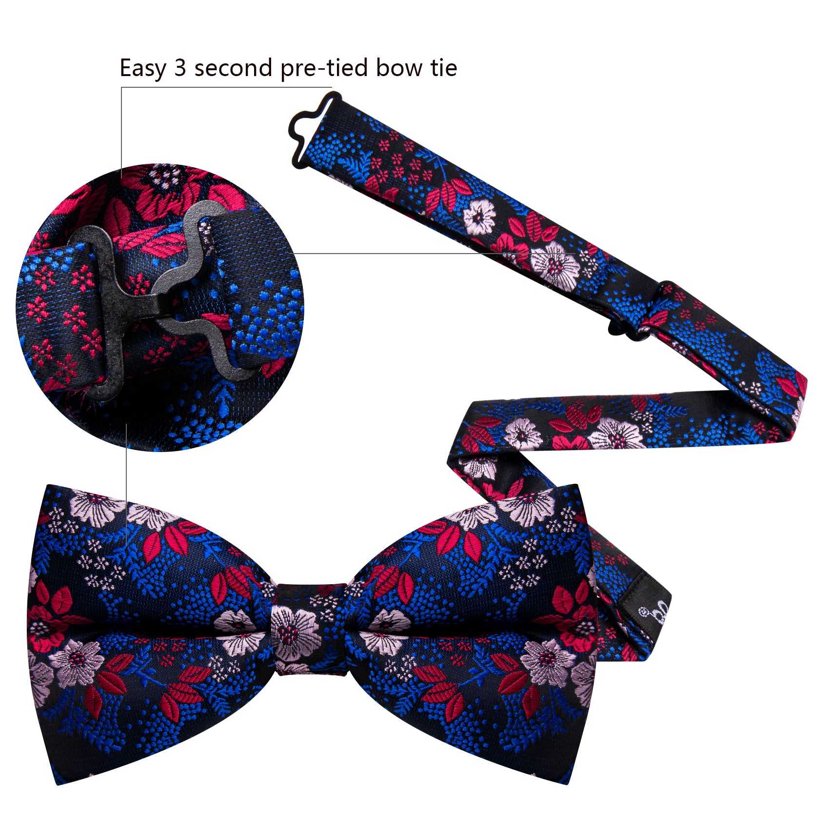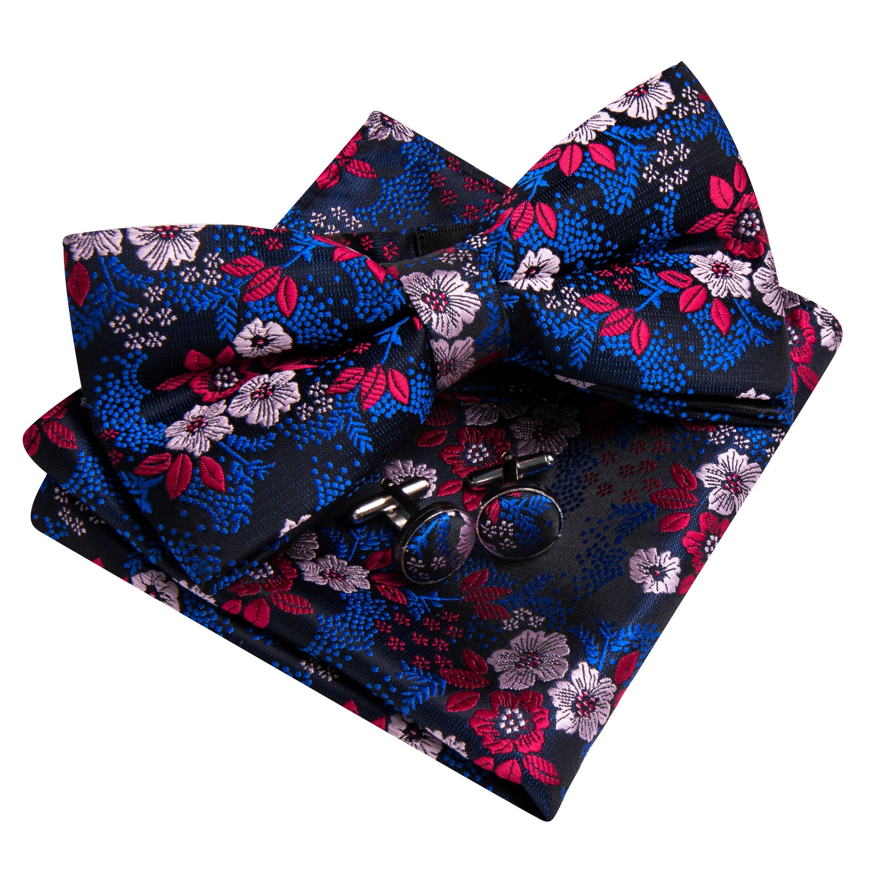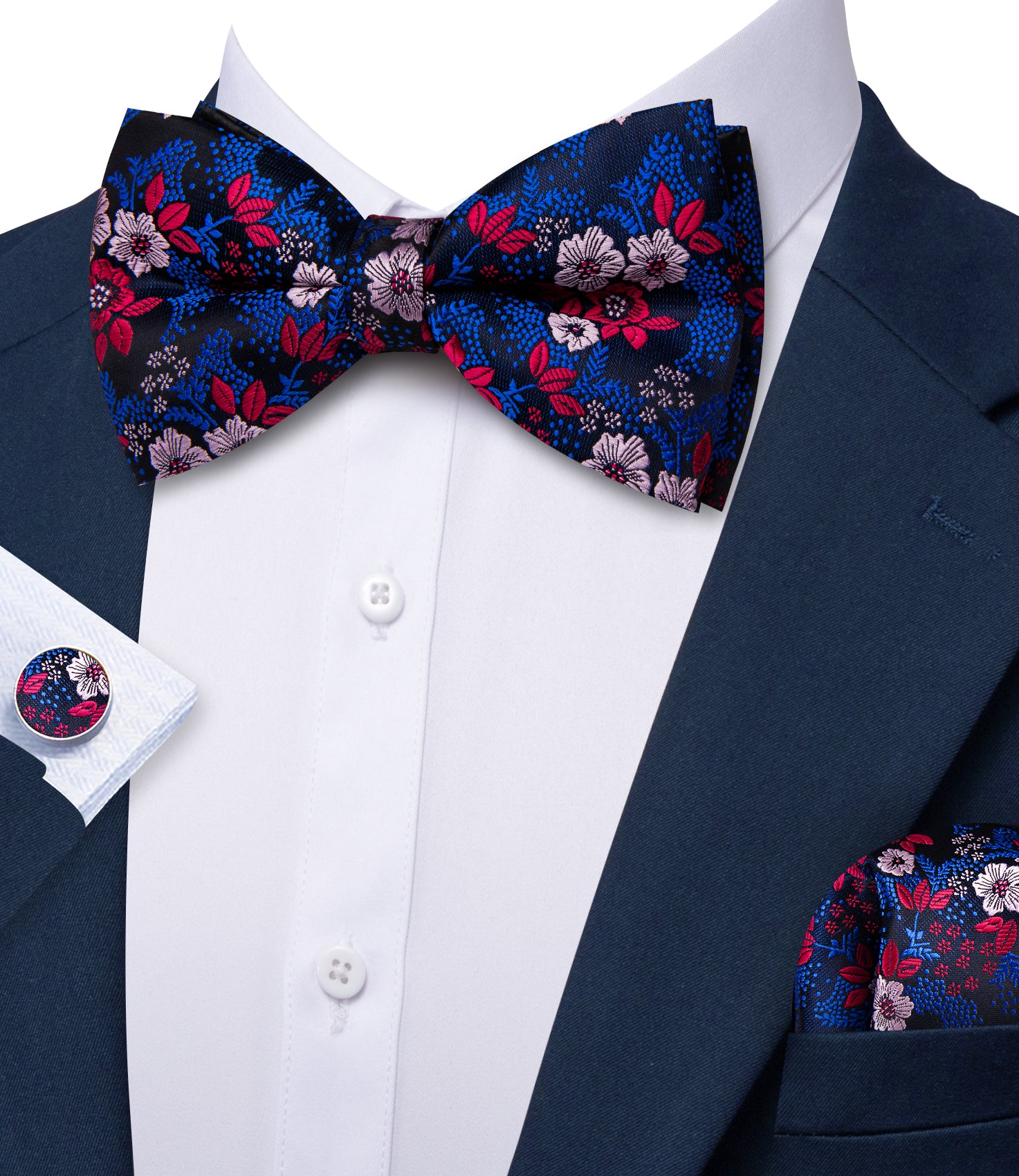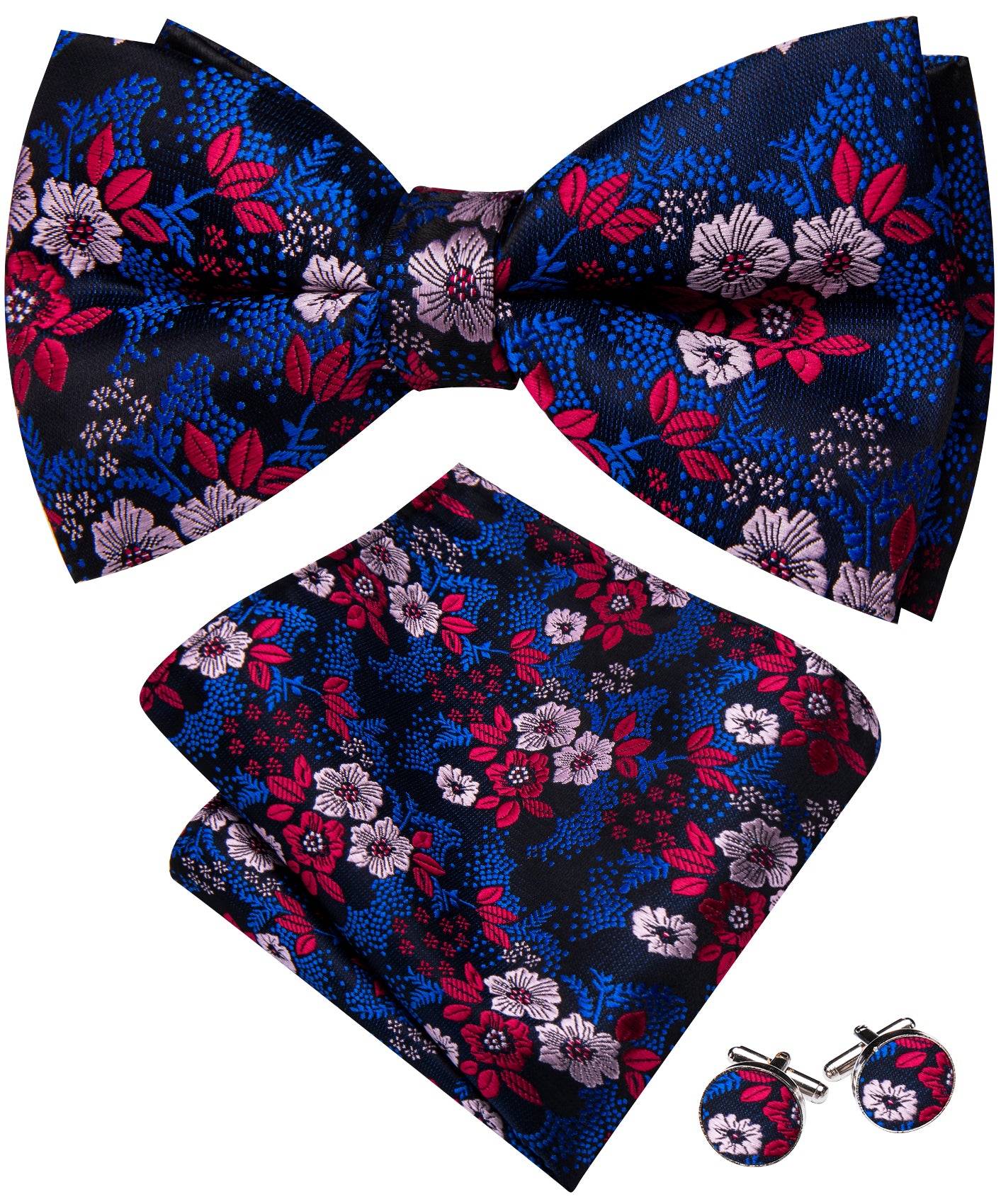 Barry. Wang Classic Blue Bowtie Floral Jacquard Pre-tied Bow Tie Hanky Cufflinks Set for Party