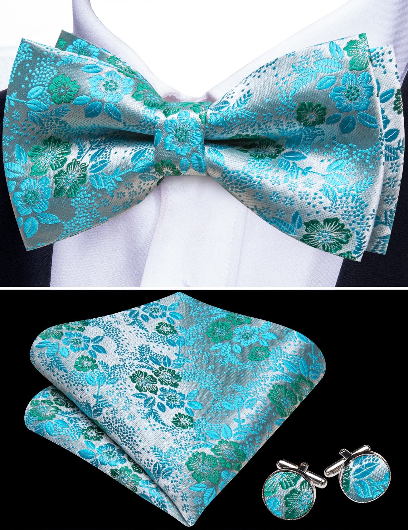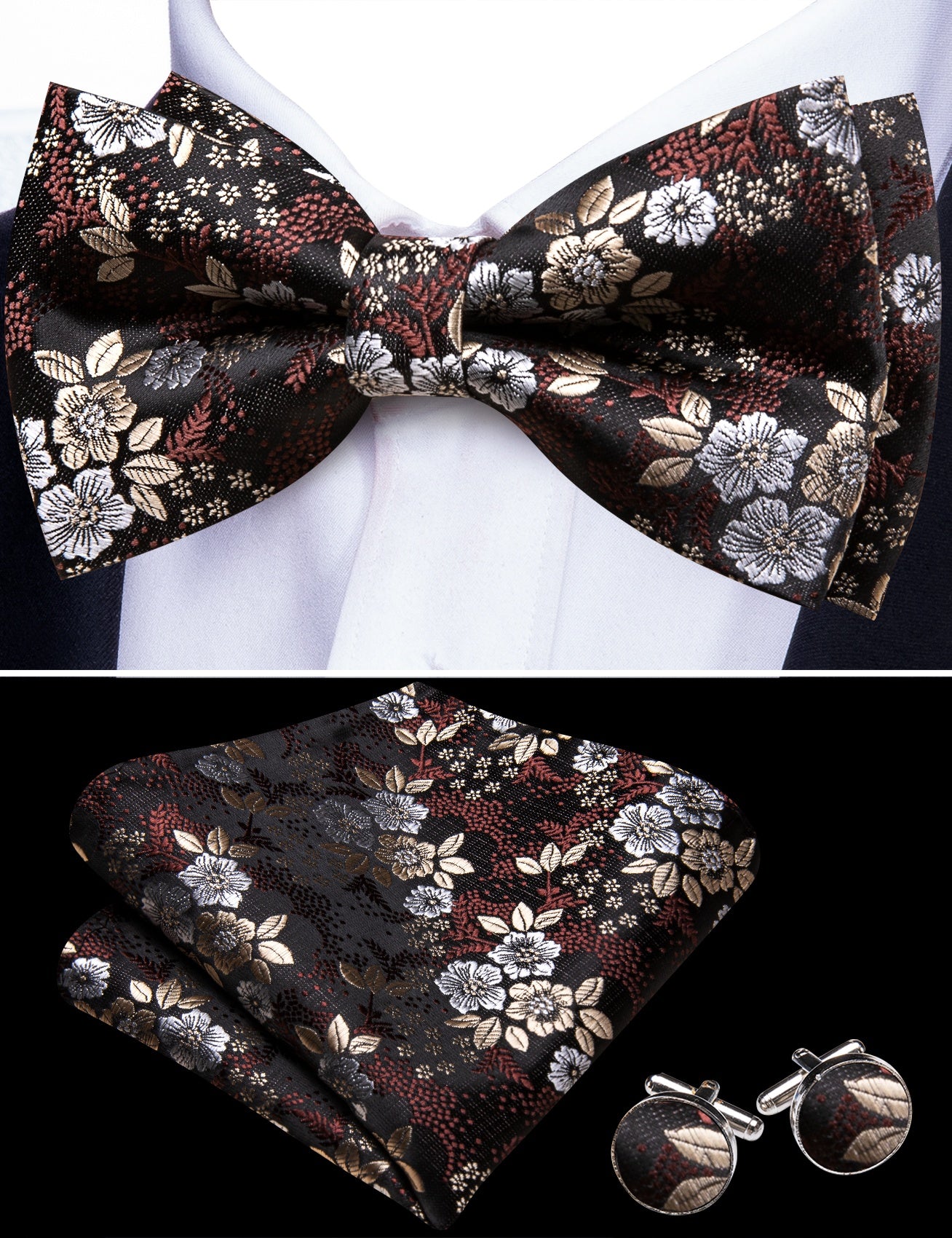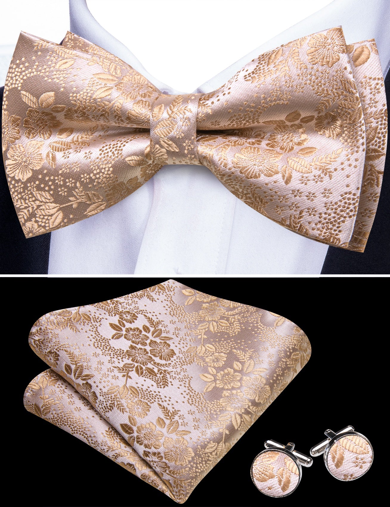 - What You Get: Same Design Pre-tied Bow tie, Pocket Square, Cufflinks
