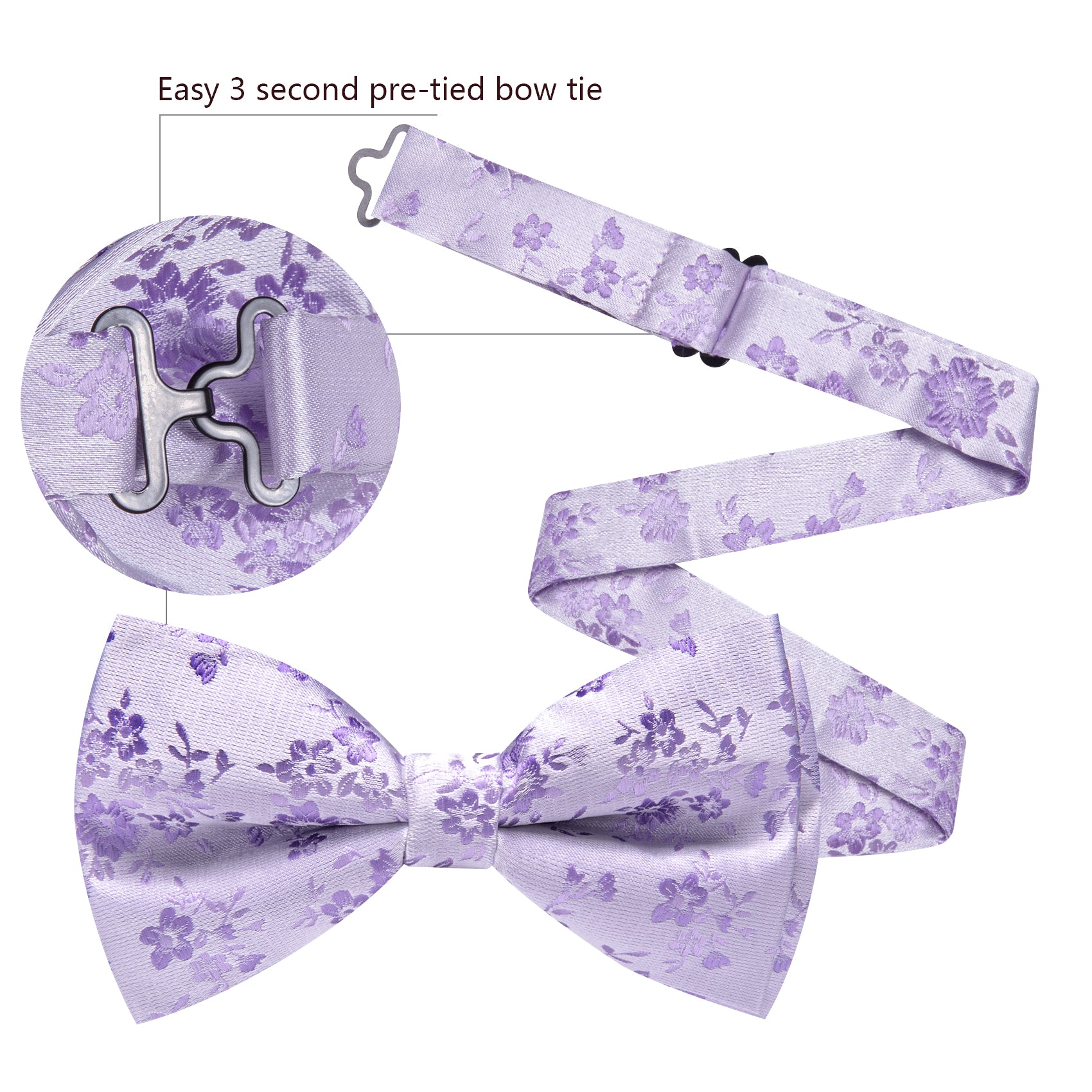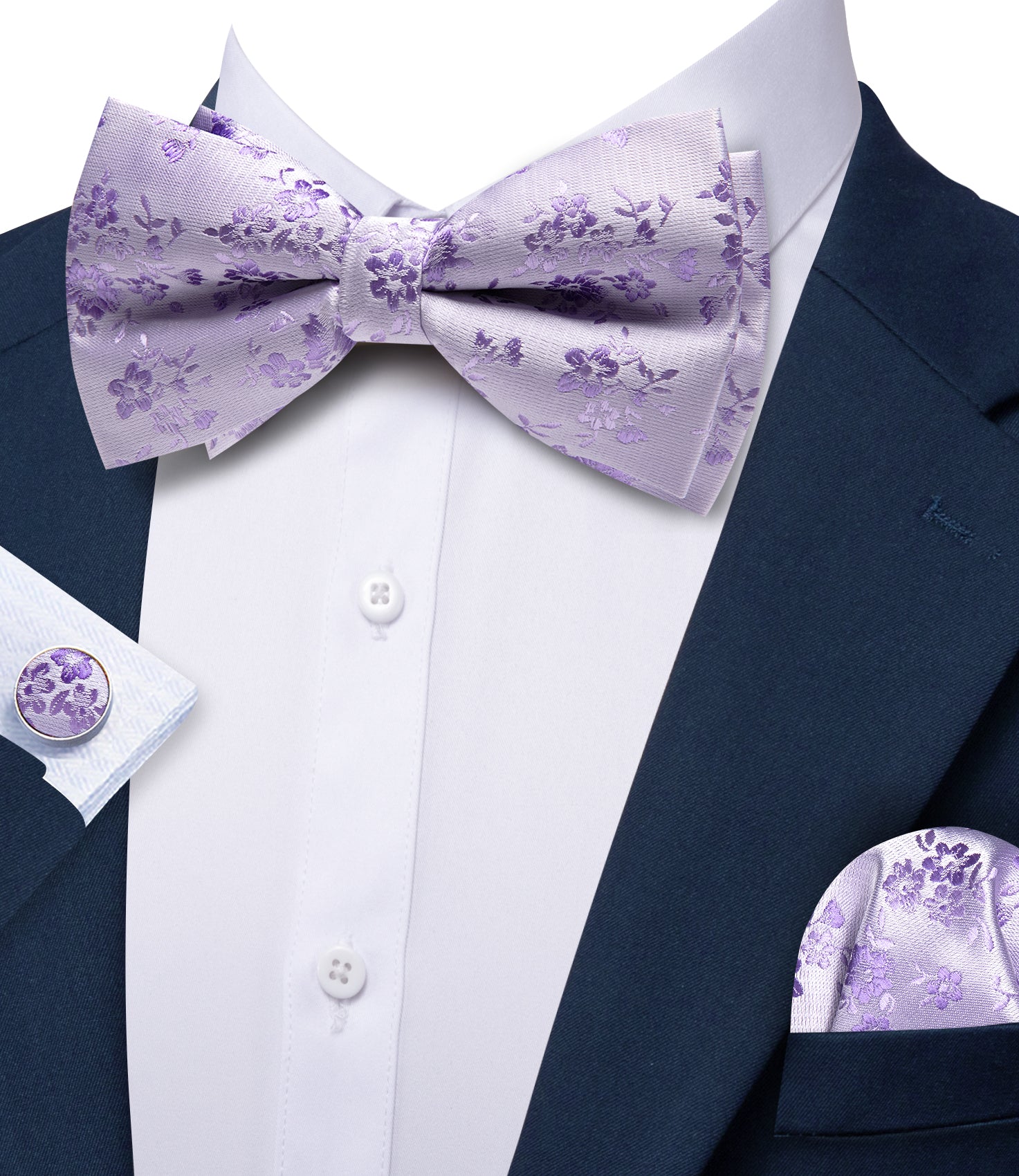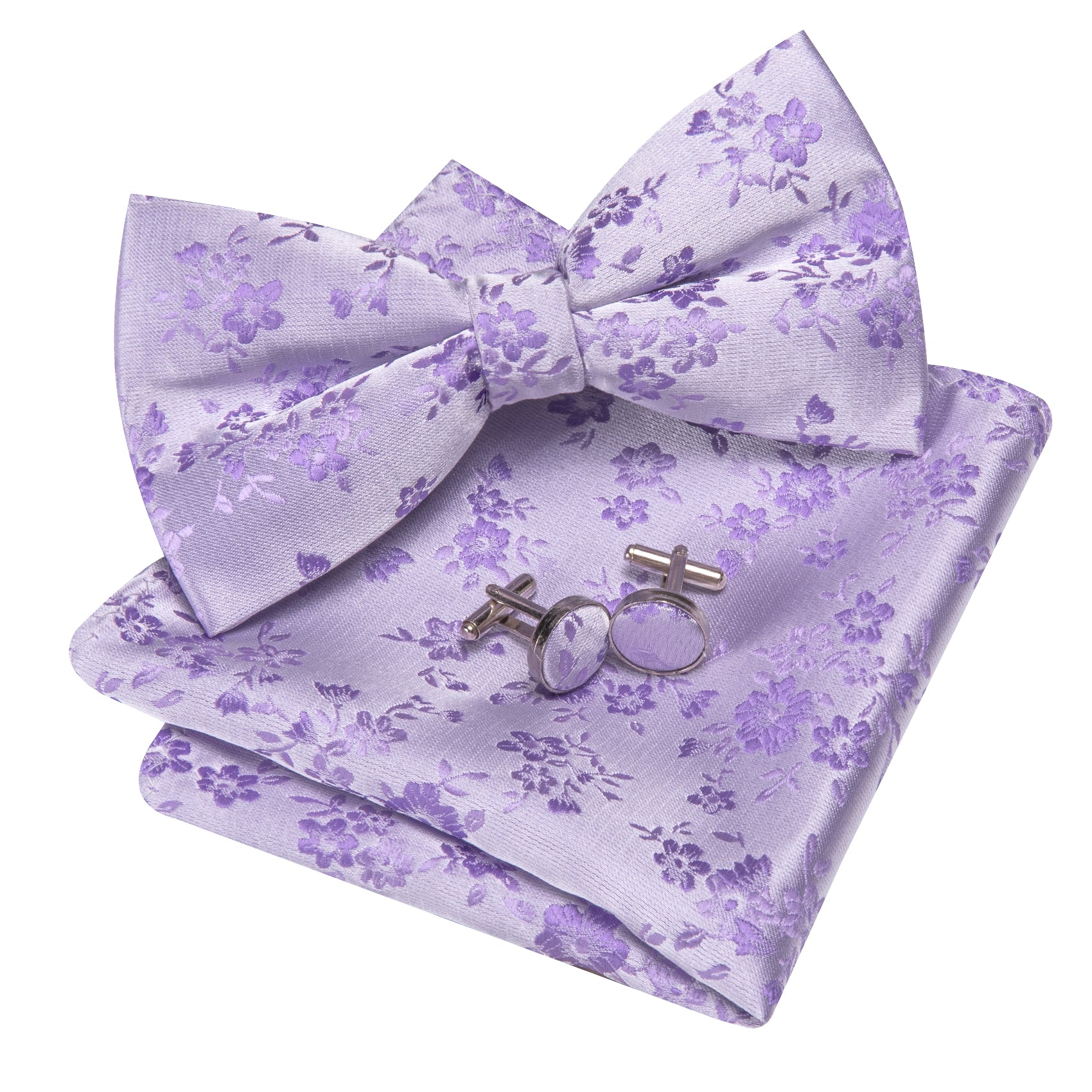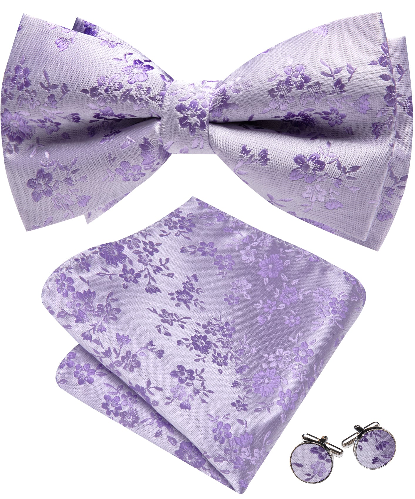 Barry. Wang Lavender Bowtie Floral Pre-tied Silk Men's Tuxedo Bow Tie Hanky Cufflinks Set