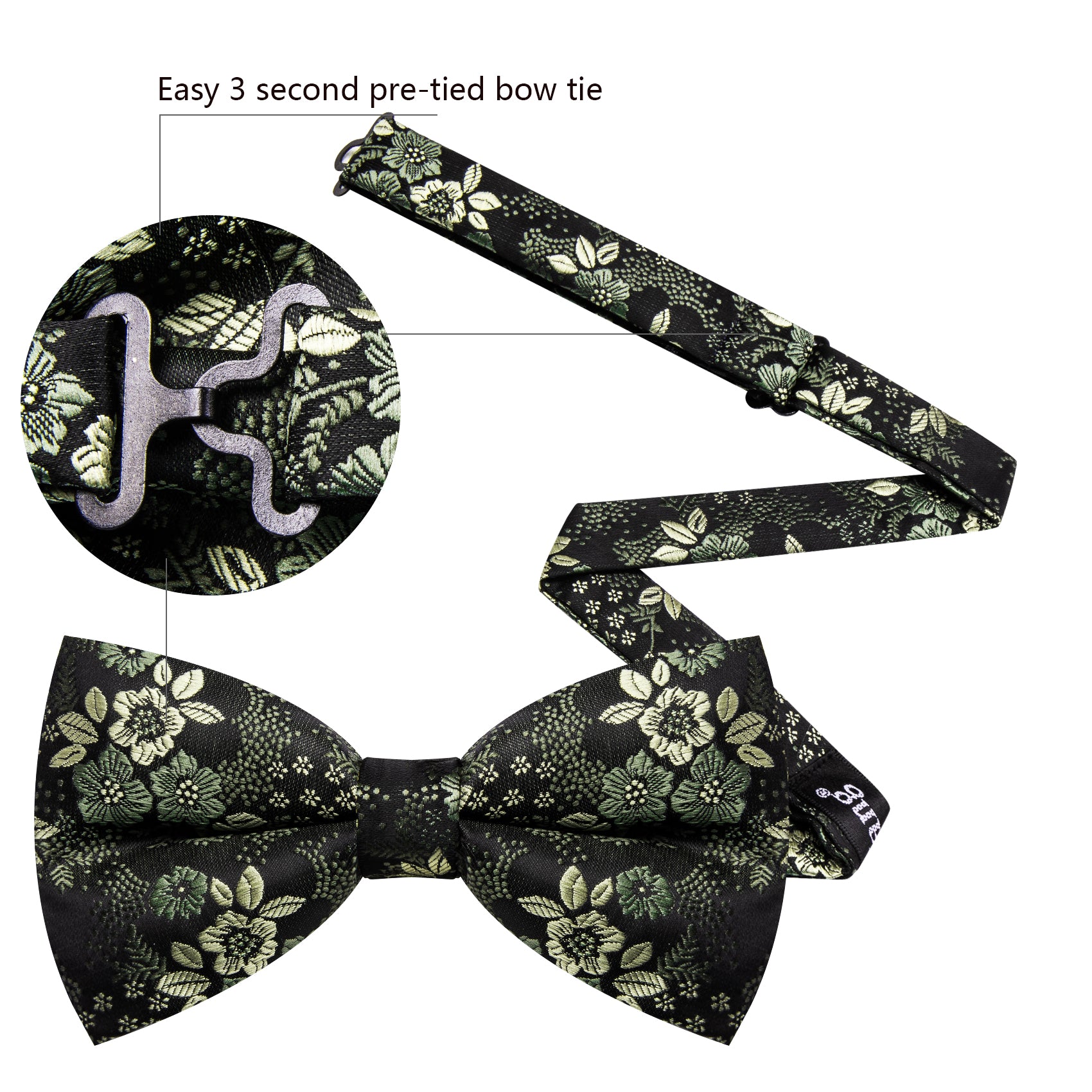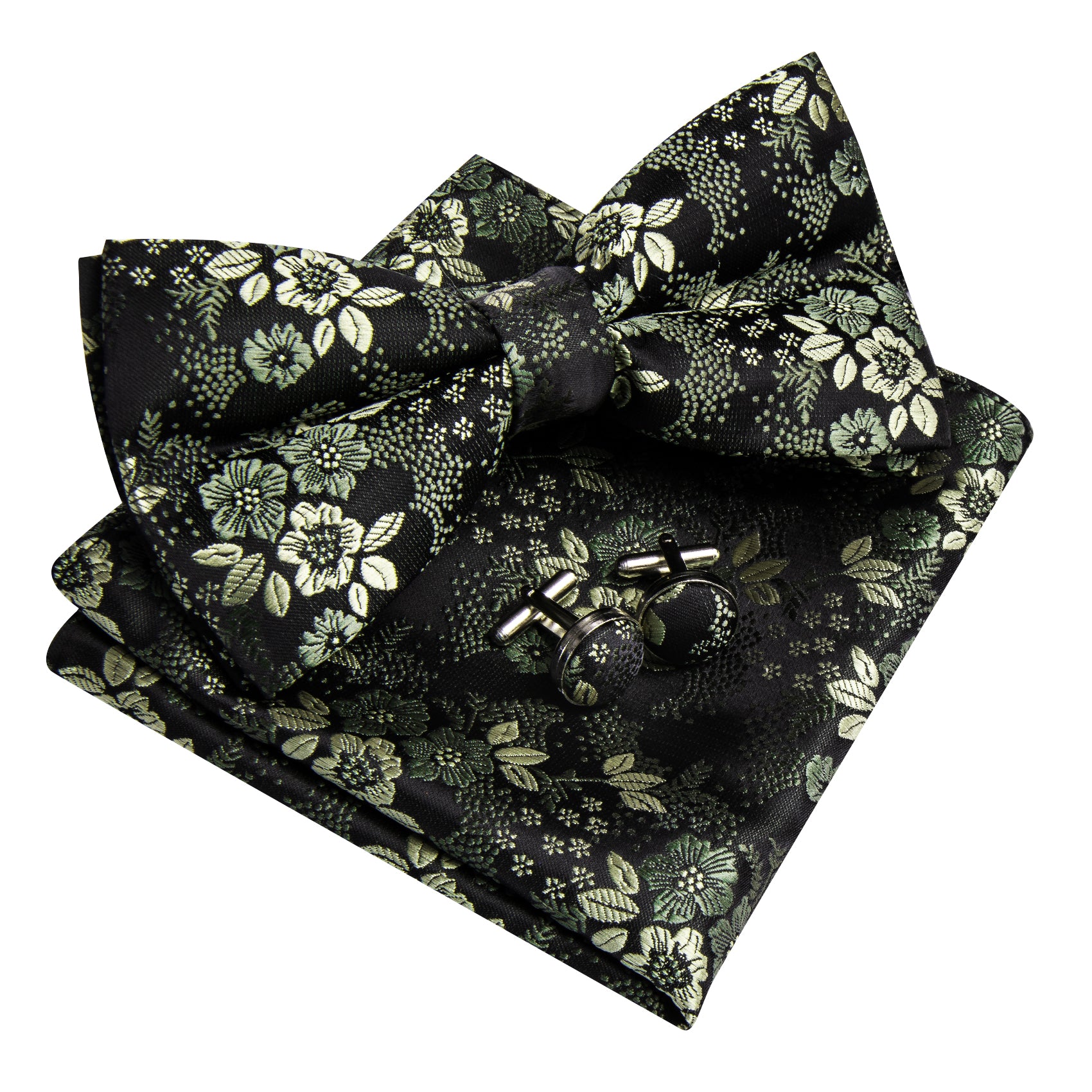 Barry. Wang Olive Floral Bow Tie for Men Adjustable Jacquard Silk Bow Tie Hanky Cufflinks Set for Tuxedo