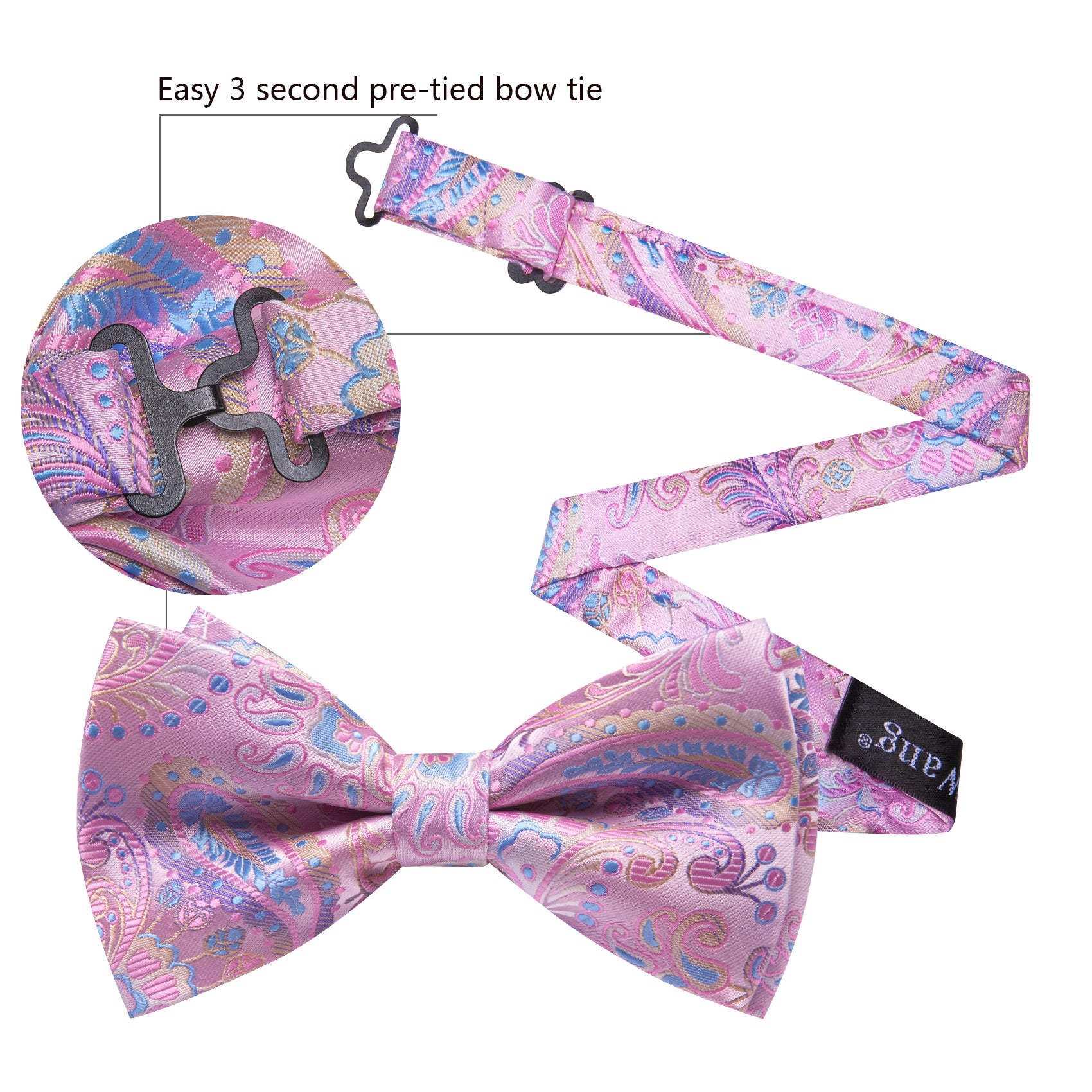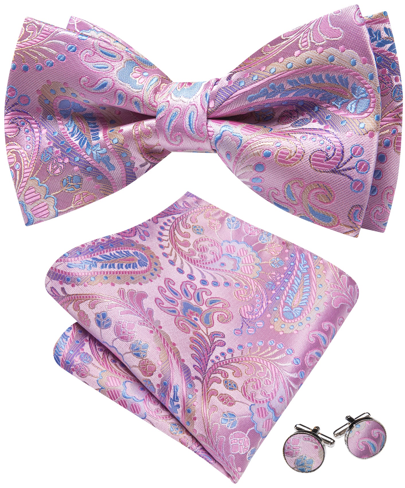 Barry. Wang Rose Pink Bow Tie for Men Paisley Pre-tied Silk Wedding Bowtie Hanky Cufflinks Set