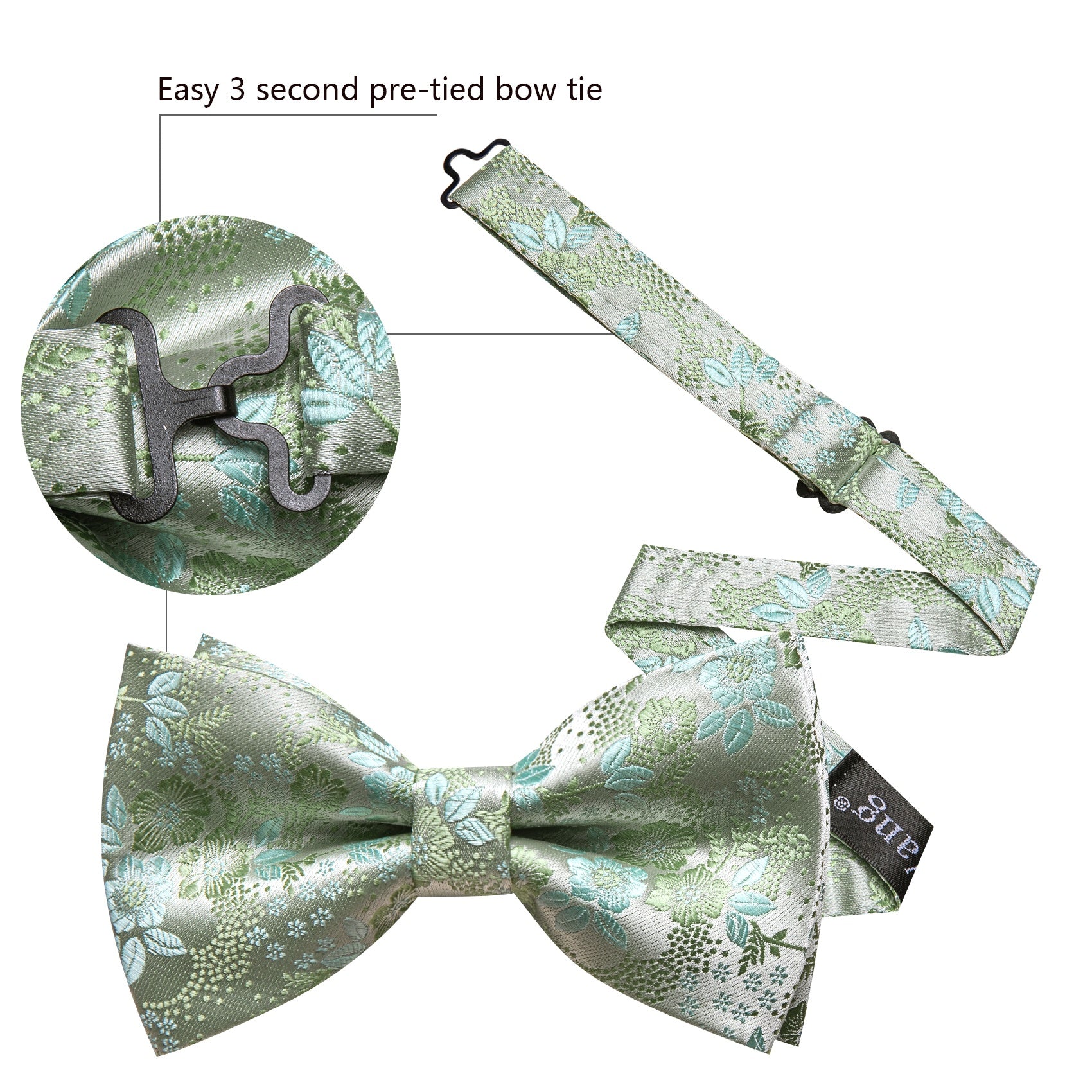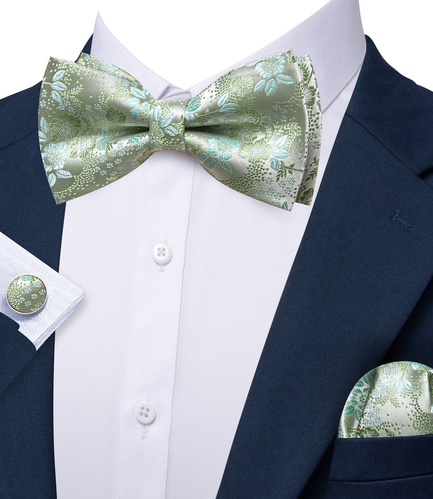 Barry. Wang Sage Green Bowtie Men's Pre-tied Floral Silk Wedding Bowtie Hanky Cufflinks Set
