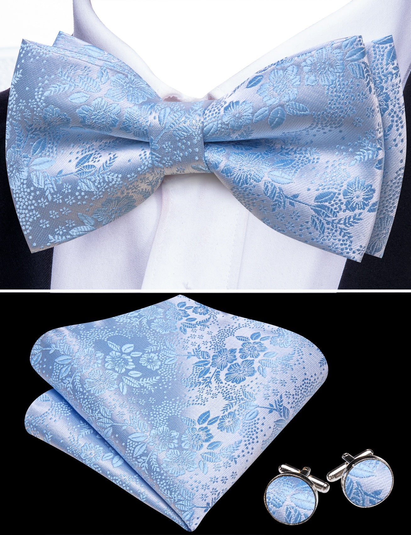 • What You Get: Same Design Pre-tied Bow tie, Pocket Square