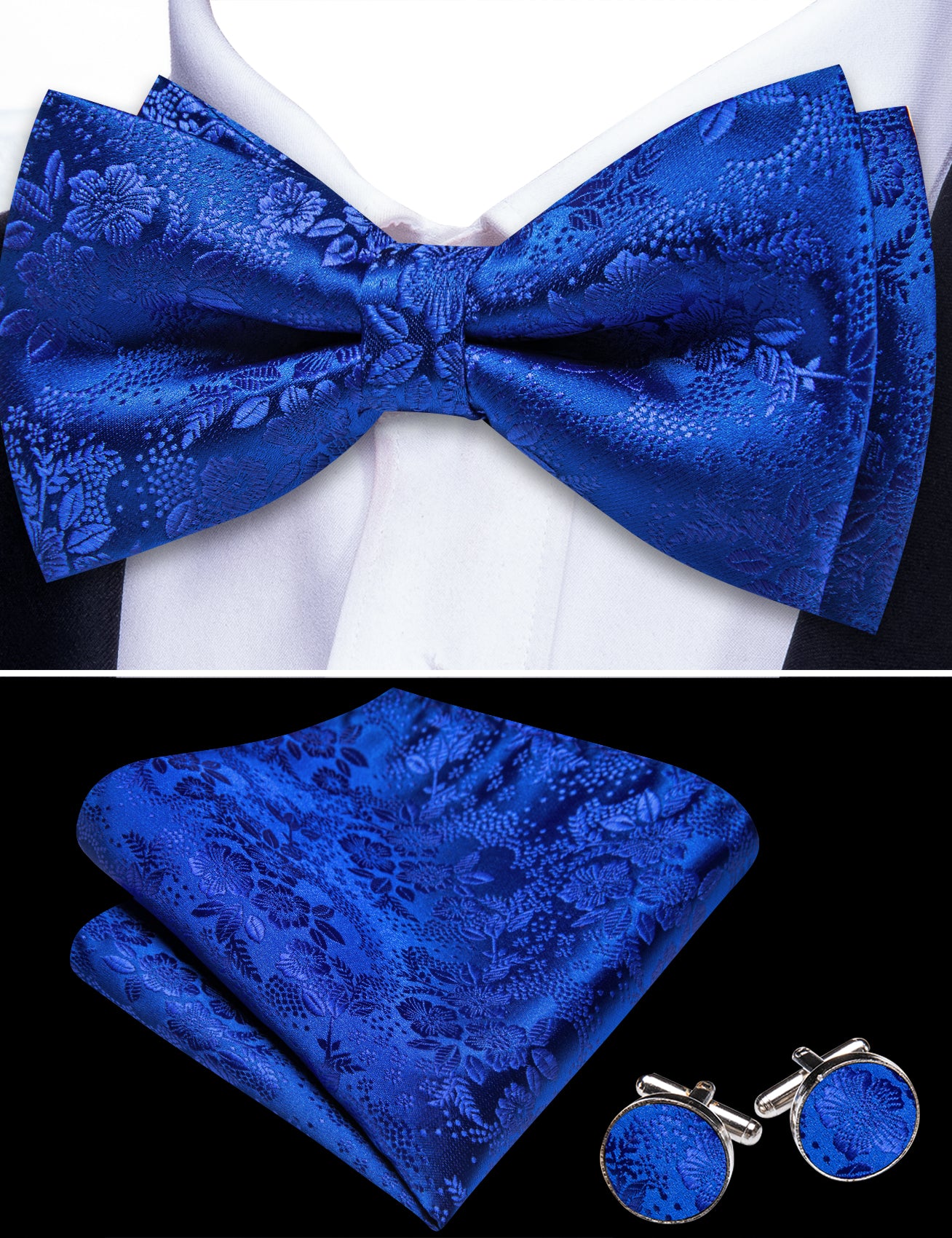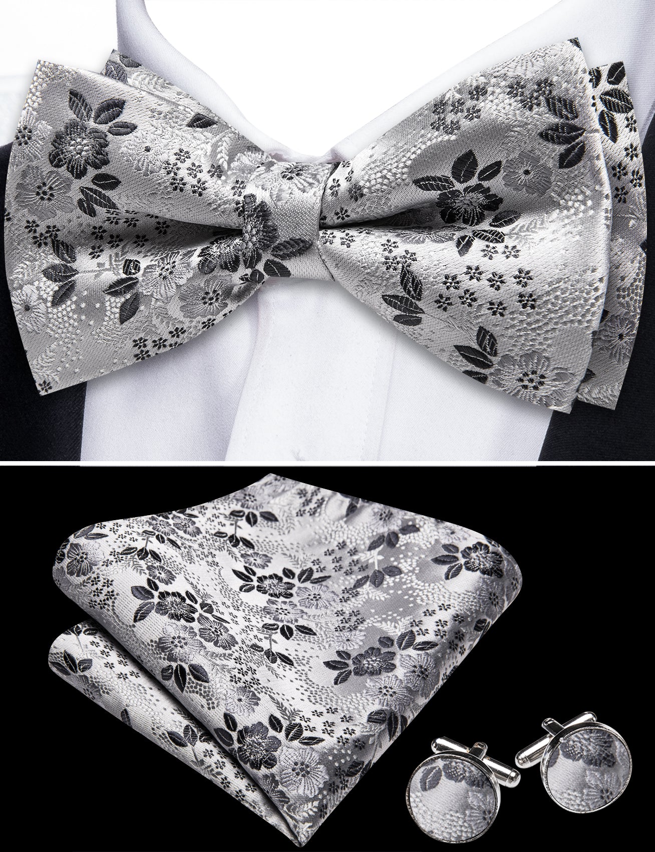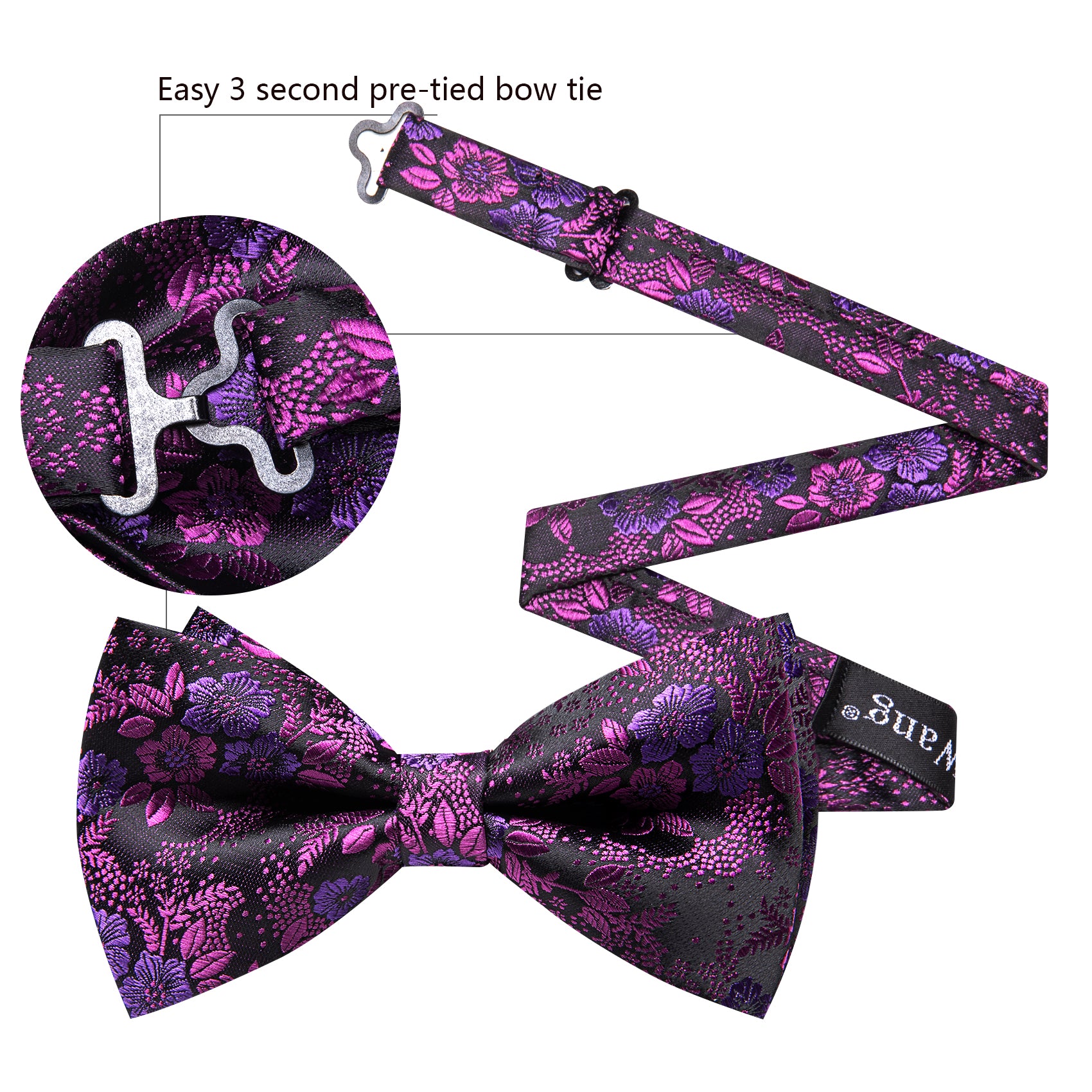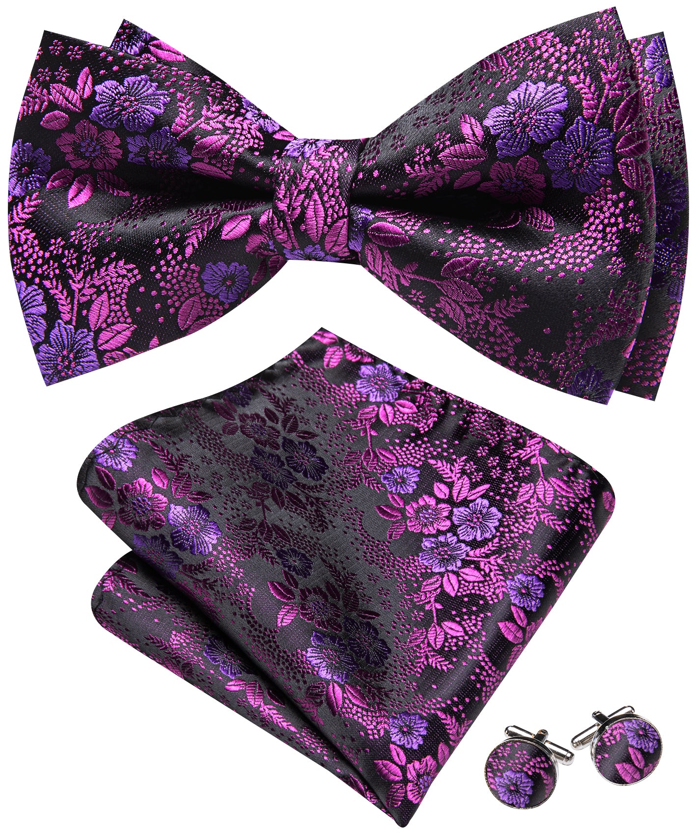 Barry. Wang Wisteria Purple Bowtie for Men Silk Pre-Tied Floral Wedding Bowtie Hanky Cufflinks Set