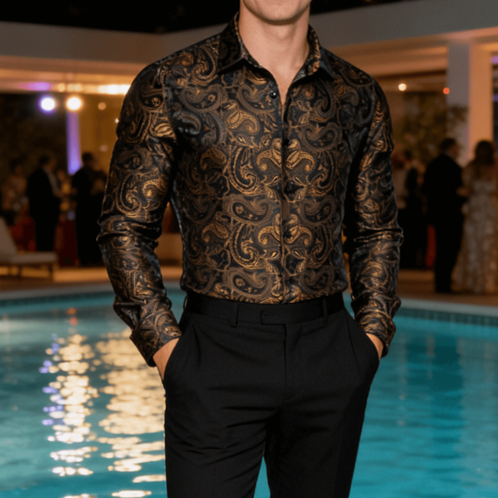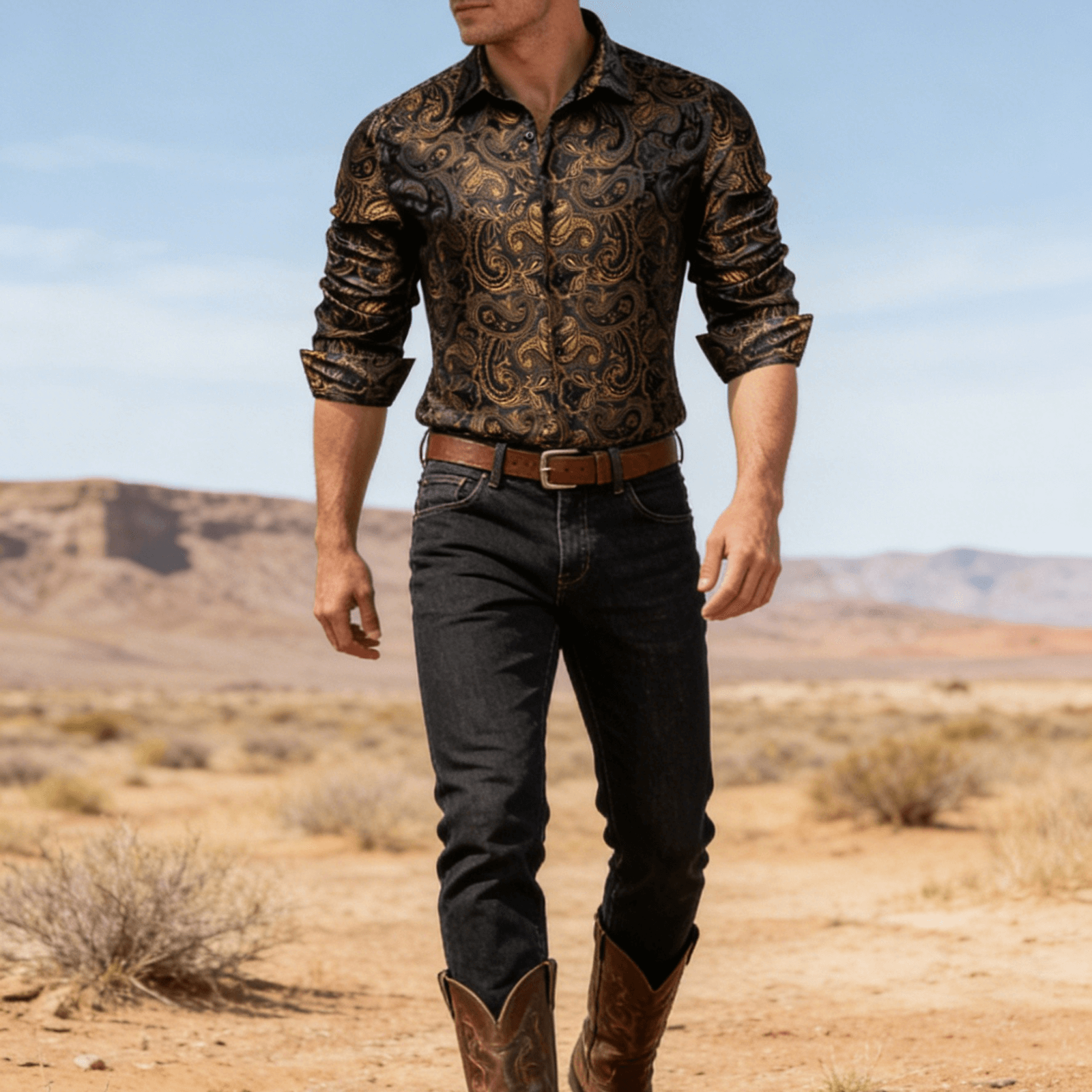 Barry. Wang Gold Casual Shirt for Men Paisley Long Sleeve Button Down Shirt