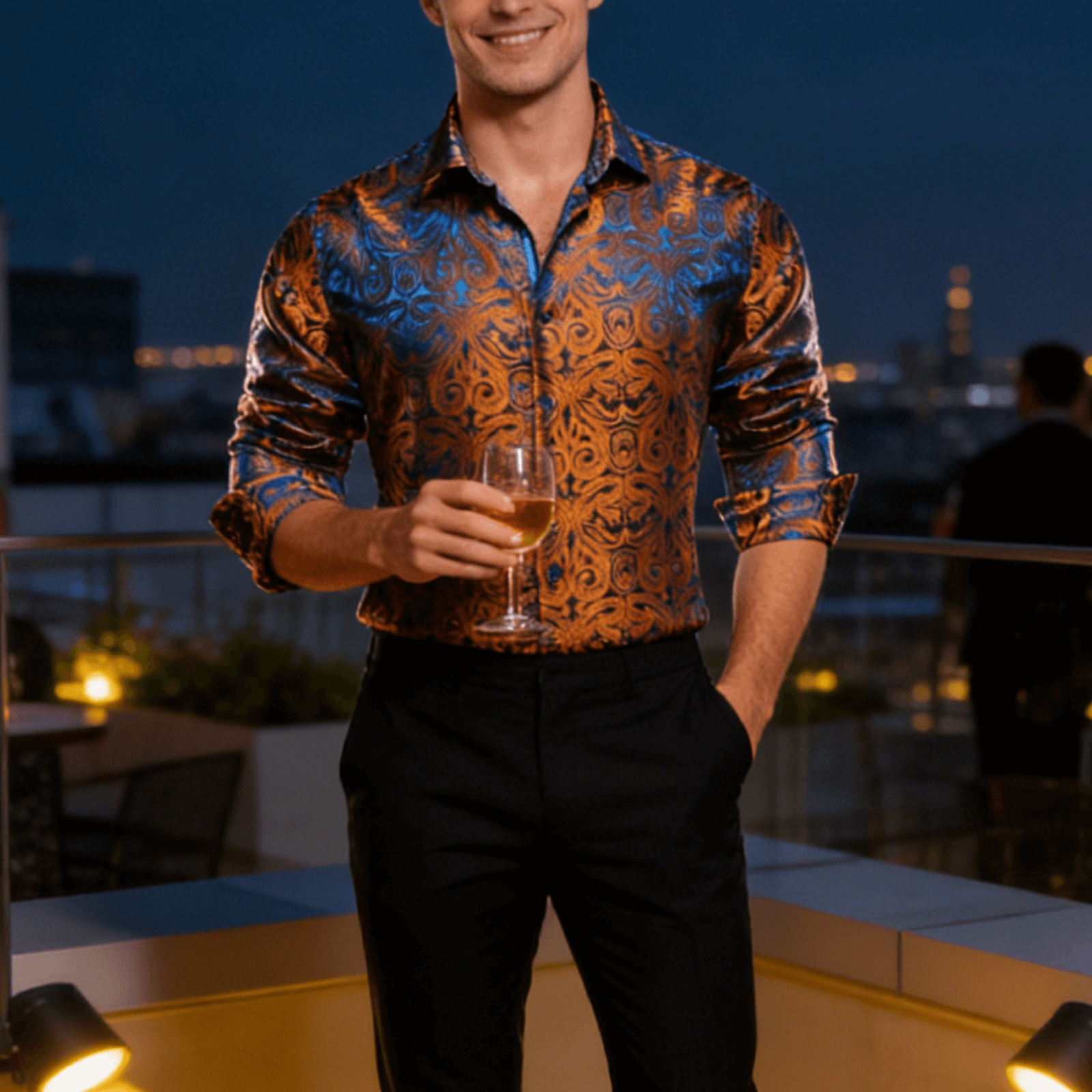 Barry. Wang Copper Paisley Button Down Shirt Casual Silk Long Sleeve Dress Shirt