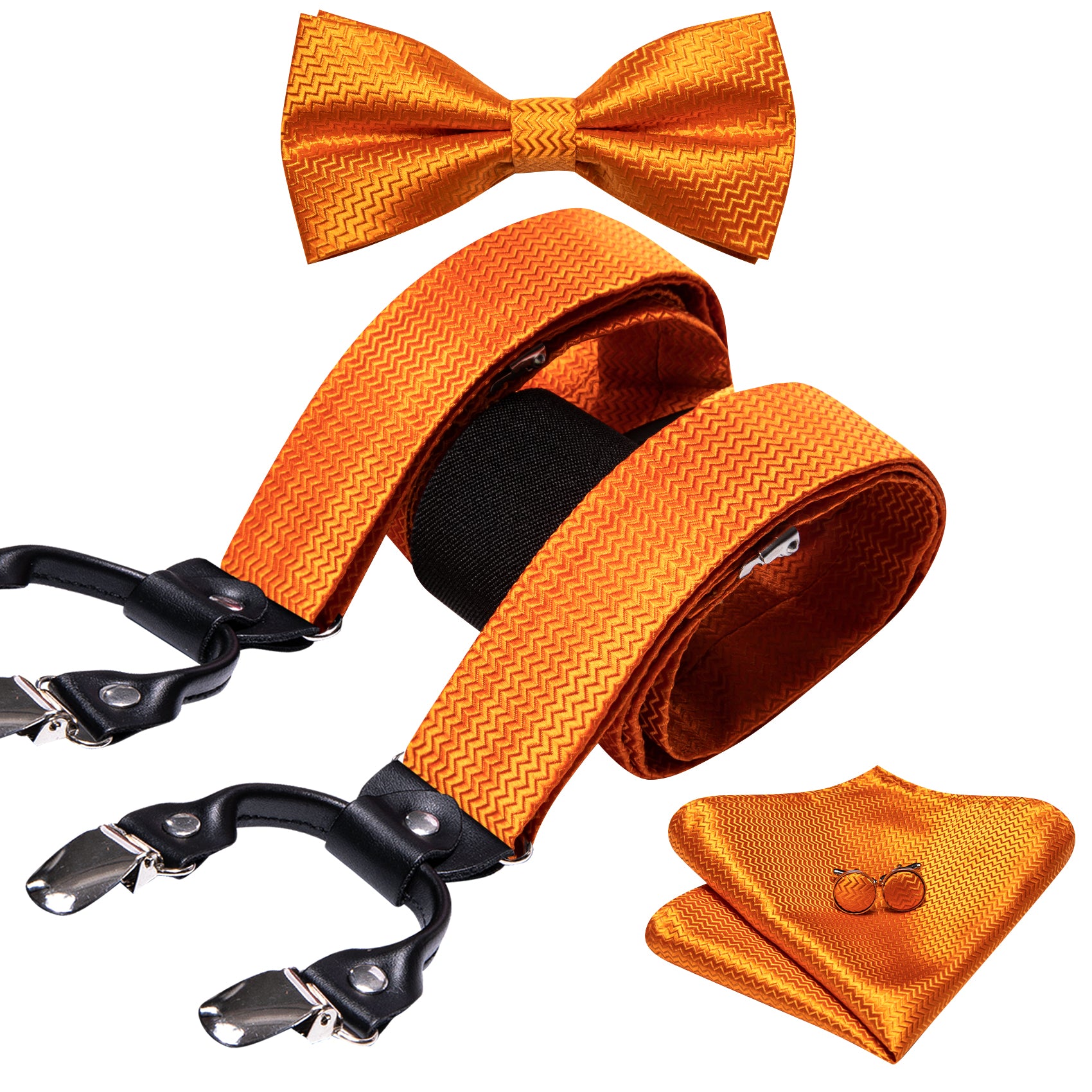 Barry. Wang Orange Bow Tie Solid Y Back Adjustable Bow Tie Suspenders Set