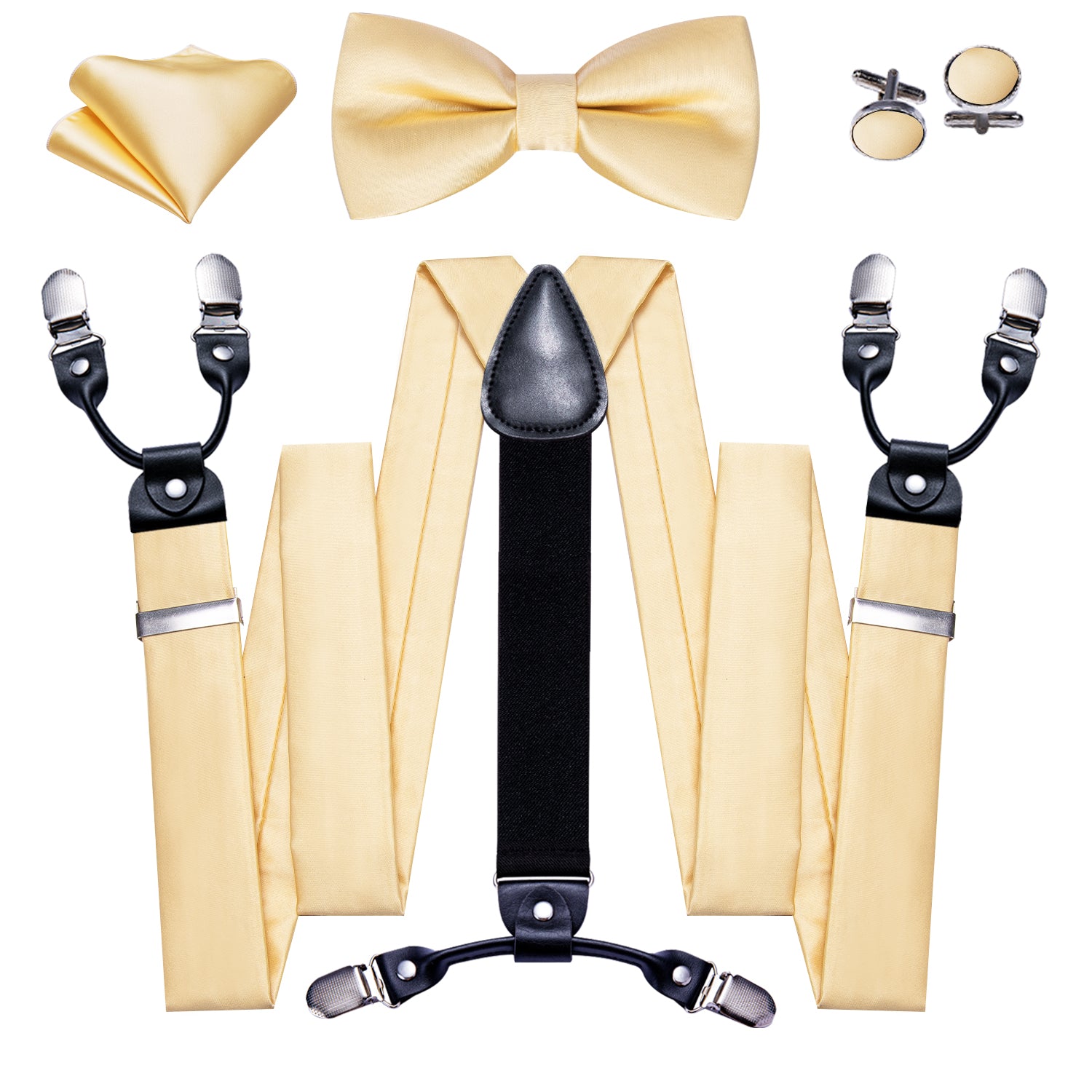 Barry. Wang Vanilla Solid Y Back Adjustable Bow Tie Suspenders Set