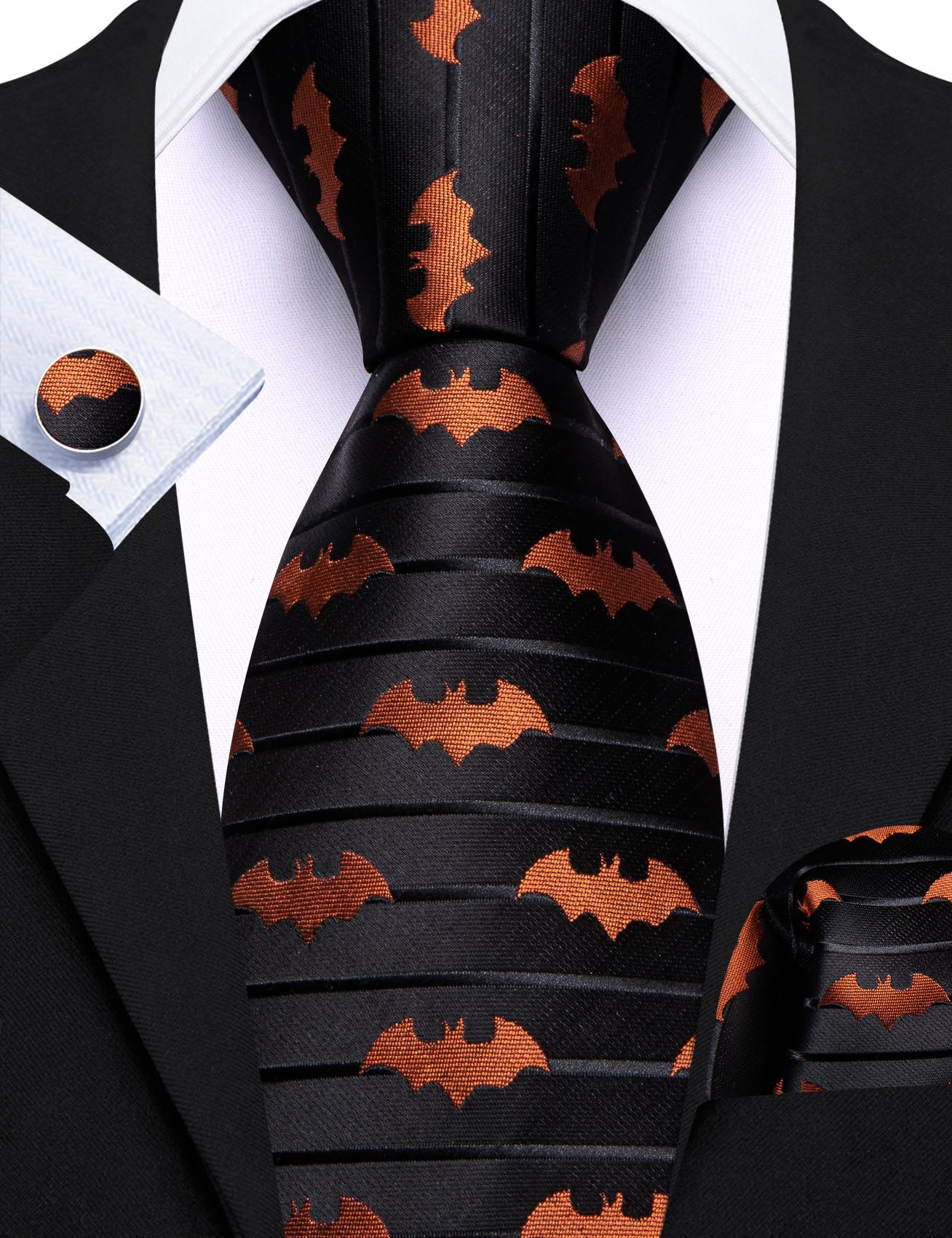 Barry. Wang Purple Bat Necktie Mens Black Tie Hanky Cufflinks Set with Lapel Pin Gift Box