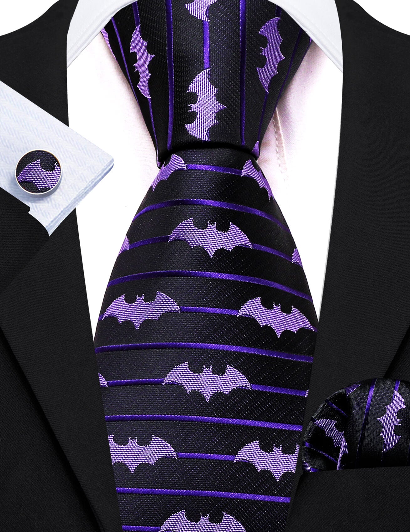 Barry. Wang Purple Bat Necktie Mens Silk Tie Pocket Square Cufflinks Set