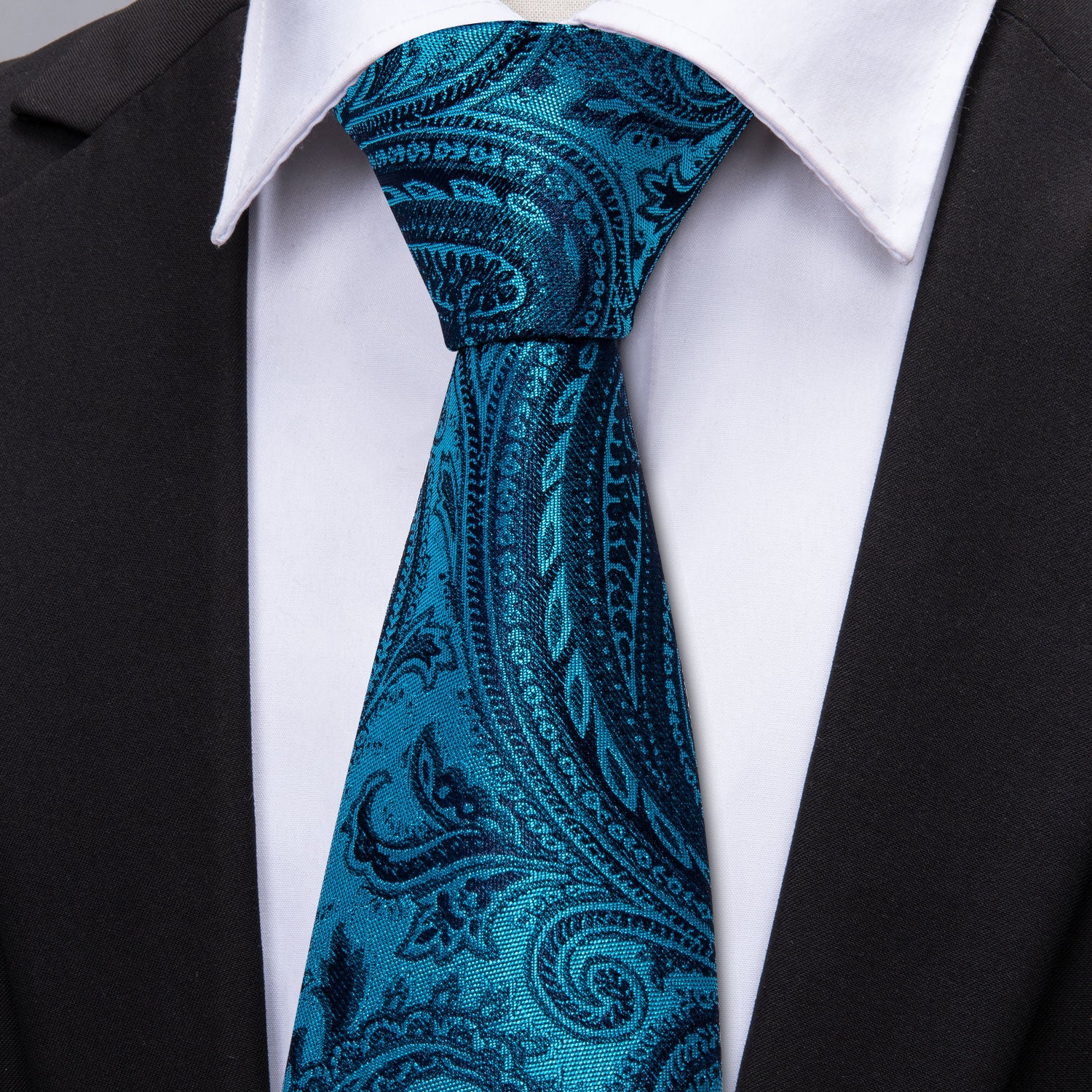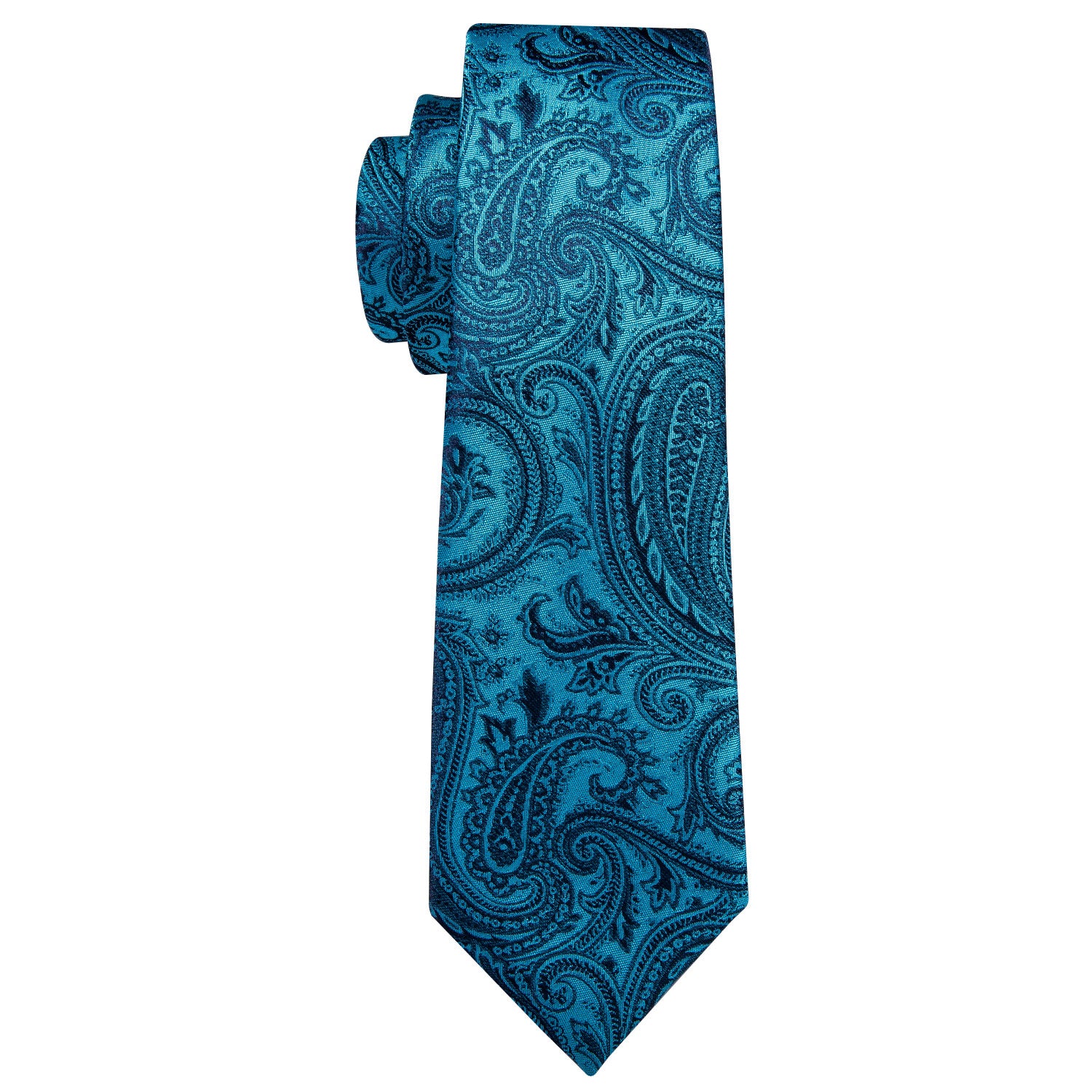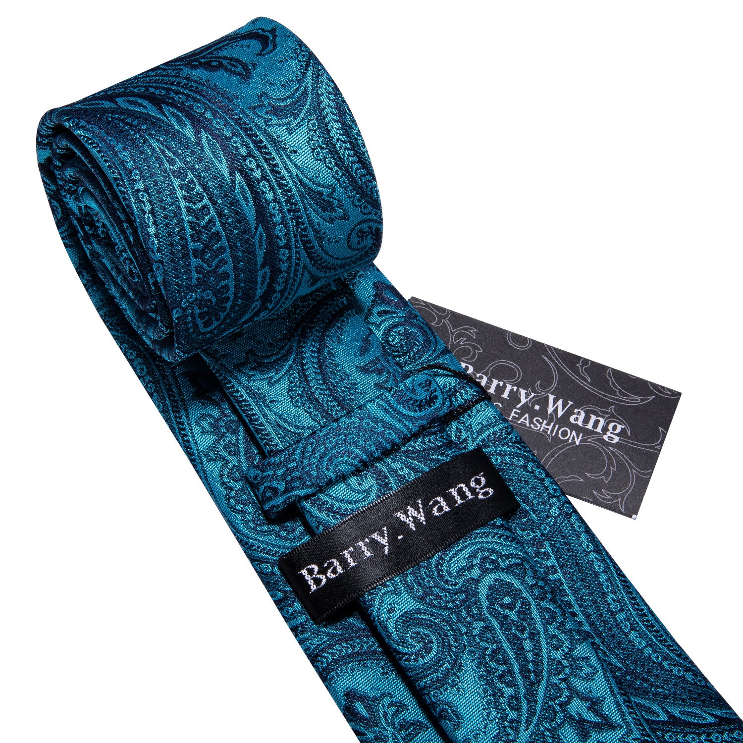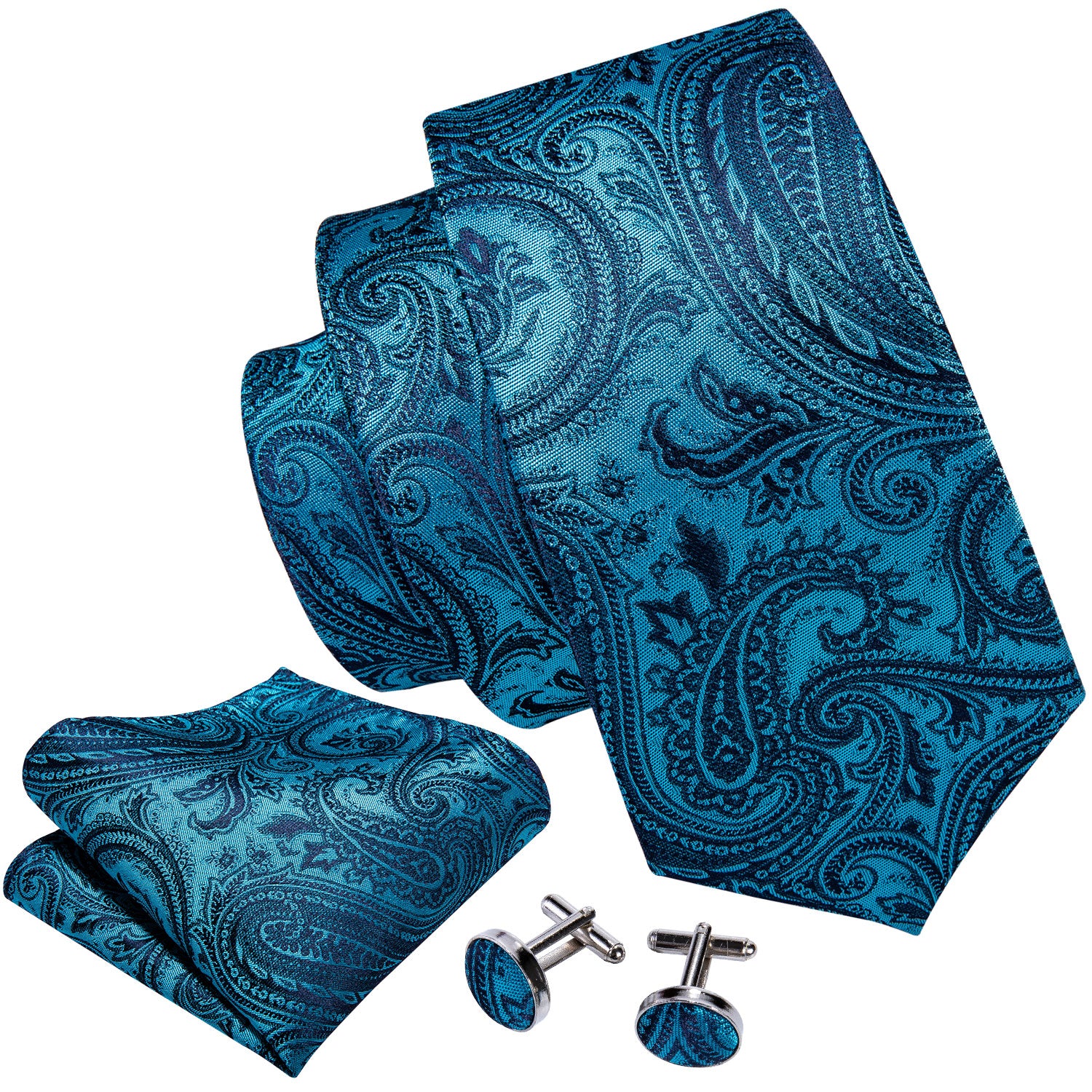 Barry. Wang Sky -Blue Paisley Men's Necktie Pocket Square Cufflinks Set