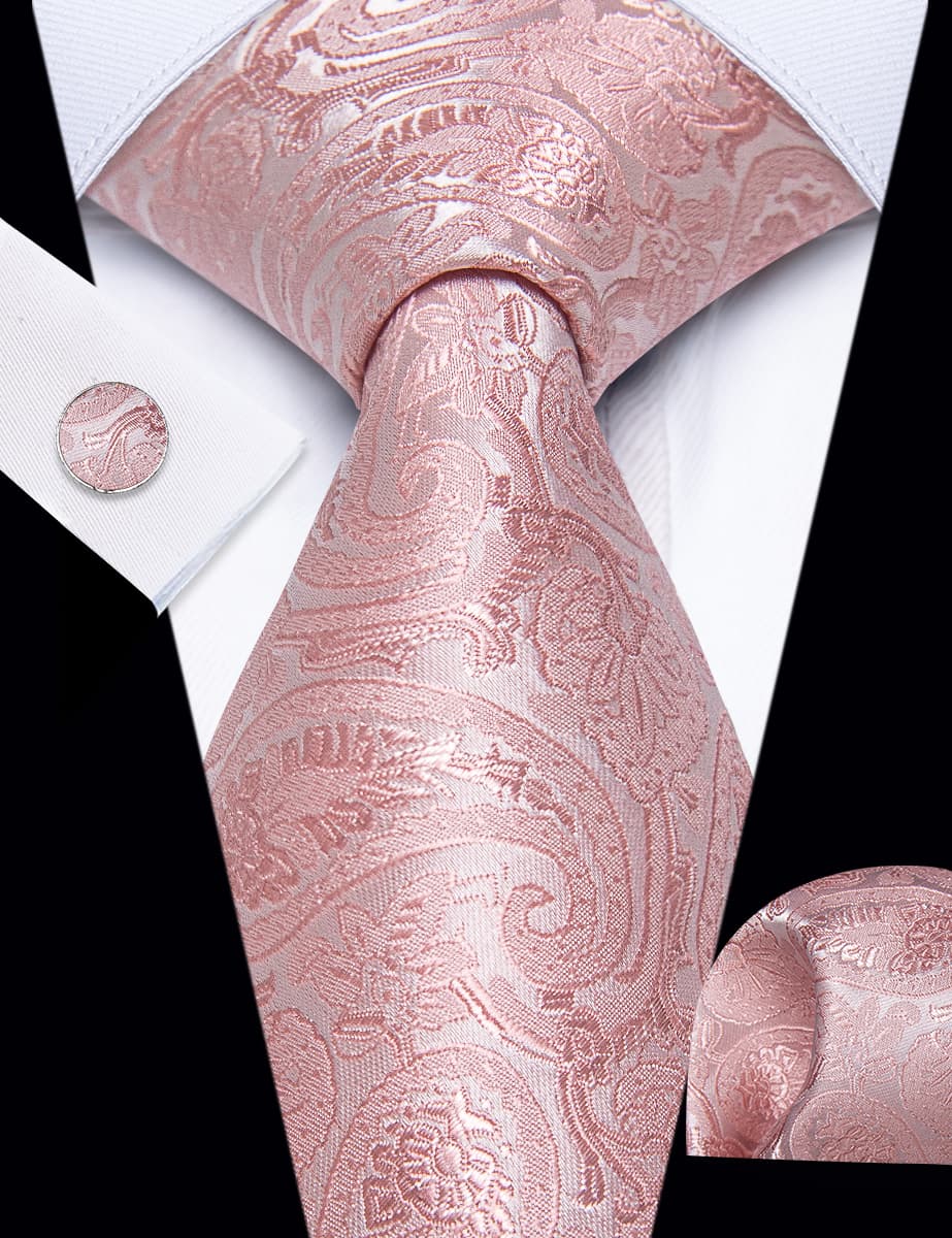 Barry. Wang Blush Pink Paisley Necktie Silk Tie Pocket Square Cufflinks Set