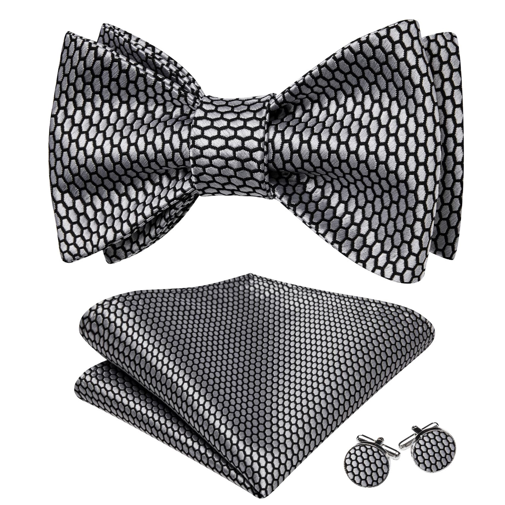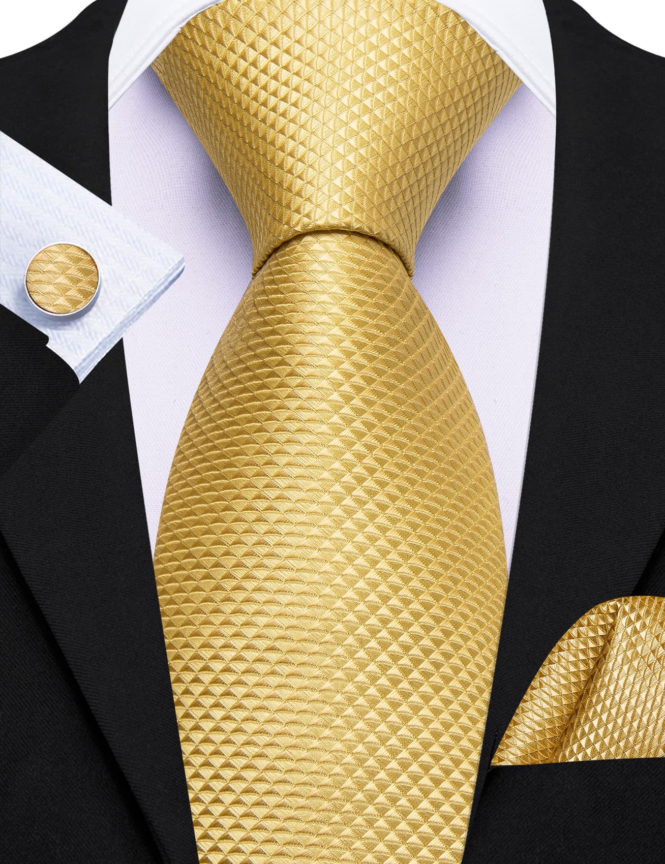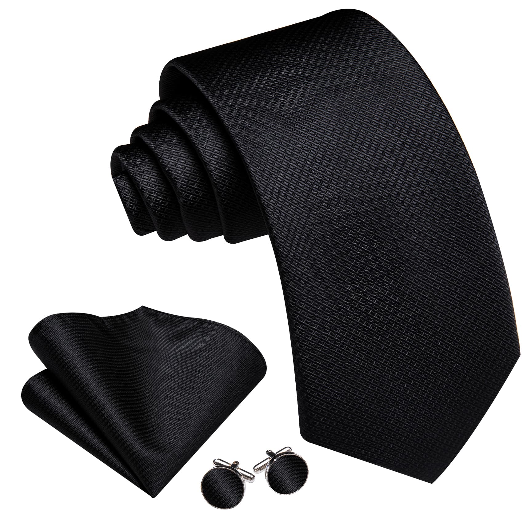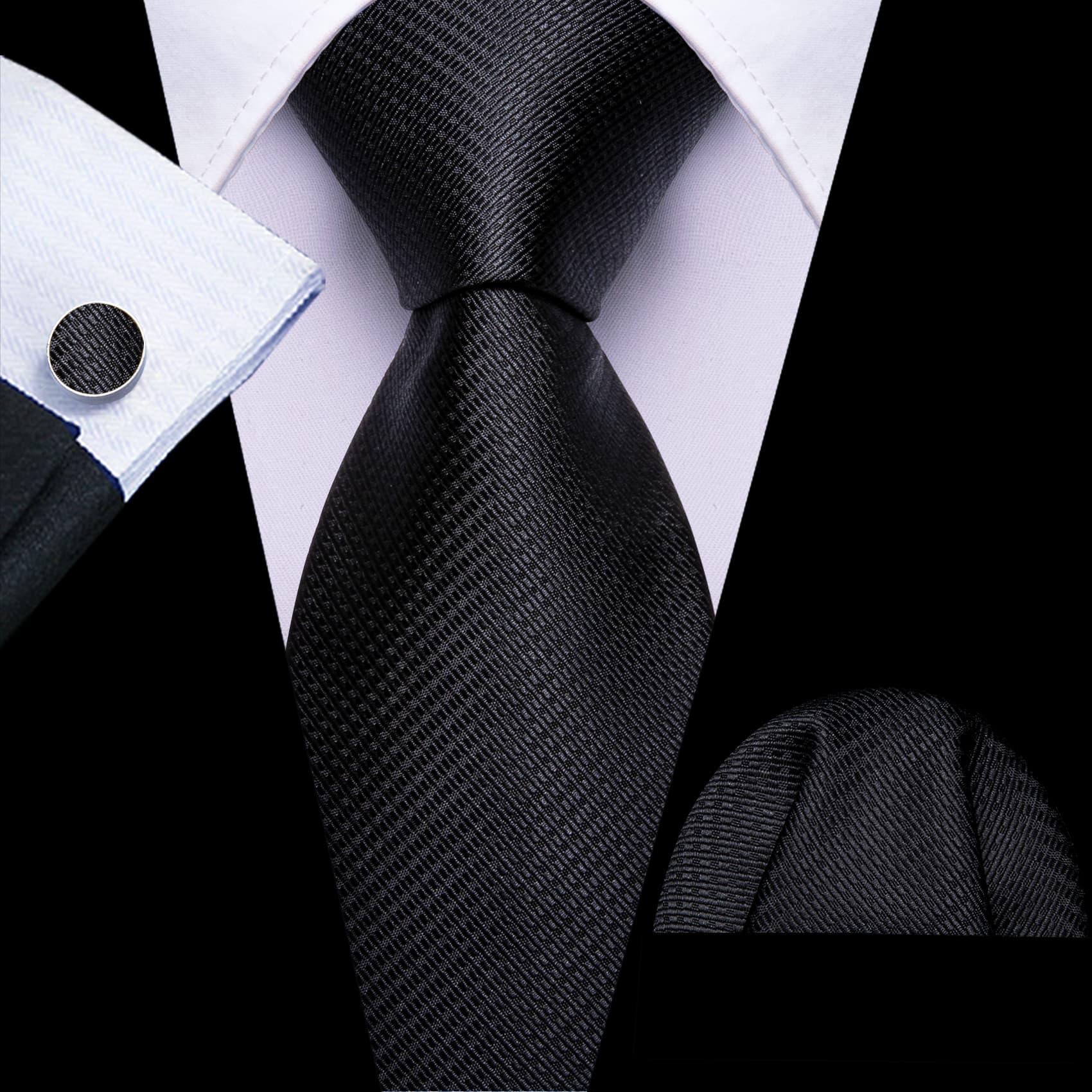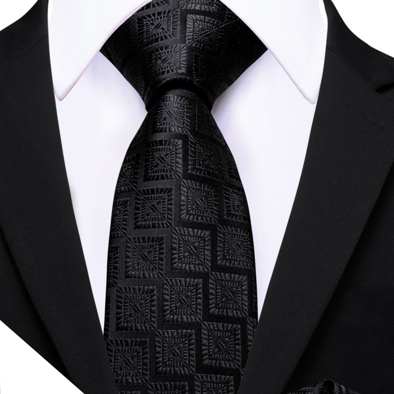 Barry. Wang Black Tie Jacquard Geometric Pattern Men's Necktie Set