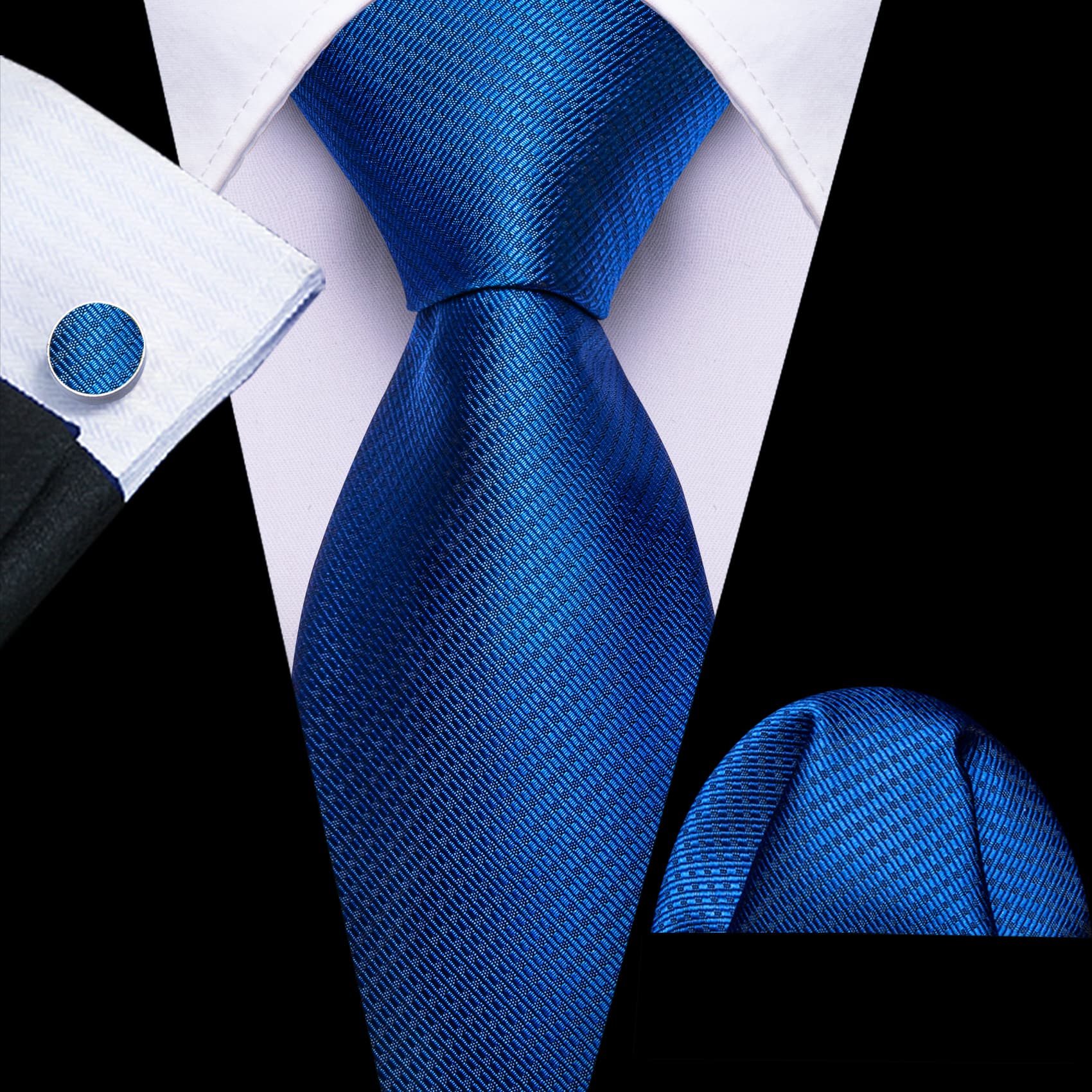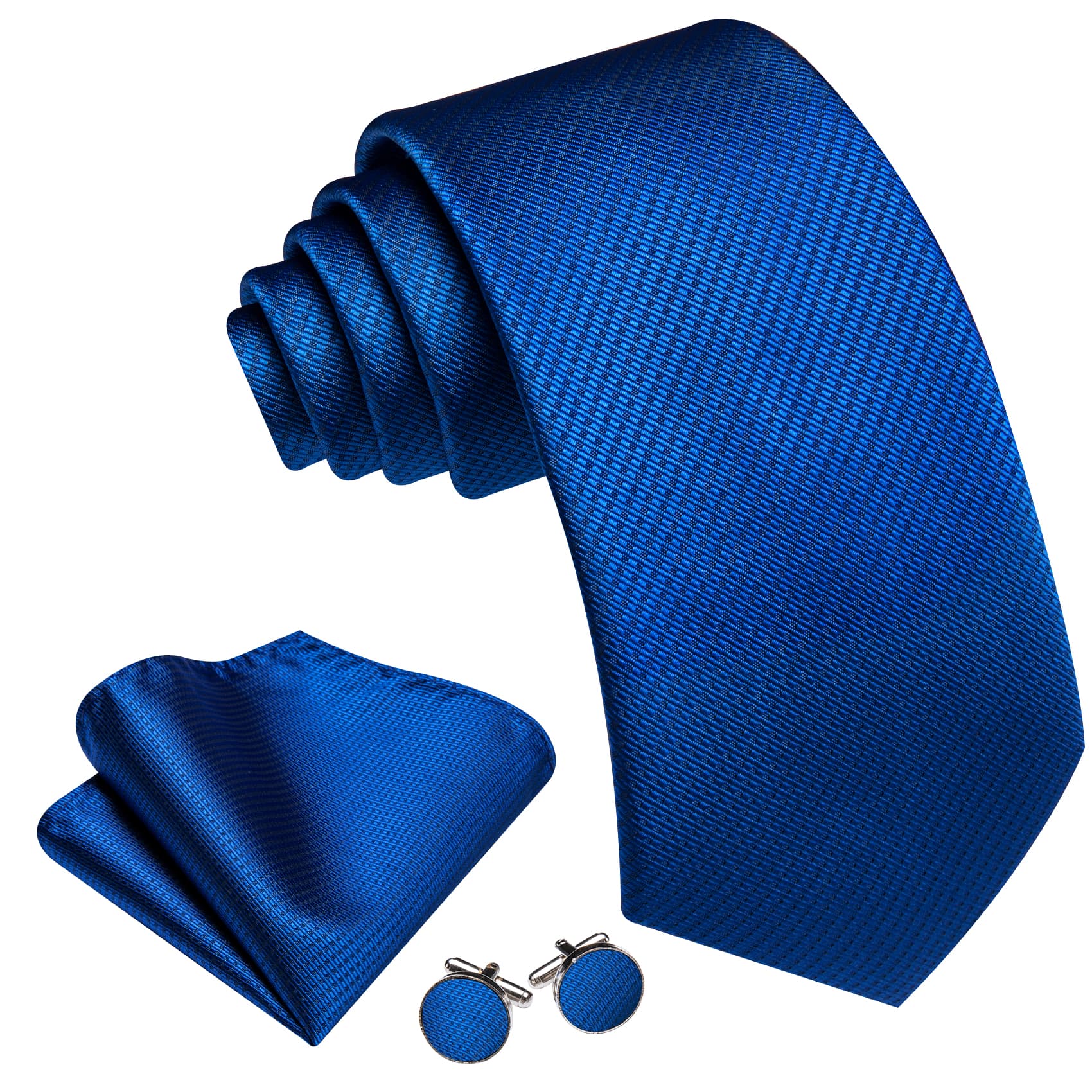 Barry. Wang Royal Blue Tie Jacquard Geometric Tie Hanky Cufflinks Set