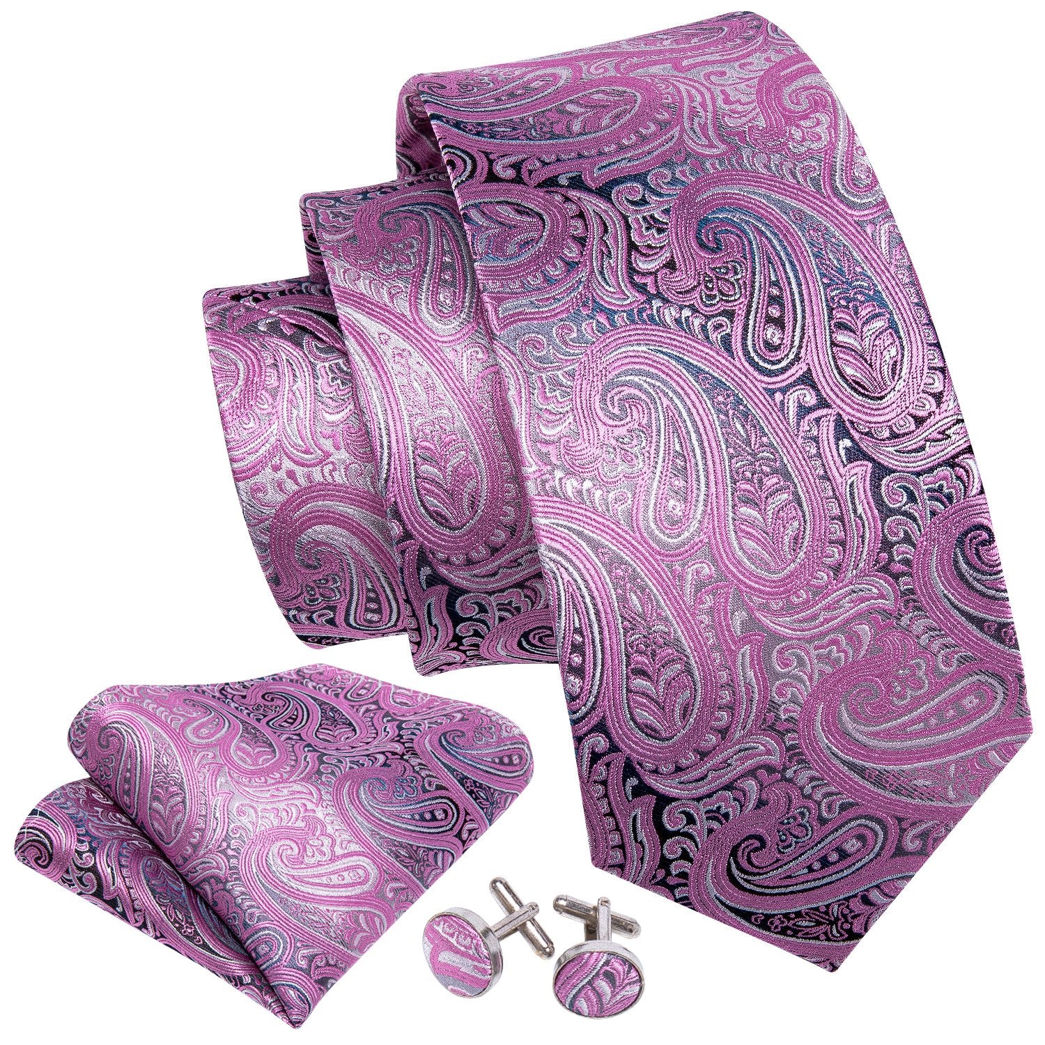 Barry. Wang Pink Paisley Necktie Alloy Lapel Pin Brooch Pocket Square Cufflinks Gift Box Set