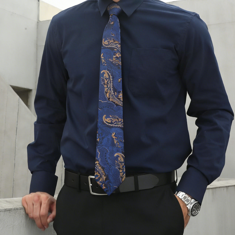 Barry. Wang Mens Paisley Tie Silk Navy Blue Necktie Hanky Cufflinks Set for Men Formal