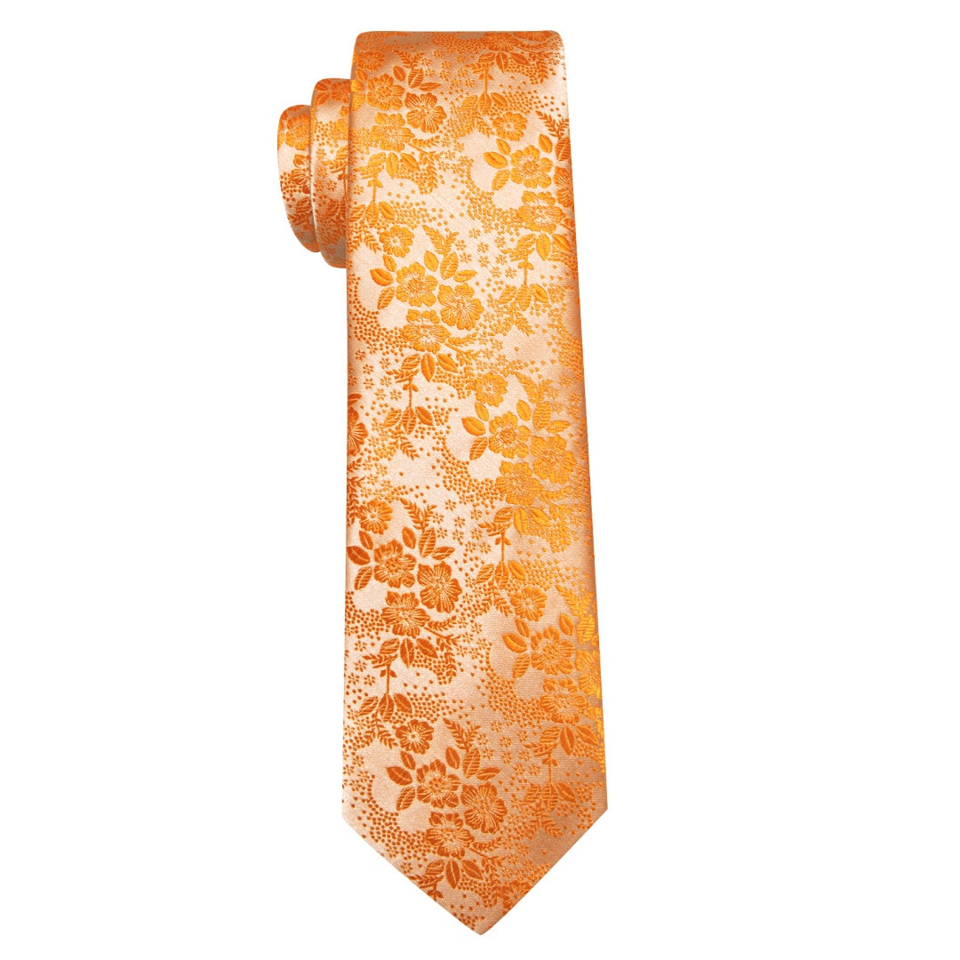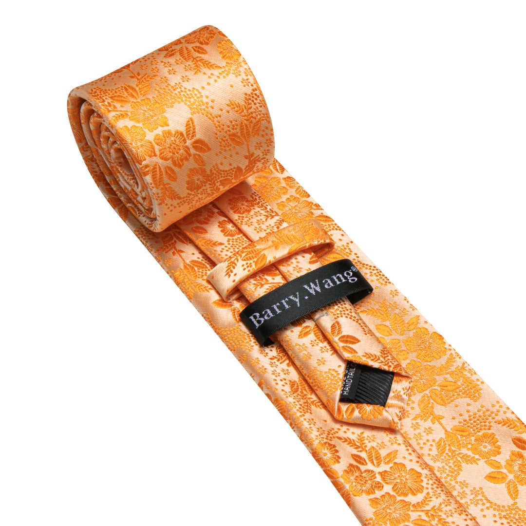 Barry. Wang Mens Orange Tie Floral Designer Tie Pocket Square Cufflinks Set
