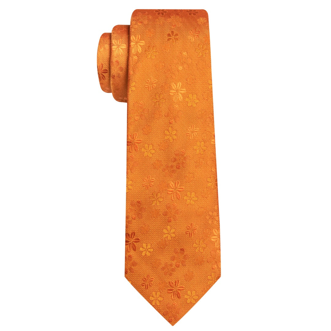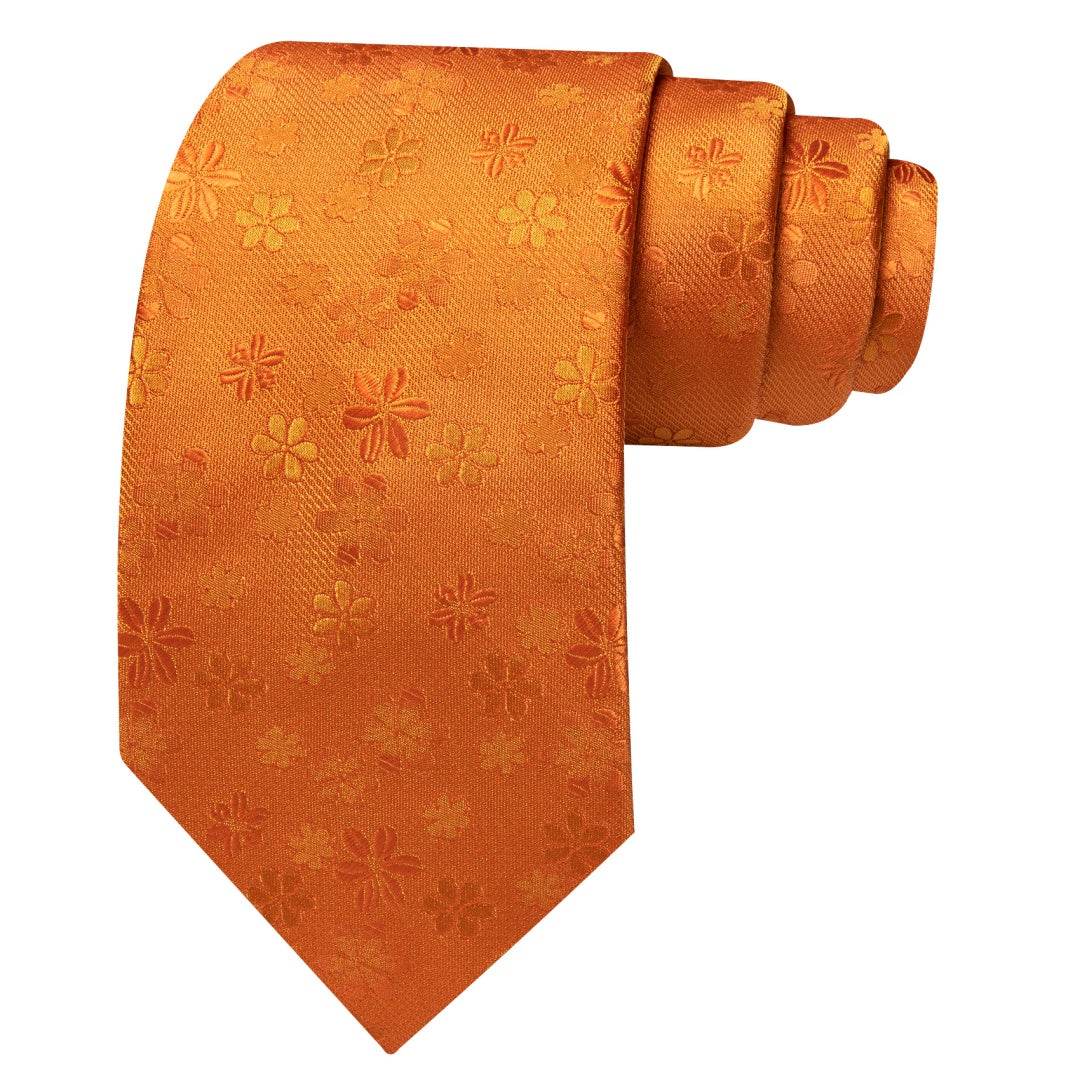 Barry. Wang Silk Mens Dark Orange Floral Tie Pocket Square Cufflinks Tie Set