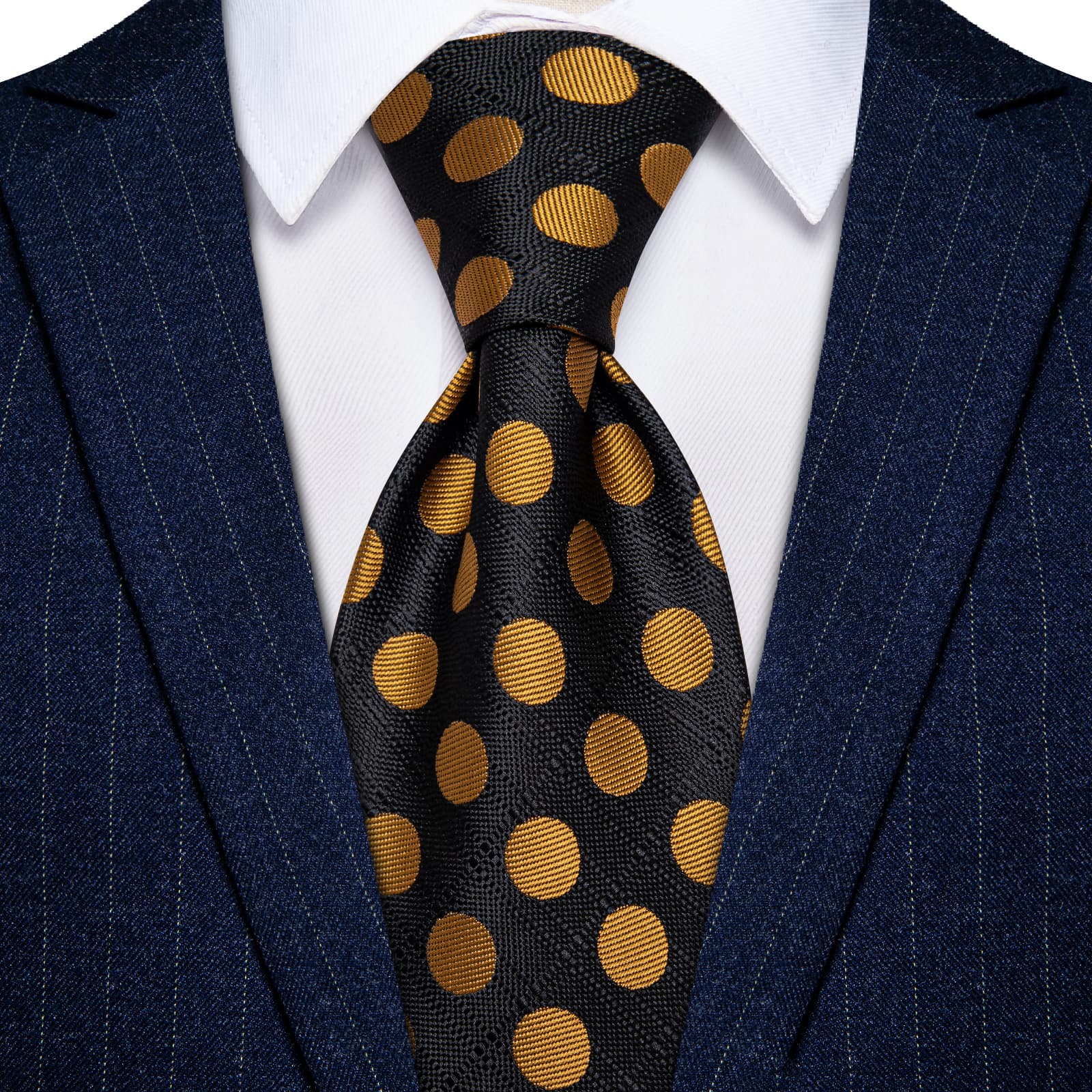 Barry. Wang Black Gold Polka Dot Necktie Silk Tie Pocket Square Cufflinks Set
