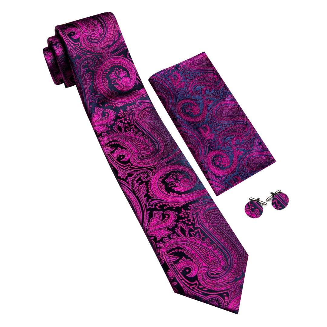 Barry. Wang Blue Purple Paisley Tie Pocket Square Cufflinks Set Silk Mens Ties