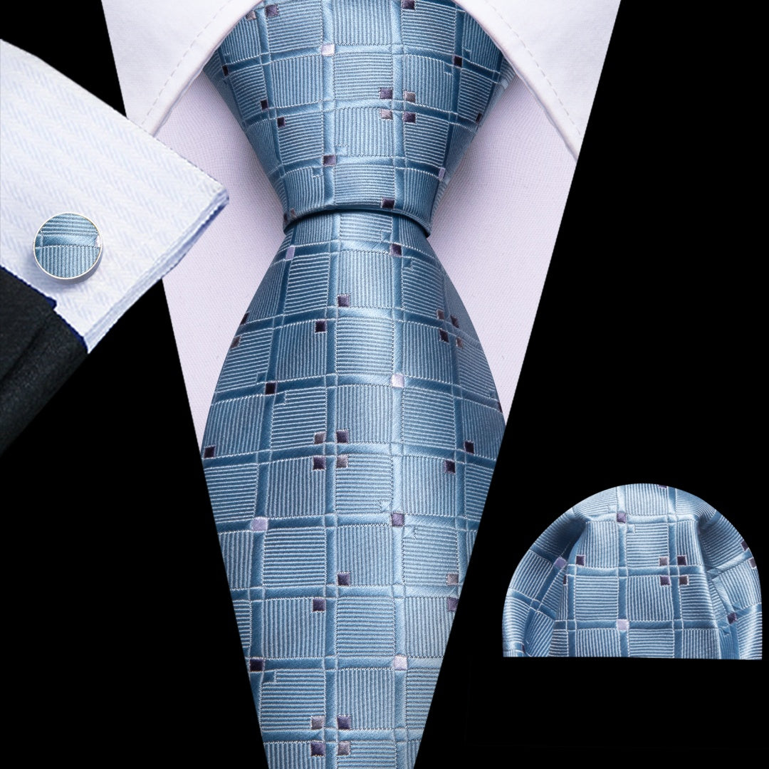 Barry. Wang Dark Pluple Tie Plaid Silk Tie Pocket Square Cufflinks Set for Men
