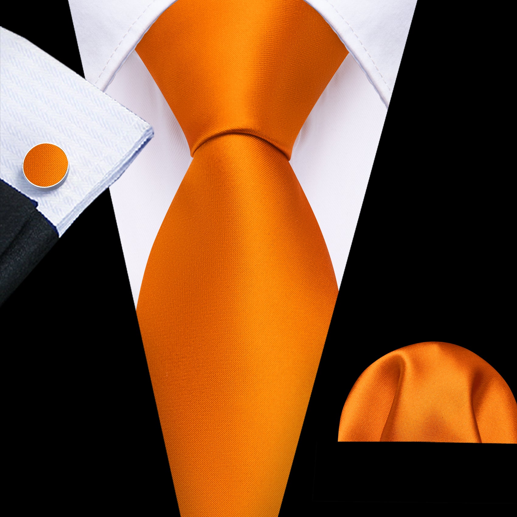 Barry. Wang Men's Gold Necktie Solid Wedding Tie Hanky Cufflinks Set