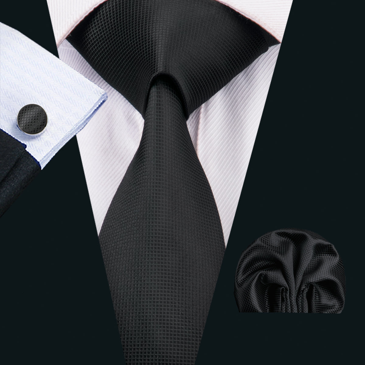 Barry. Wang Dark Purple Necktie Solid Tie Hanky Cufflinks Set for Men