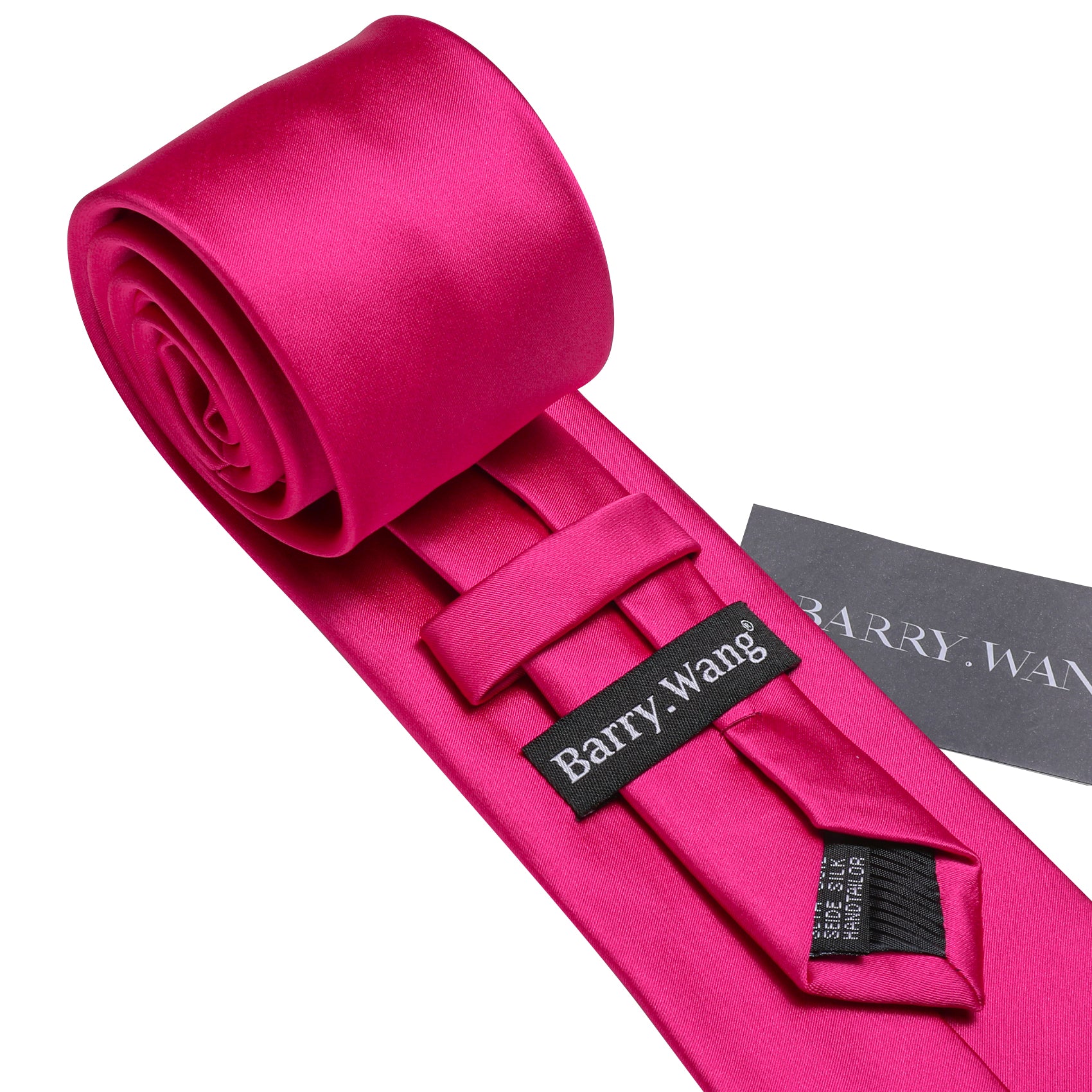 Barry. Wang Barbie Pink Solid Silk Tie Handkerchief Cufflinks Set For Men