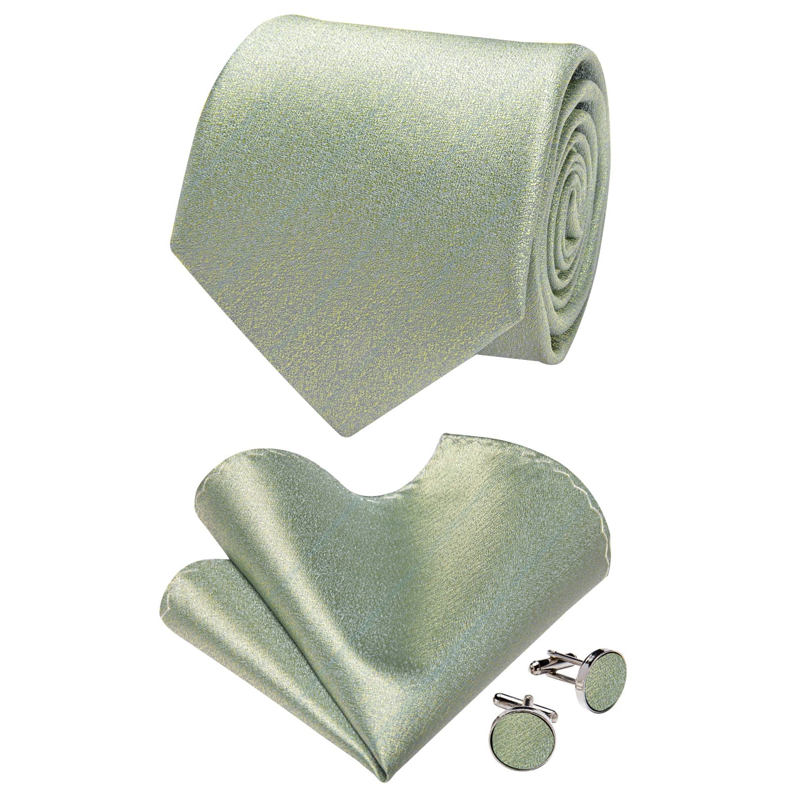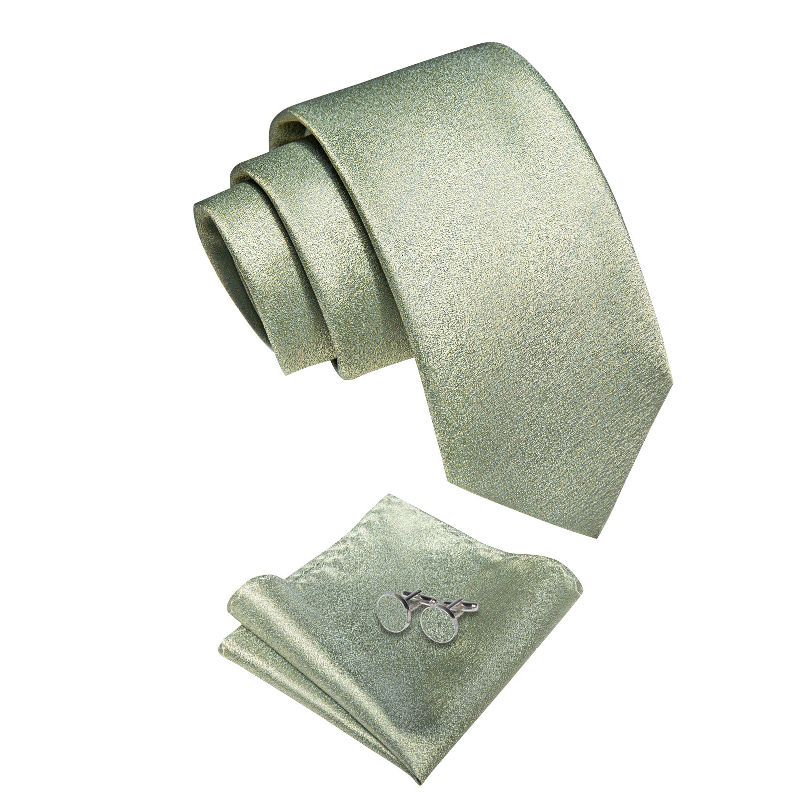Barry. Wang Sage Green Necktie Silk Mens Solid Tie Pocket Square Cufflinks Set