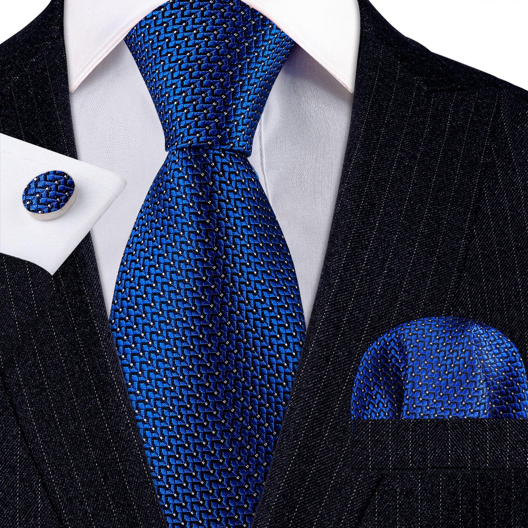 • What You Get: Same design Tie, Pocket Square & Cufflinks