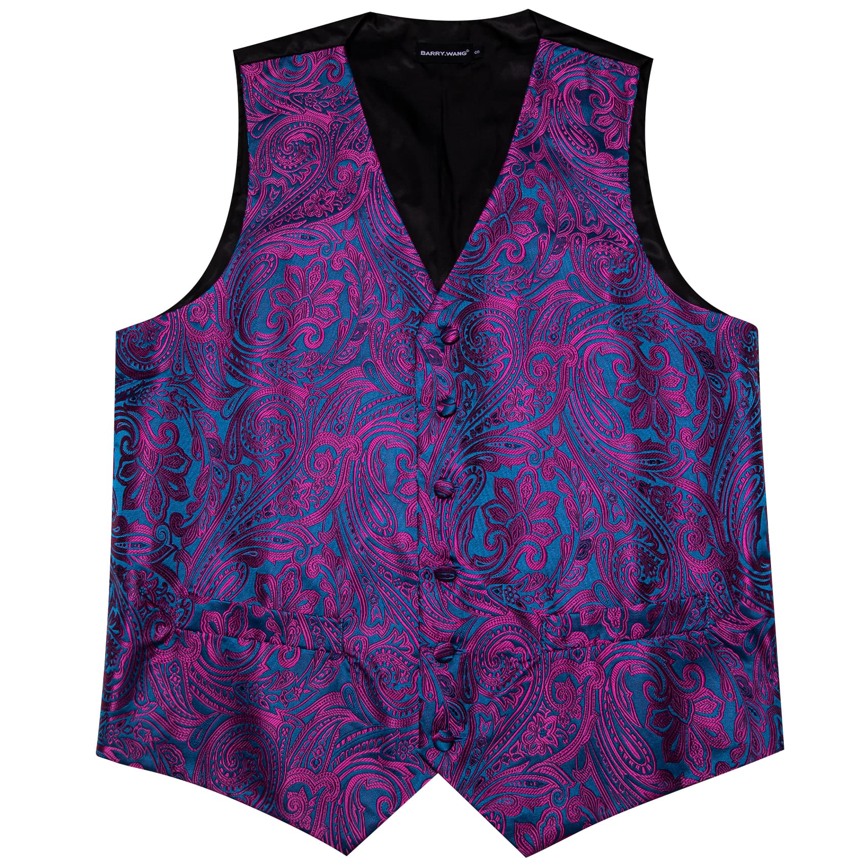 Barry. Wang Mens Purple Paisley Vest Royal Blue Suit 4PCS Vest Bowtie Hanky Cufflinks Set