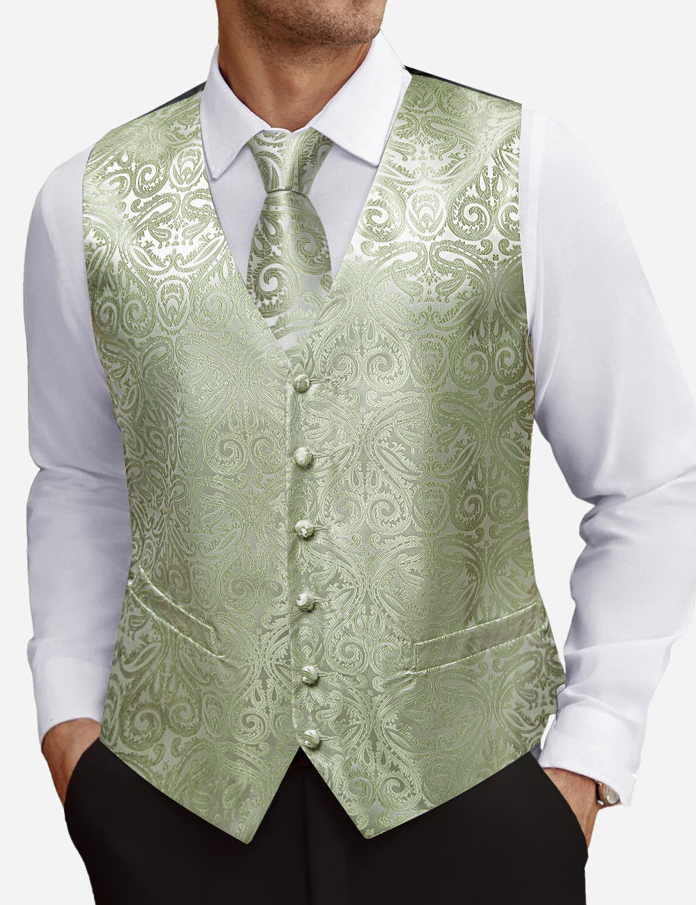 Barry. Wang Champagne Mens suit Vest Paisley Formal Waistcoat Tie Pocket Square Cufflinks Set