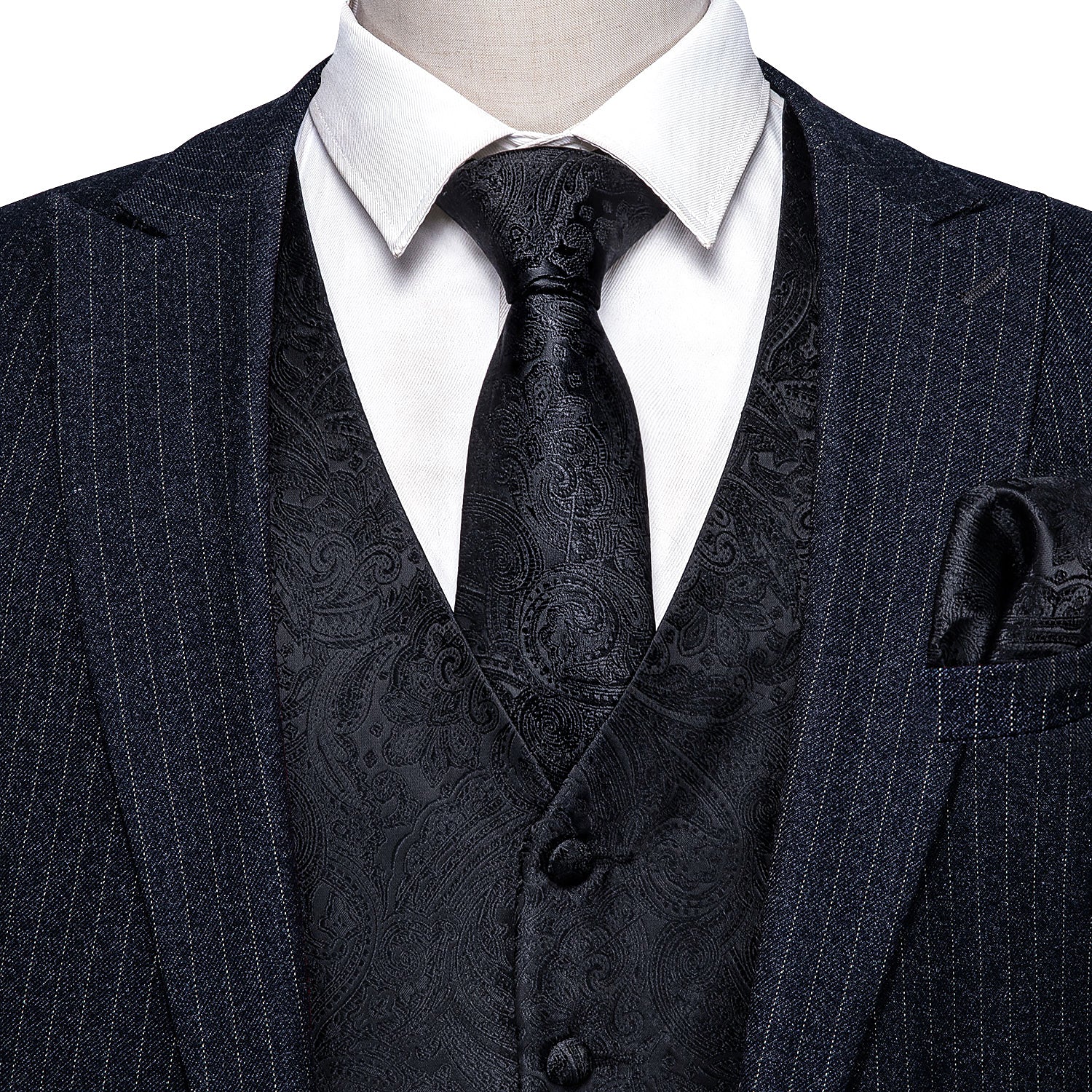 Barry. Wang Purple Floral Suit Vest Black Dress Waistcoat Tie Pocket Square Cufflinks Set