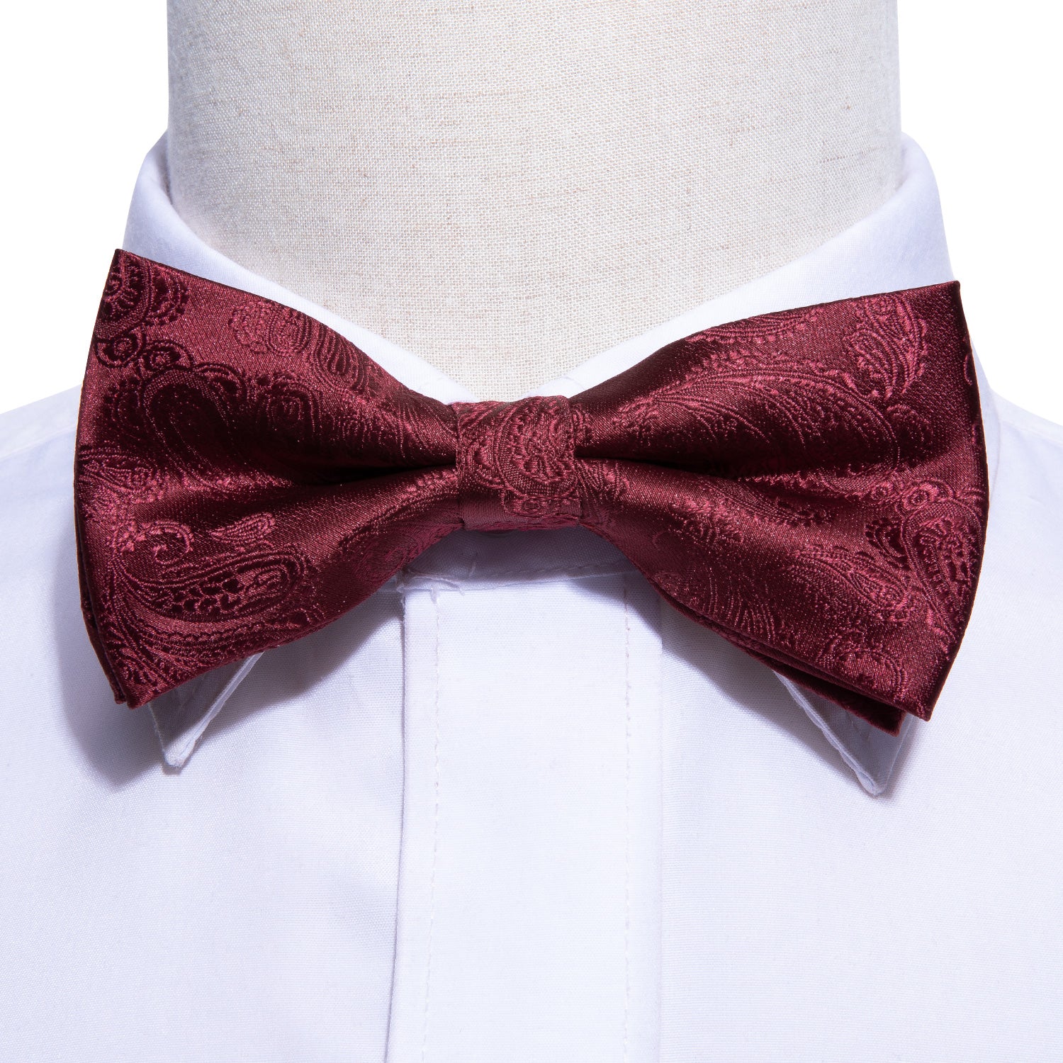 Barry. Wang Burgundy Floral Bow Tie Pre-tied Paisley Adjustable Bowtie Pocket Square Cufflinks Set