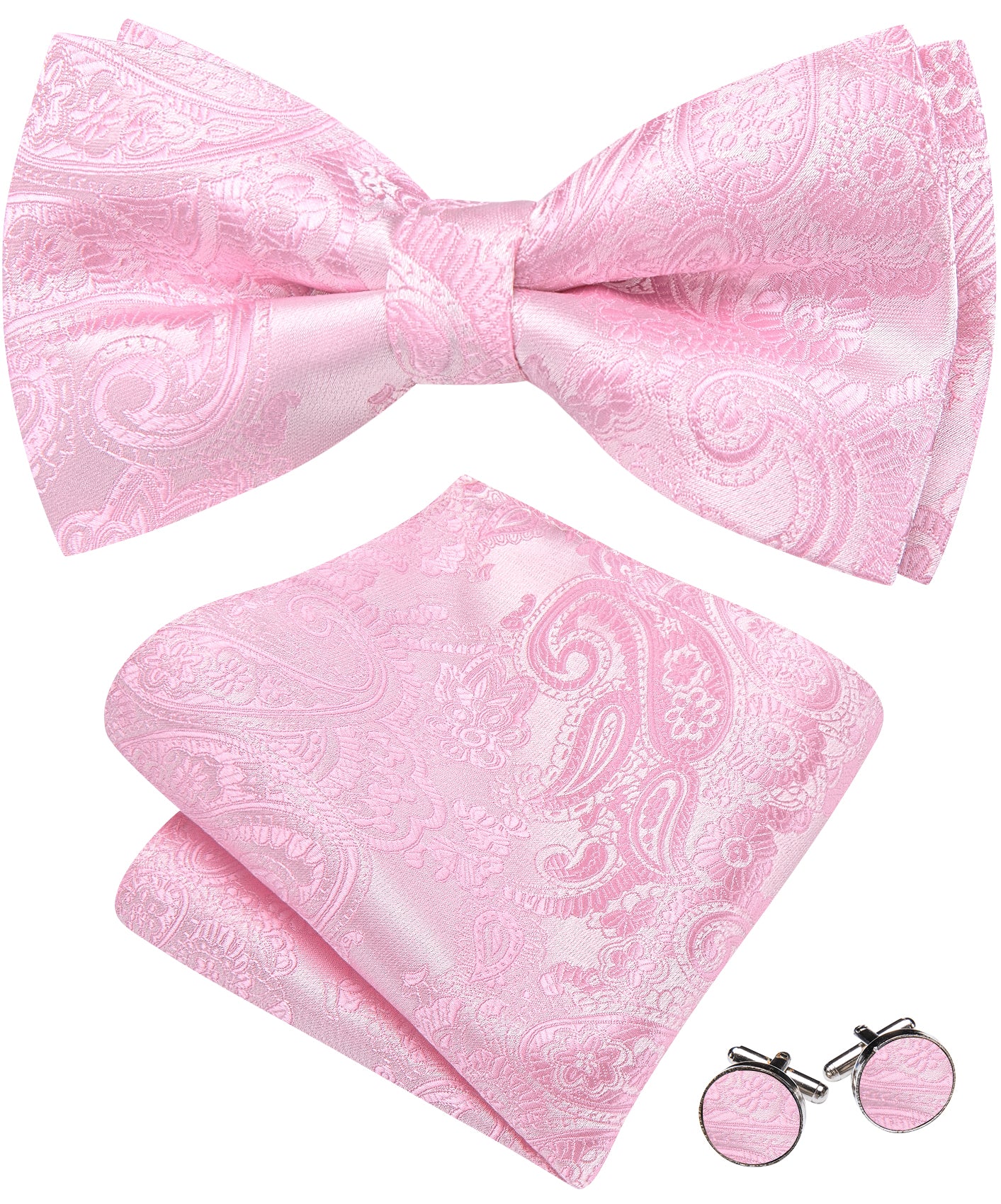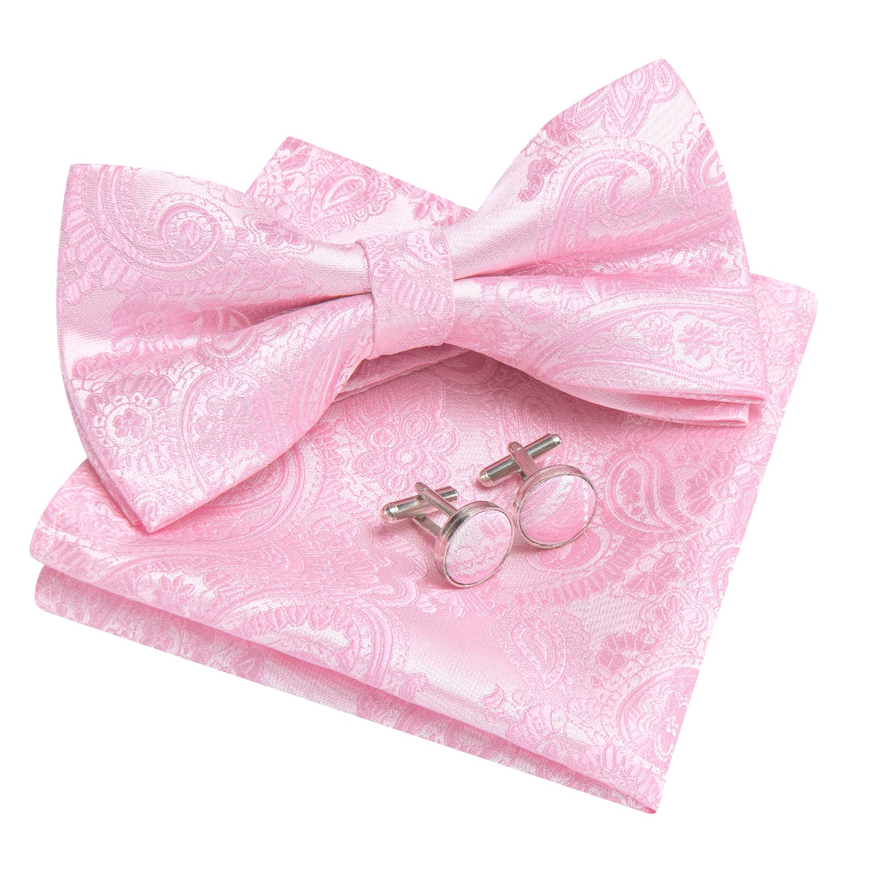 - What You Get: Same Design Pre-tied Bow tie, Pocket Square & Cufflinks