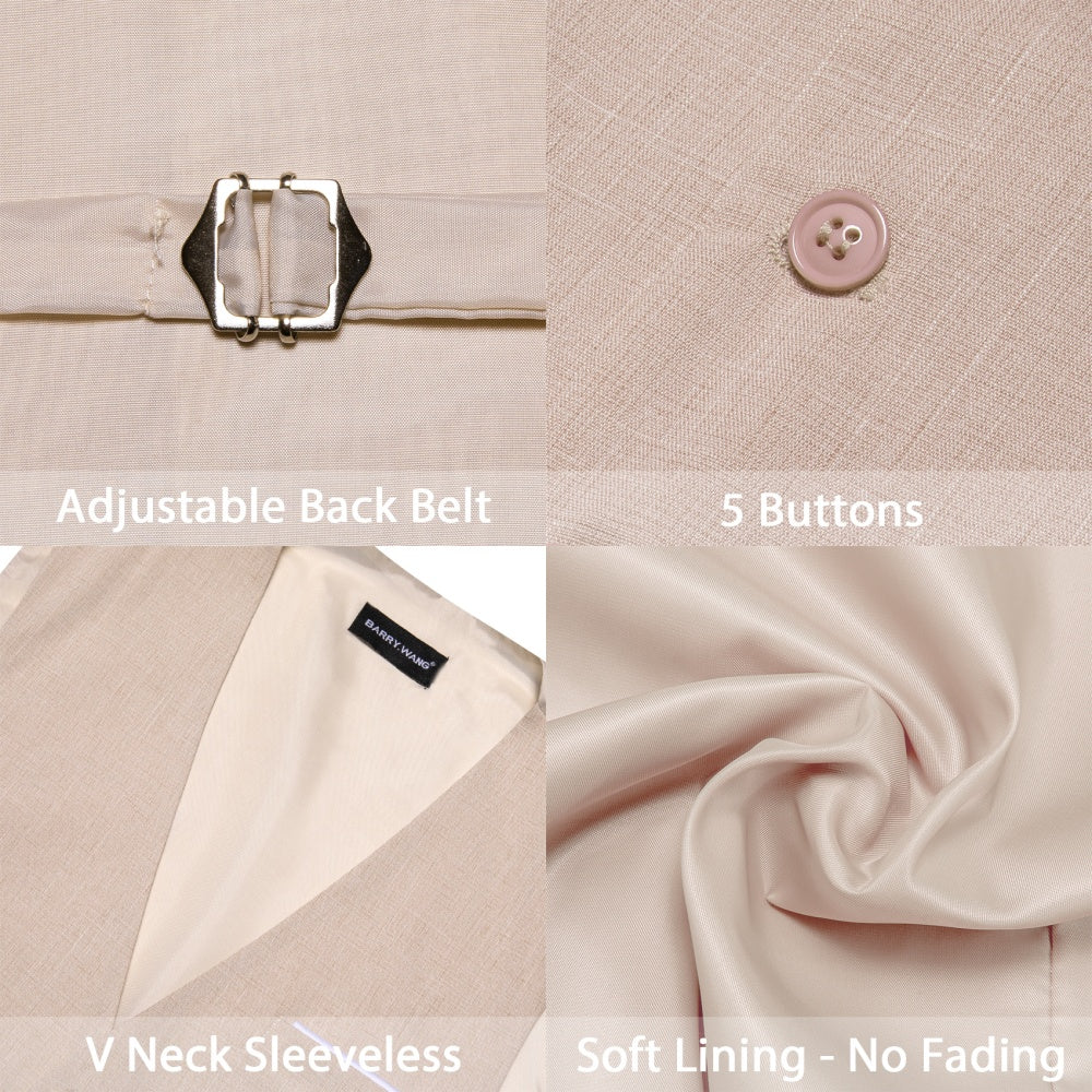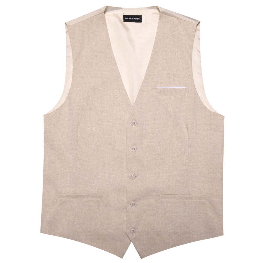 Barry. Wang Formal khaki Suit Vest Business Slim Fit Dress Waistcoat Tie Hanky Cufflinks Set
