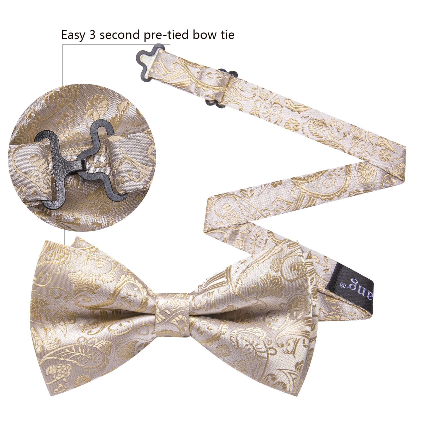 - What You Get: Same Design Pre-tied Bow tie, Pocket Square