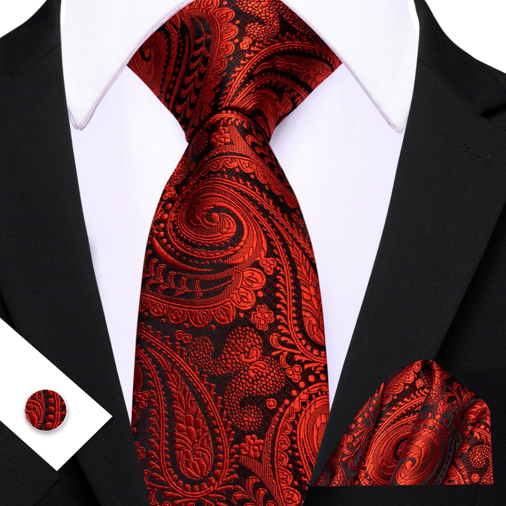 Barry. Wang Red Paisley Ties for Men Silk Suit Necktie Pocket Square Cufflinks Set