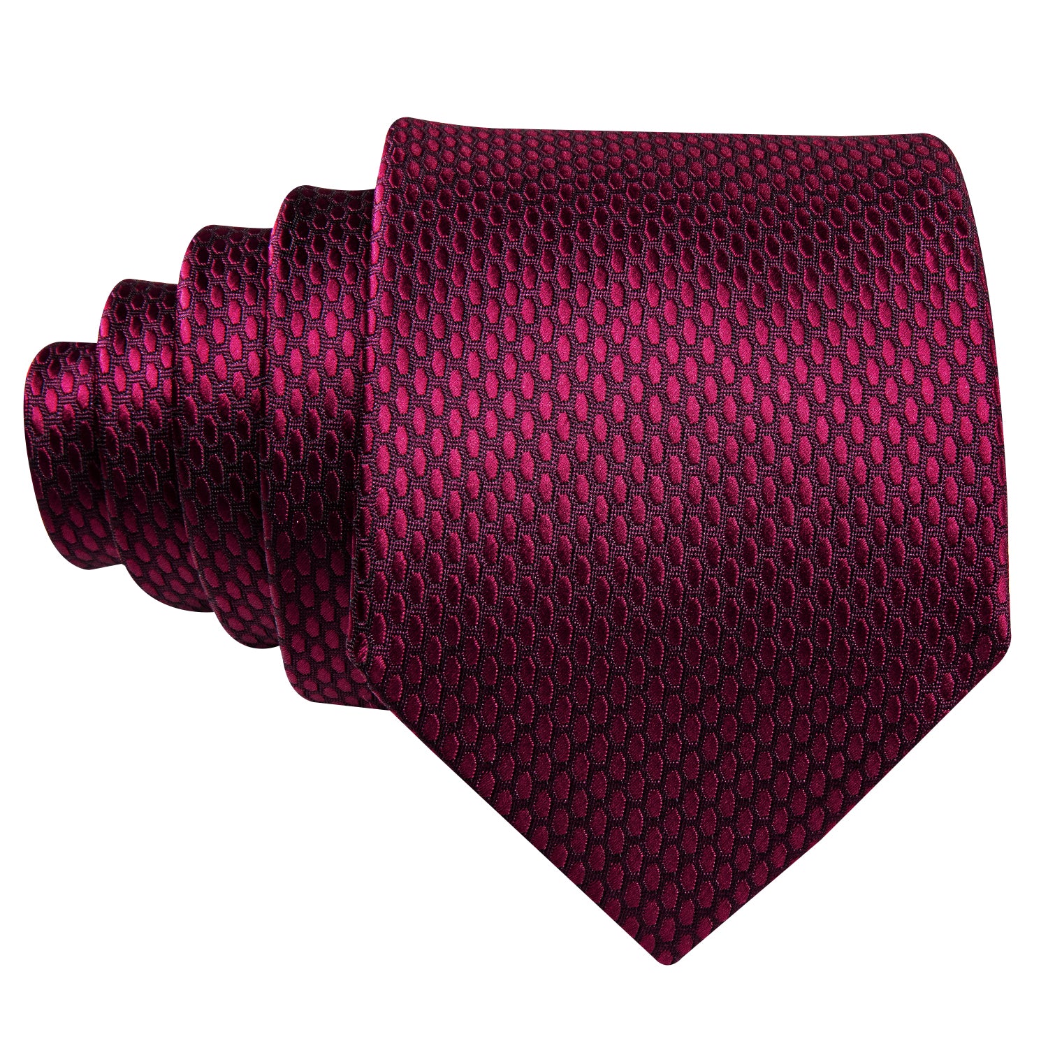 Barry. Wang Red Tie Navy-Blue Geometric Polka Dot Tie Pocket Square Cufflinks Set