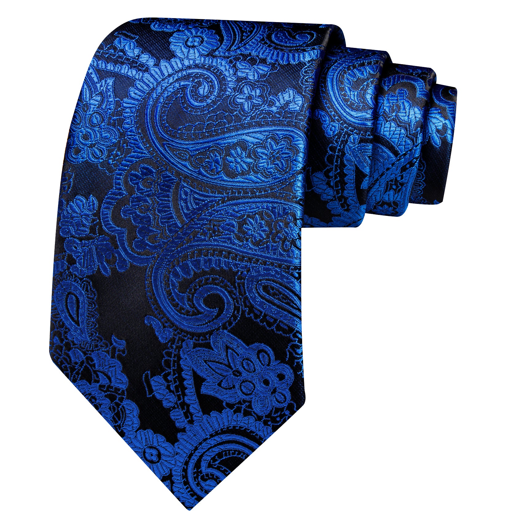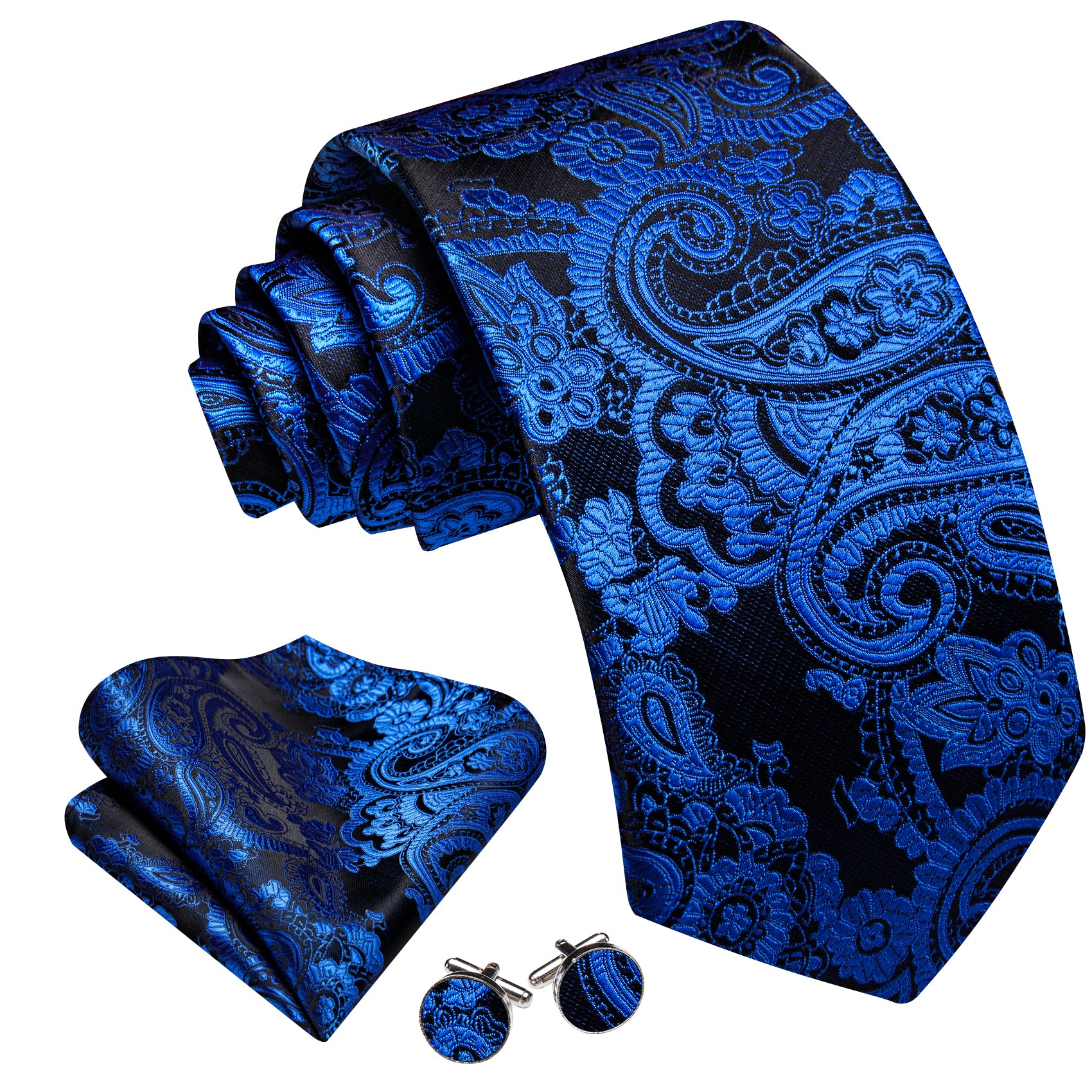 Barry. Wang Royal Blue Paisley Tie Pocket Square Cufflinks Set Silk Mens Ties