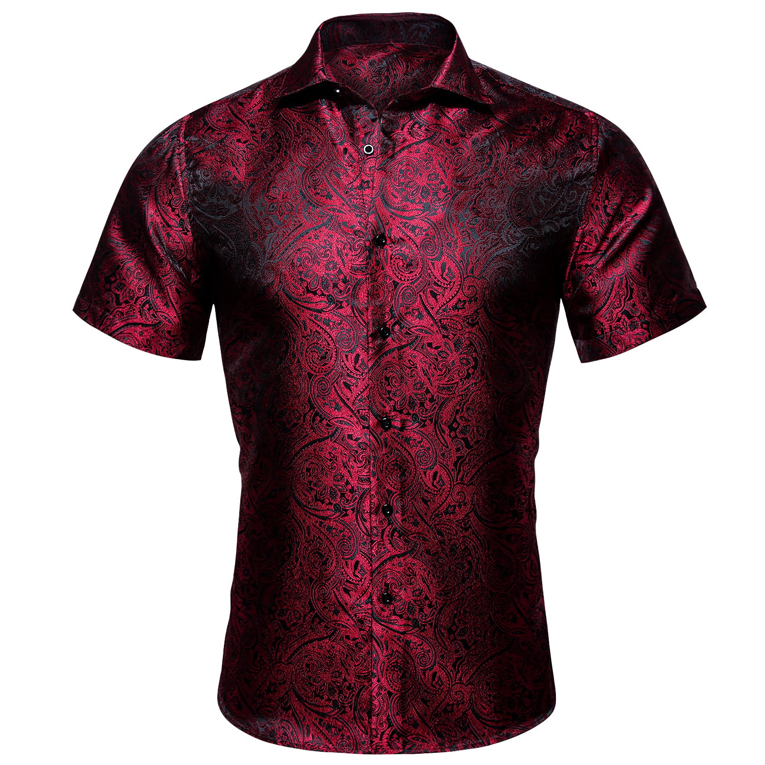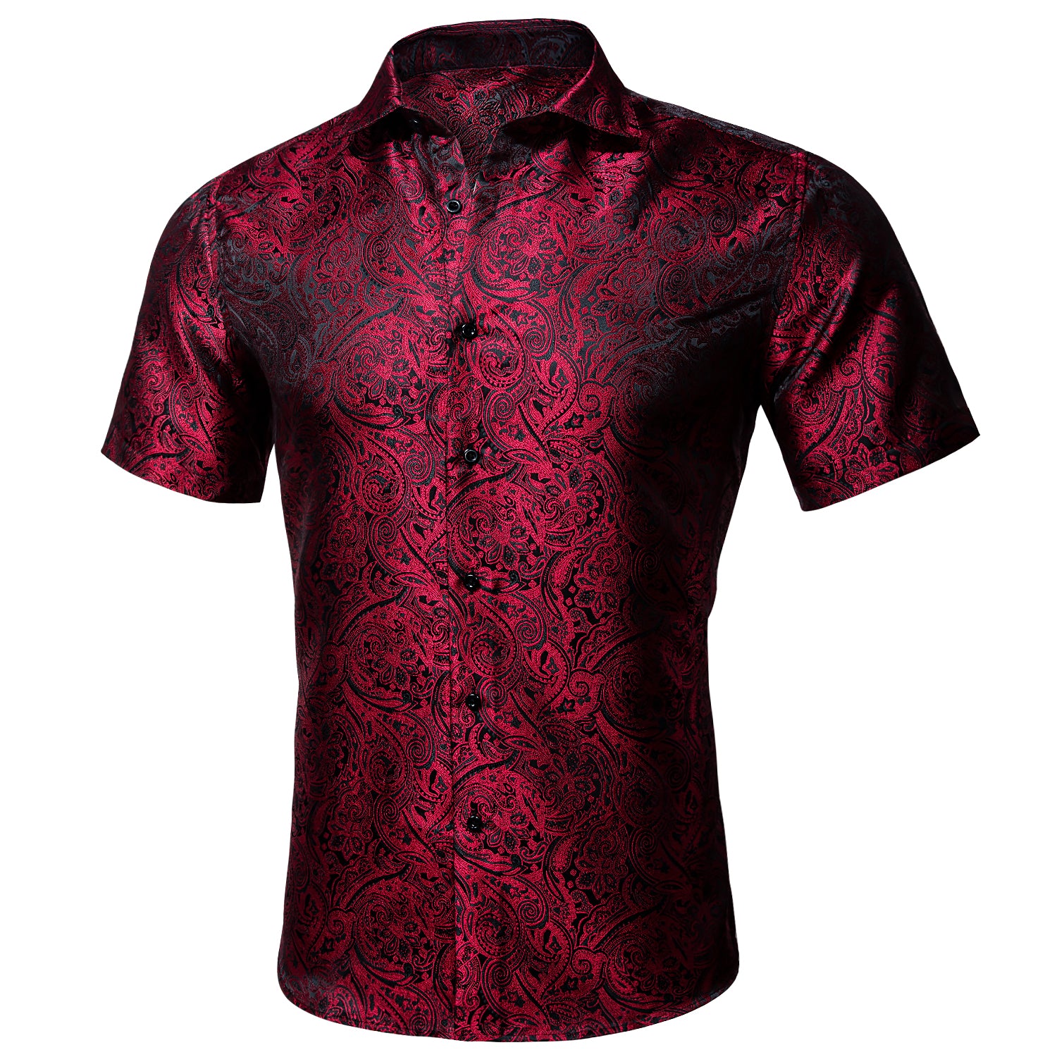 Barry. Wang Red Black Paisley Jacquard Short Sleeve Button-Up Shirt for Men
