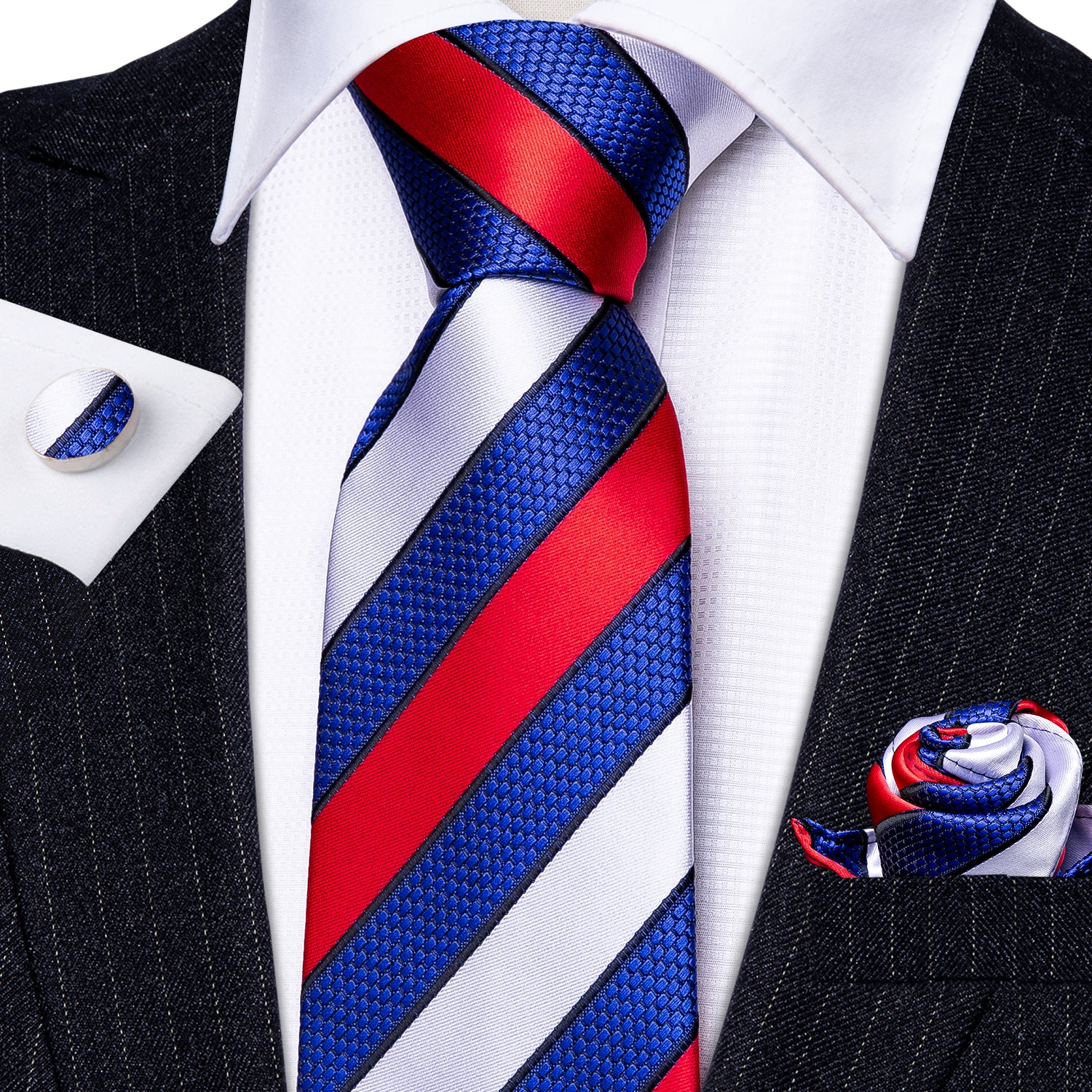 - What You Get: Same design Tie, Pocket Square ,Cufflinks & Tie Clip