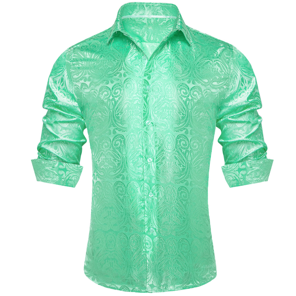 Barry.Wang 2pcs Mens Shirts Purple Green Paisley Shirt Silk Shirt