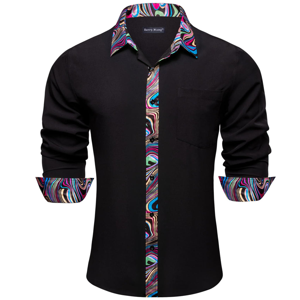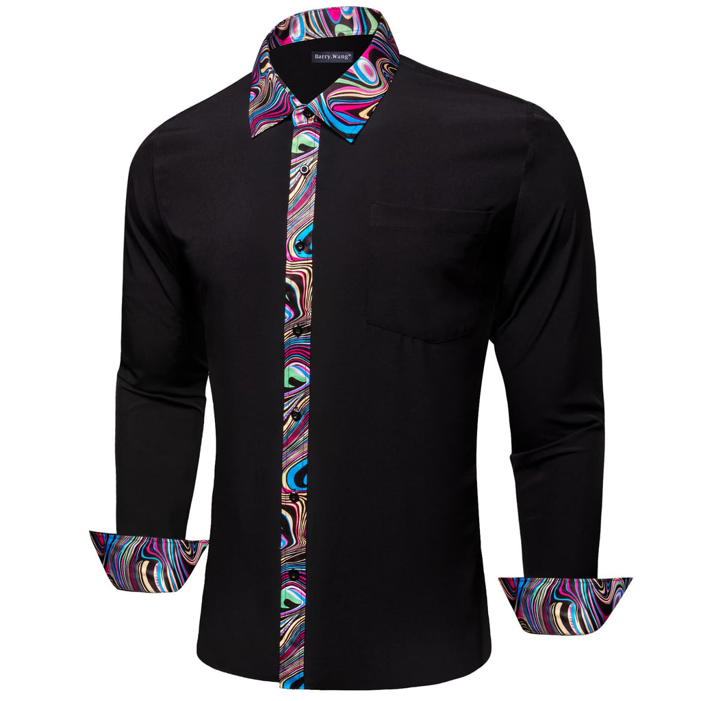 Barry. Wang Black Dress Shirt Novelty Splicing Shirt for Men Long Sleeve