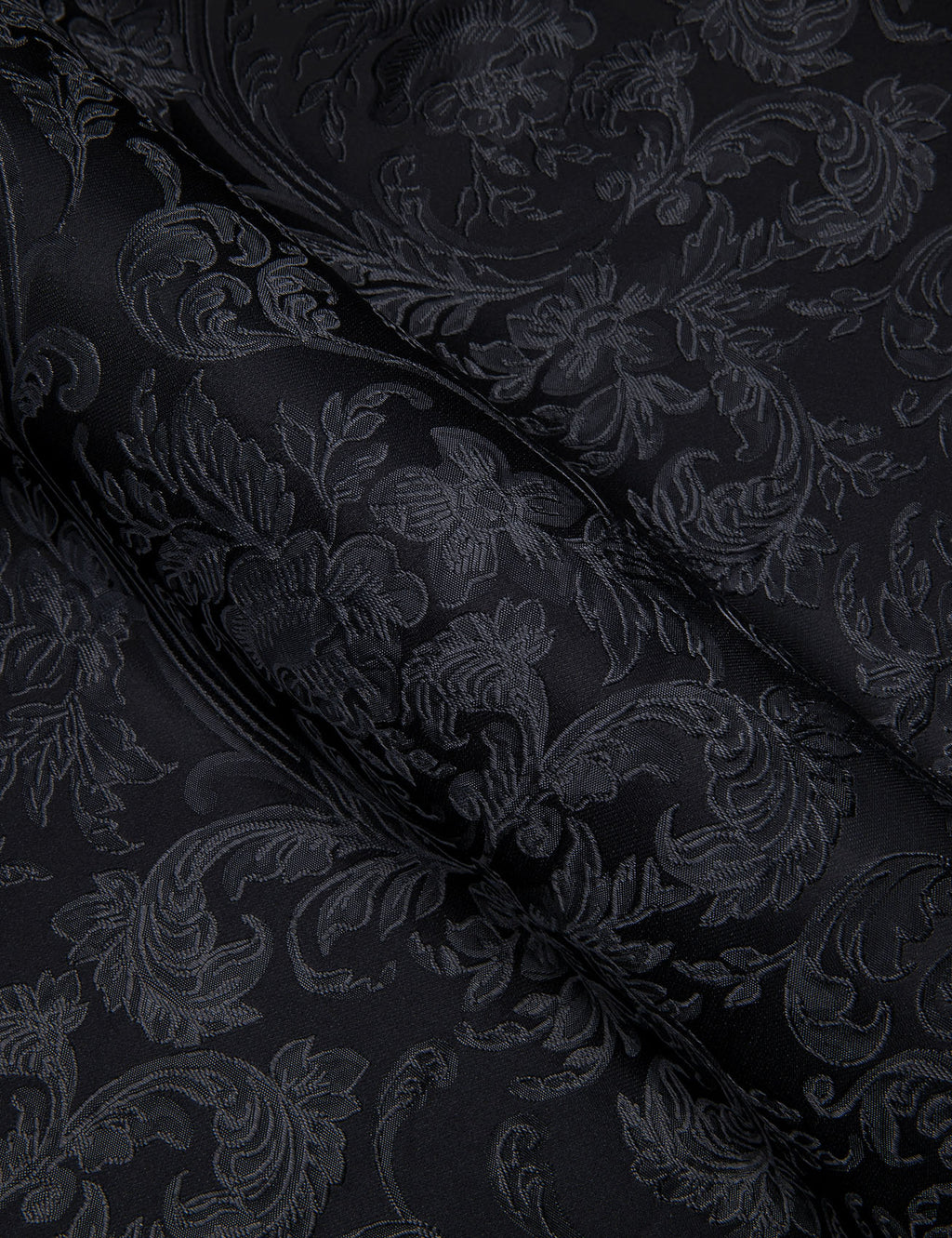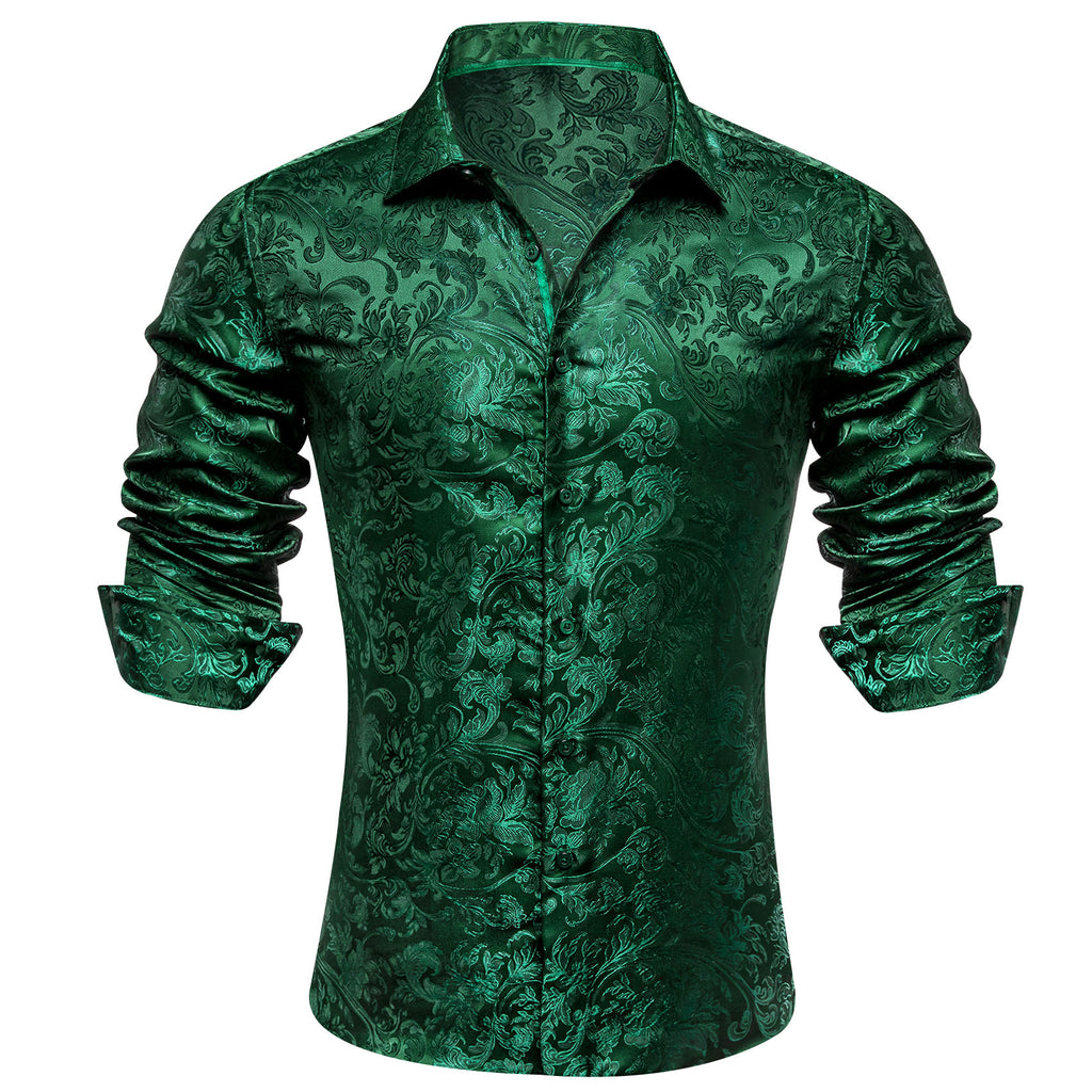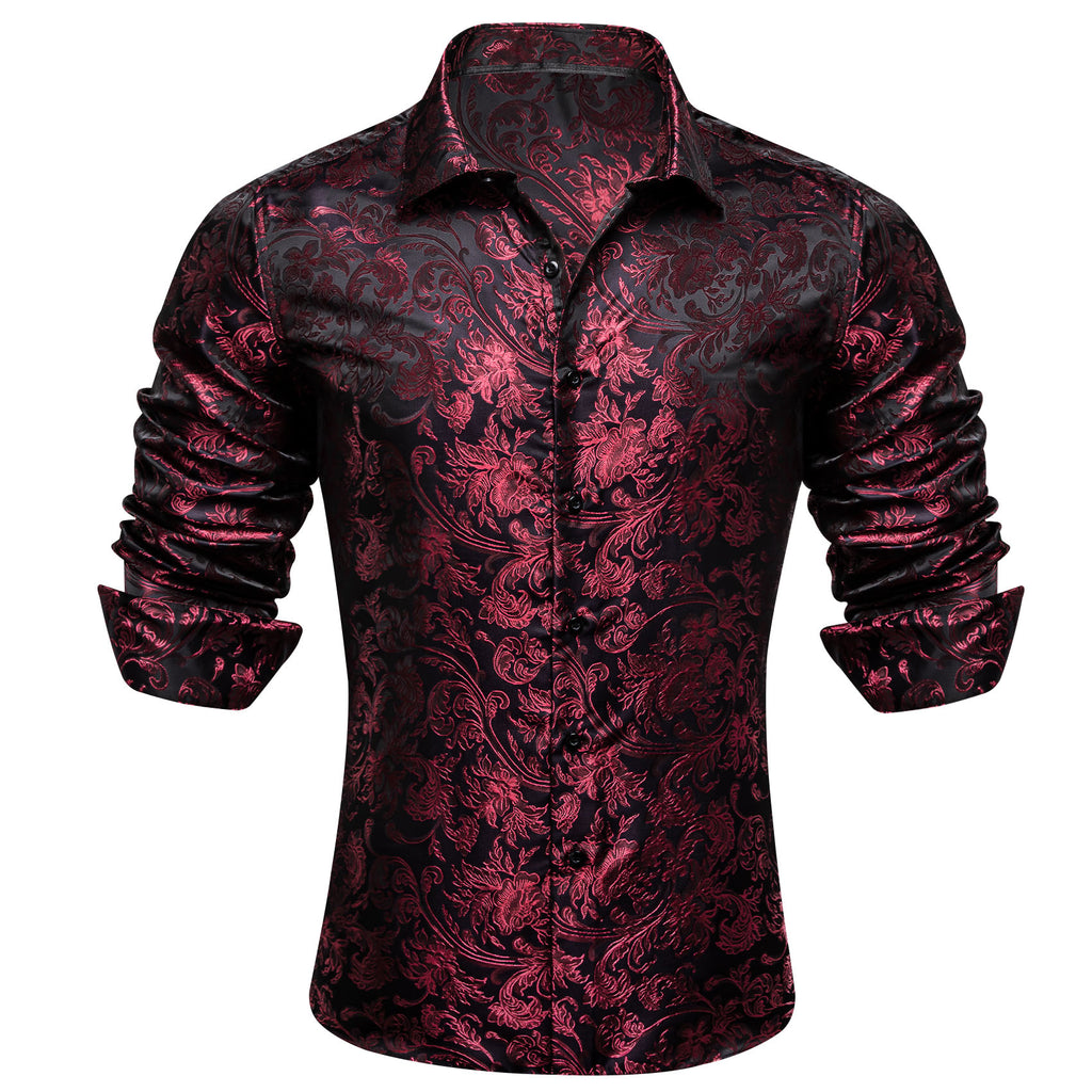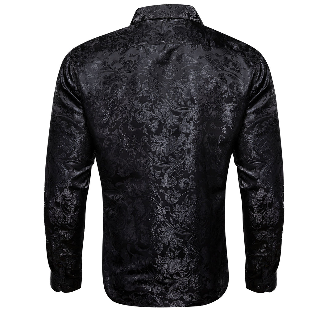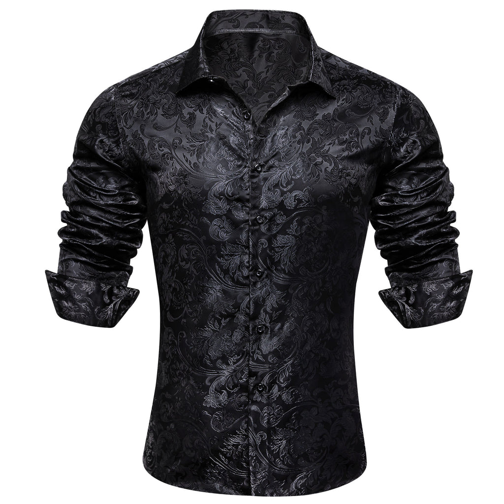 Barry. Wang Black Floral Shirt Silk Long Sleeve Collar Dress Shirt For Men